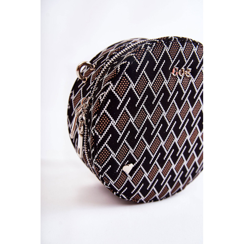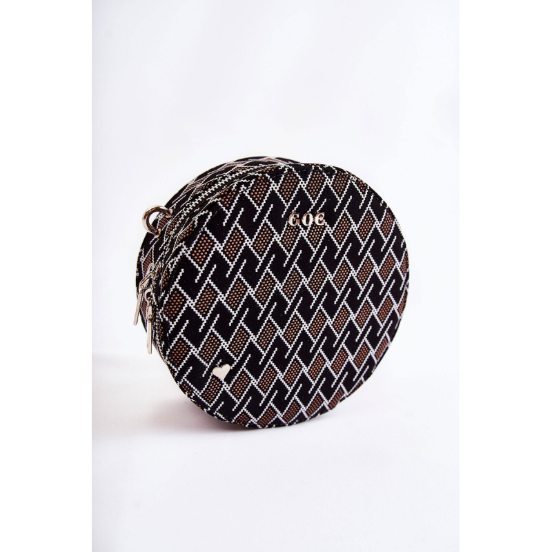 Graži rankinė – GOE prekės ženklo bagažinė! Pagaminta iš aukštos kokybės medžiagos. Priekyje yra GOE prekės ženklo logotipas ir dekoratyvinė emblema širdelės pavidalu. Krepšys turi vieną skyrių, užsegamą užtrauktuku. Viduryje viena atvira kišenė ir viena užsegama užtrauktuku. Pamušalas iš audinio su dekoratyviniu raštu. Krepšys turi vieną reguliuojamą, nuimamą dirželį.