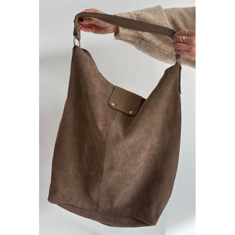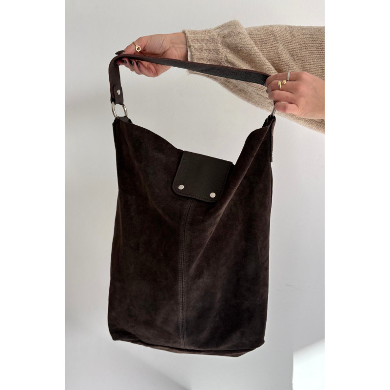 Didelė moteriška shopper tipo rankinė, pagaminta iš natūralaus nubuko, yra elegancijos ir funkcionalumo derinys. Modelis užsegamas magnetiniu spaudu, kuris užtikrina patogumą ir greitą turinio pasiekimą. Rankinė turi vieną pagrindinį skyrių ir vieną praktišką vidinę kišenę, palengvinančią smulkių daiktų organizavimą. Du dirželiai – trumpas, neatšaldomas rankenos, skirtas nešioti ranka, ir ilgesnis, nuimamas dirželis, leidžiantis dėvėti ant peties. Tai klasikinis shopper su laikui nepavaldžiu dizainu, idealiai tinka kasdieniam stiliui.