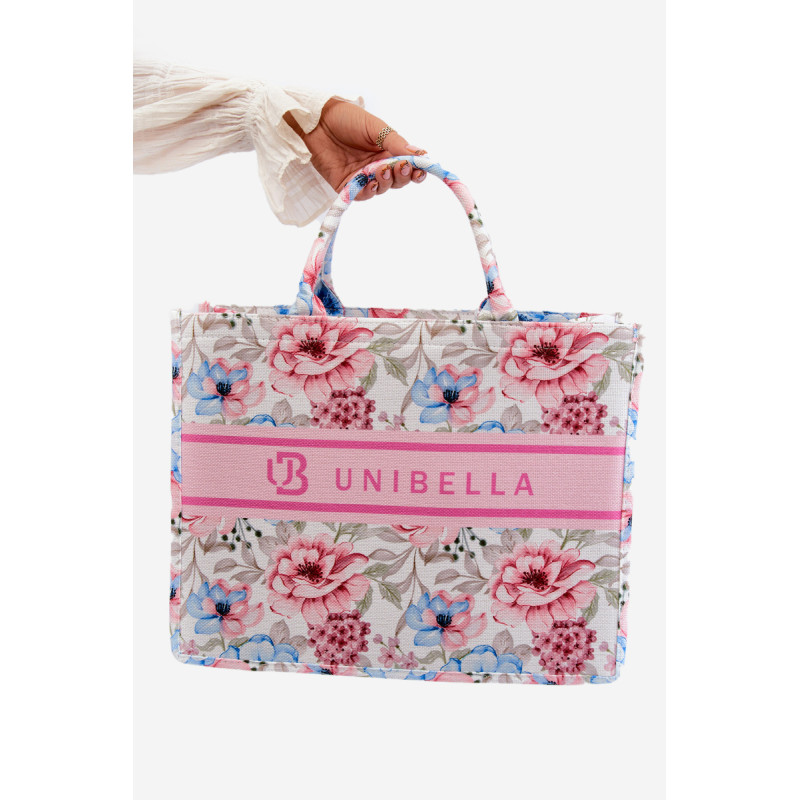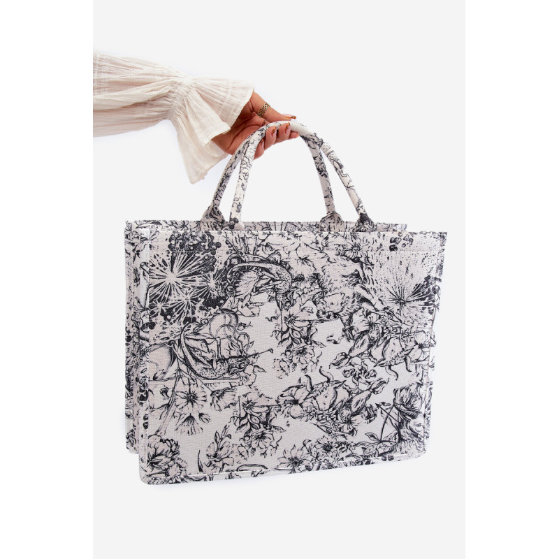 Struktūrinis krepšys, puoštas gražiu raštu, puikiai tinkantis kaip vasaros stiliaus aksesuaras. Pagrindinis skyrius užsegamas užtrauktuku. Krepšys turi nuimamą, reguliuojamą dirželį. Viduje yra dvi mažesnės atviros kišenės ir viena didesnė kišenė su elastine juostele.