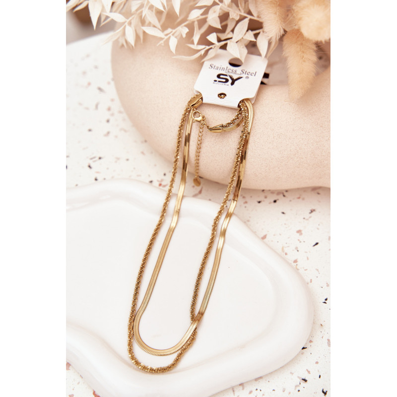 Moteriška grandinėlė, pagaminta iš chirurgo plieno, yra šiuolaikiškas ir stilingas aksesuaras, kuris suteiks charakterio bet kokiai aprangai. Modelis susideda iš dviejų sujungtų grandinėlių, sudarančių įspūdingą sluoksniuotą kompoziciją. Reguliuojamas užsegimas leidžia pritaikyti ilgį prie iškirptės, užtikrinant patogų dėvėjimą. Tvirtas medžiaga garantuoja atsparumą įbrėžimams ir ilgalaikį blizgesį. Puikiai tinka kasdieniam ir elegantiškam komplektui.