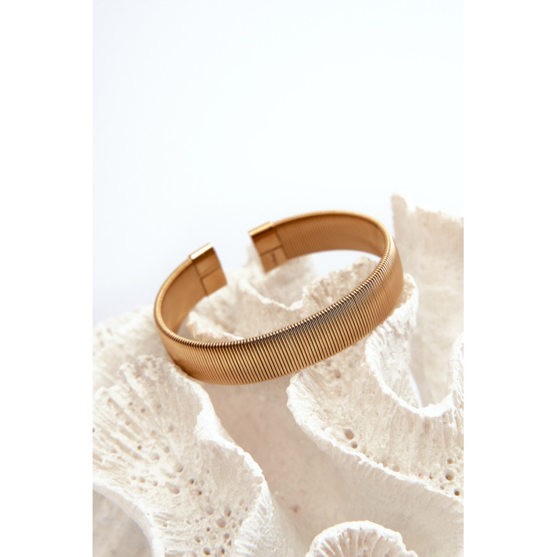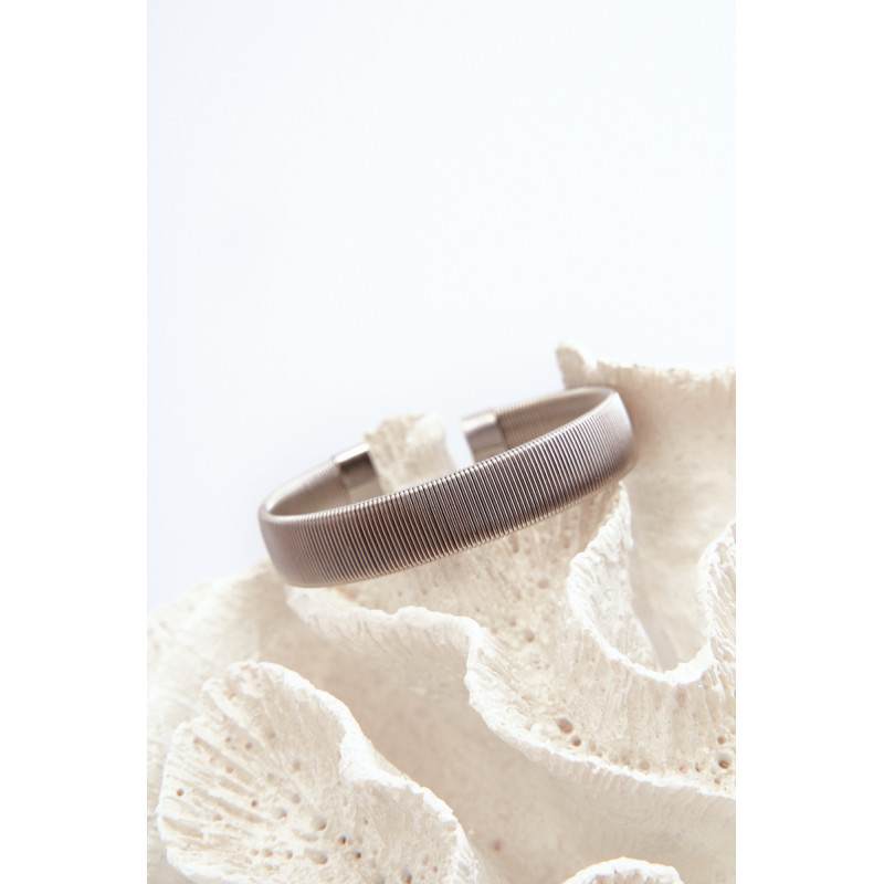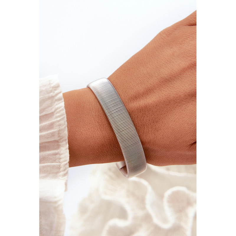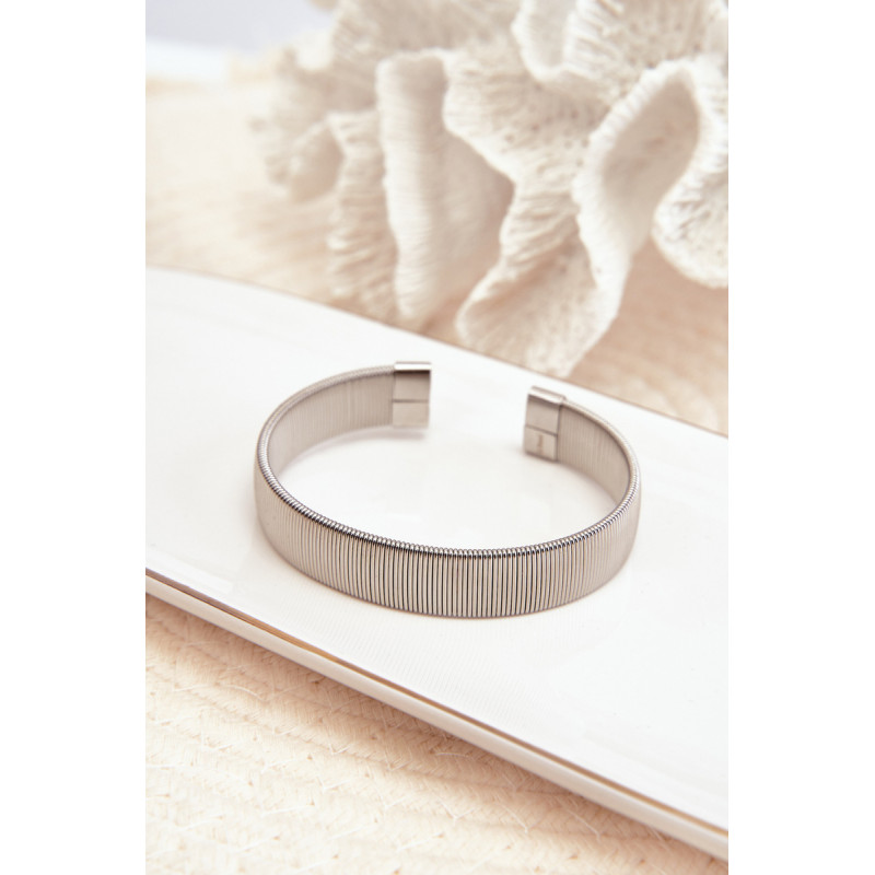 Moteriška apyrankė iš nerūdijančio plieno. Dėl savo lankstumo jis puikiai priglunda prie riešo, todėl patogu dėvėti visą dieną. Tai tikrai papildys beveik bet kokią aprangą!