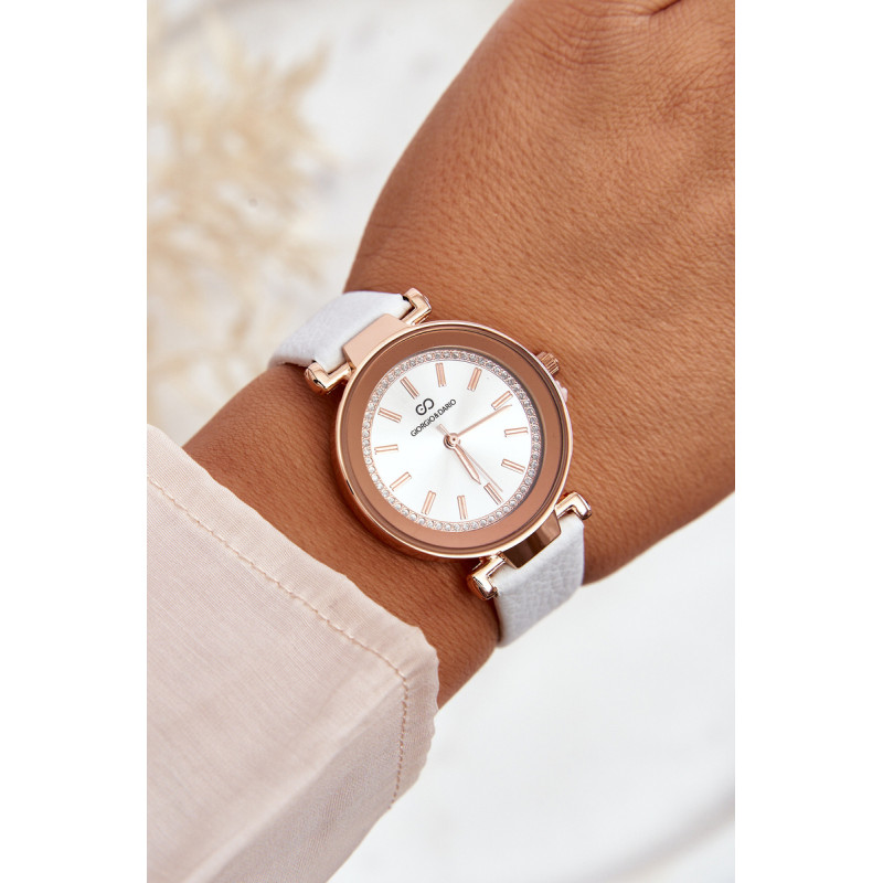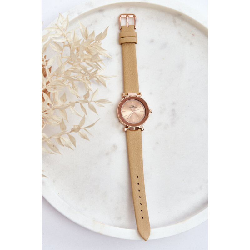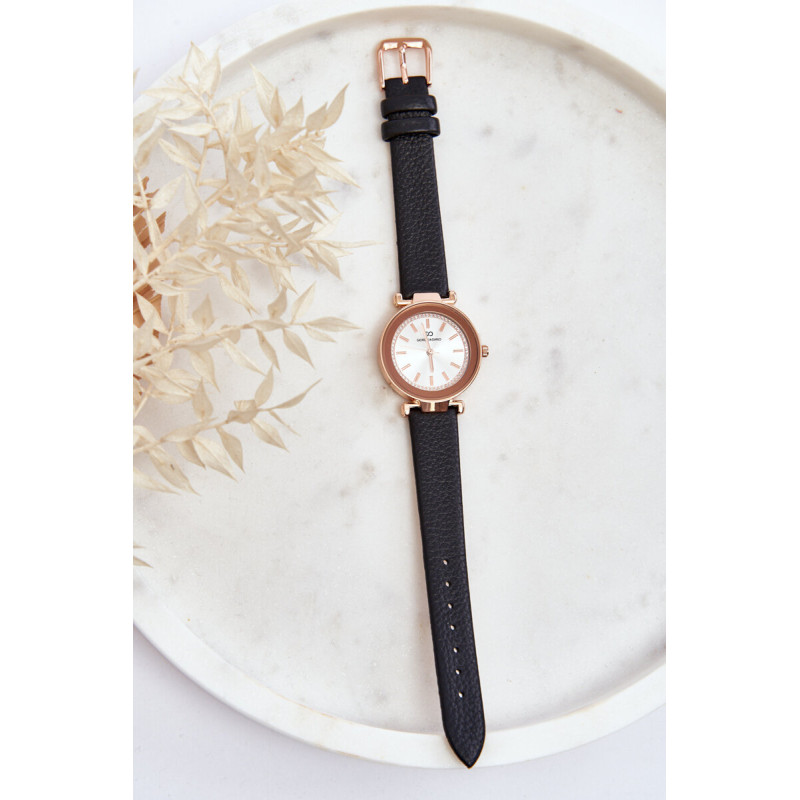 Klasikinis moteriškas laikrodis pagamintas iš nerūdijančio plieno ir ekologiškos odos derinio. Šis modelis užsisega reguliuojamu dirželiu su sagtimi. Apvalus dėklas su blizgiais ornamentais ant ciferblato išskiria šį modelį iš kitų. Tai puikus priedas prie kasdienių stilizacijų! Šį laikrodį tikrai turėtumėte turėti savo prieduose!