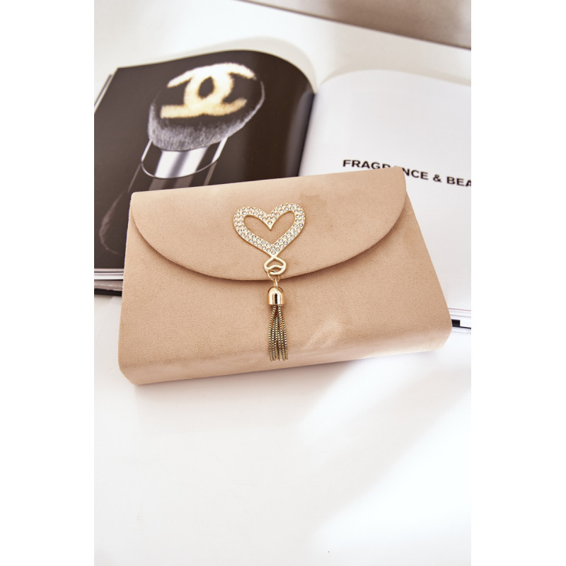 Elegantiška vakarėlių rankinė, pagaminta iš eko zomšos, puikiai tinka ypatingoms progoms. Uždaryta magnetiniu užsegimu, užtikrinančiu patogumą ir saugumą. Viduje yra praktiška maža kišenė smulkmenoms. Rankinė aprūpinta nuimamu grandininiu diržu, leidžiančiu ją nešioti įvairiais būdais. Stilingas aksesuaras, akcentuotas dekoratyvine širdimi, kuri suteikia žavesio ir unikalumo.