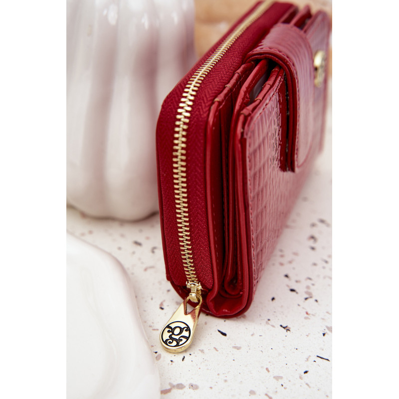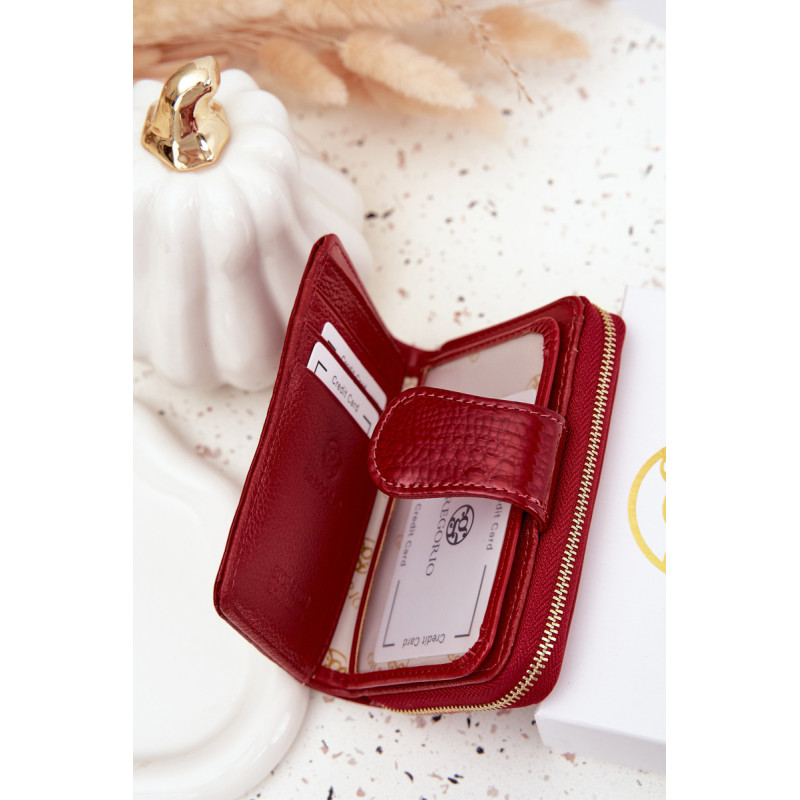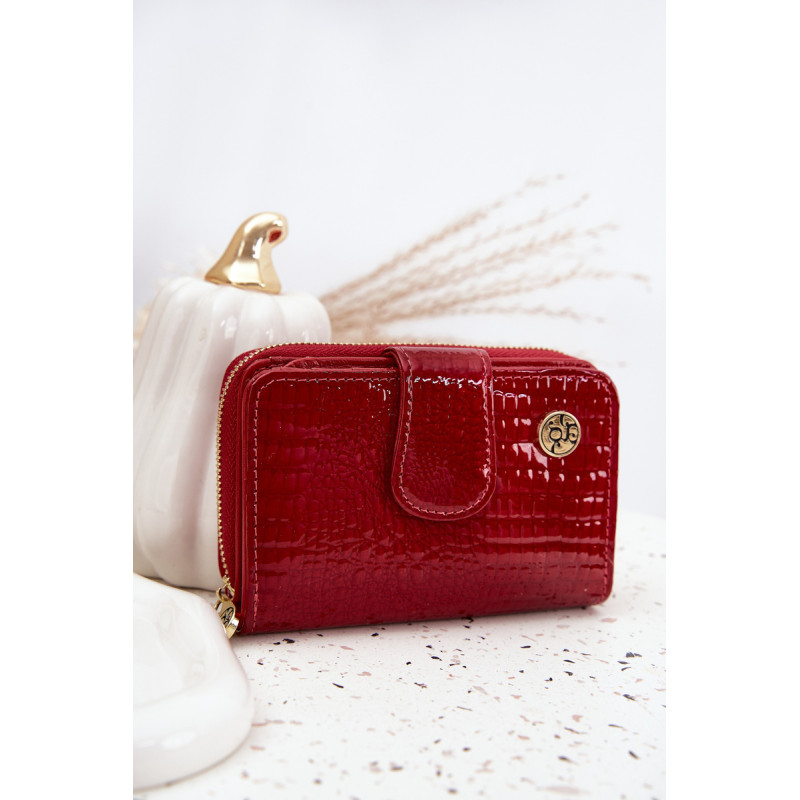 Maža moteriška piniginė, pagaminta iš lakuotos ekologiškos odos, yra elegantiškas ir praktiškas kasdienis aksesuaras. Priekinė dalis puošia efektinga reljefo spauda ir subtilus, auksinis detalė. Viduje yra vietos kortelėms ir atskiras kišenėlė monetoms, todėl piniginė yra kompaktiška ir tuo pat metu funkcionali. Supakuota į dėžutę, todėl puikiai tiks kaip dovana.