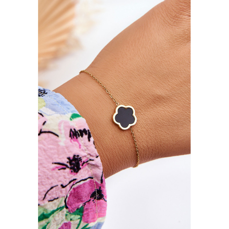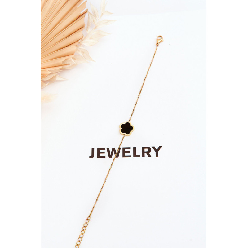 Klasikinė plona apyrankė ant grandinėlės pagaminta iš nerūdijančio plieno. Šis modelis turi gėlės formos pakabuką. Apyrankė yra reguliuojamo ilgio ir užsegama omaro užsegimu. Puikiai tinka kasdieniam stiliui.