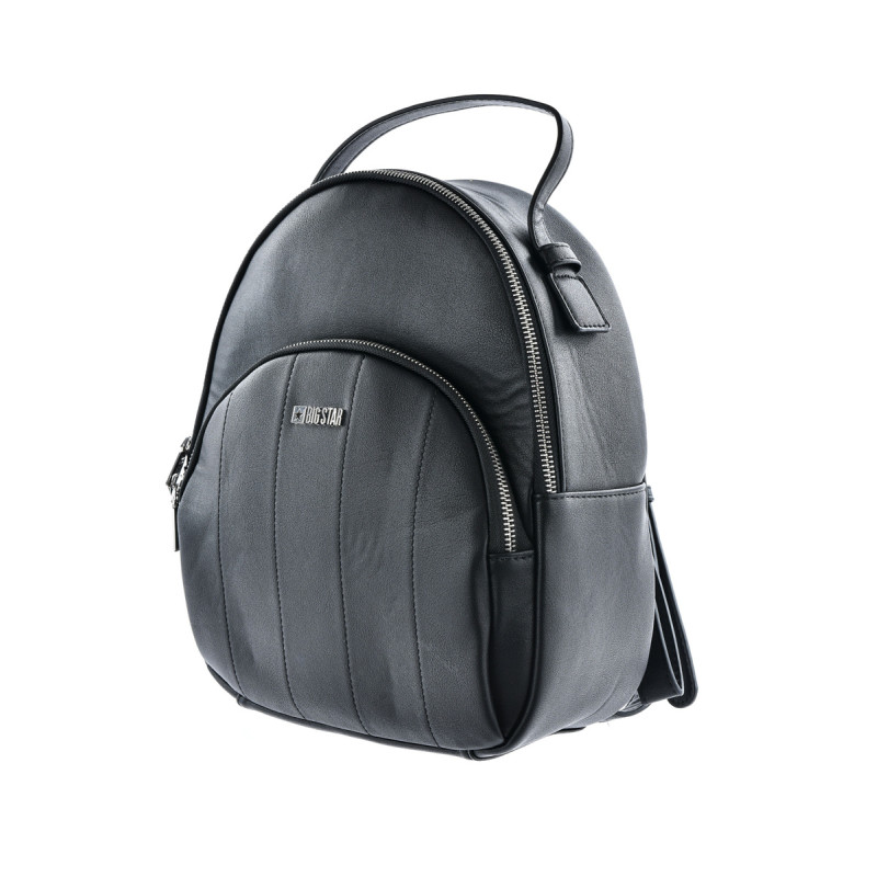 Madinga prekės ženklo Big Star kuprinė pagaminta iš aukštos kokybės eko odos. Skyrius užsegamas užtrauktuku, kuriame yra dvi kišenės - viena užsegama užtrauktuku, kita atvira. Kuprinė turi rankeną ir reguliuojamus pečių dirželius. Be to, prie kuprinės buvo pritvirtintas mažas paketėlis – piniginė.