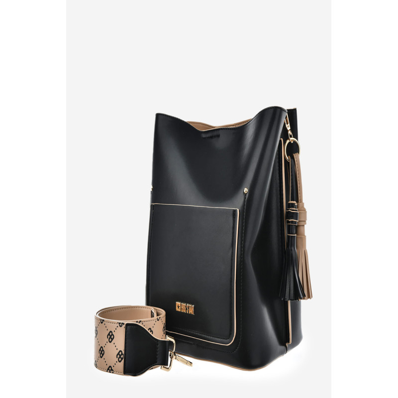 Big Star prekės ženklo moteriškas krepšys yra elegantiškas ir praktiškas pasirinkimas kasdieniam naudojimui. Pagaminta iš aukštos kokybės eko odos. Jame yra du erdvūs skyriai, kurie palengvina organizavimą. Modelis aprūpintas nuimamu, nereguliuojamu dirželiu ir dviem dekoratyviniais kutais, kurie bendram dizainui suteikia unikalumo. Krepšys užsisega magnetiniu segtuku, užtikrinančiu patogumą ir saugumą.