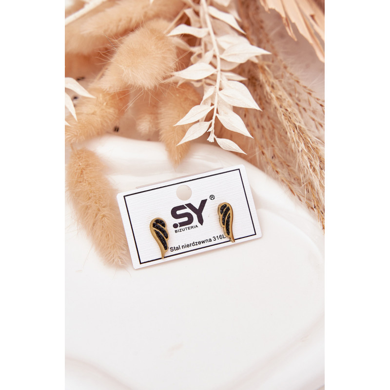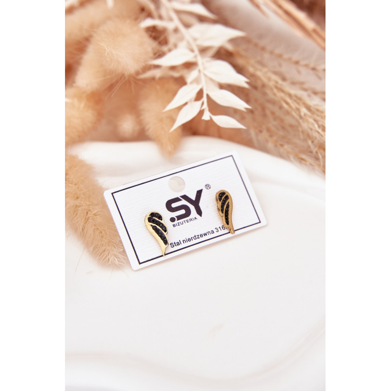 Nerūdijančio plieno auskarai yra stilingas aksesuaras išskirtiniu charakteriu. Modelis sparnų formos, papuoštas juodais cirkoniais. Tvirti ir atsparūs pažeidimams, puikiai tinka tiek kasdieniam, tiek vakaro stiliui. Šie papuošalai pabrėžia individualų stilių ir suteikia kiek paslaptingo žavesio kiekvienam įvaizdžiui.