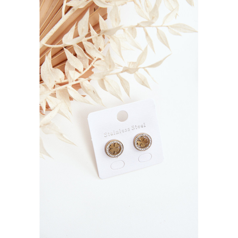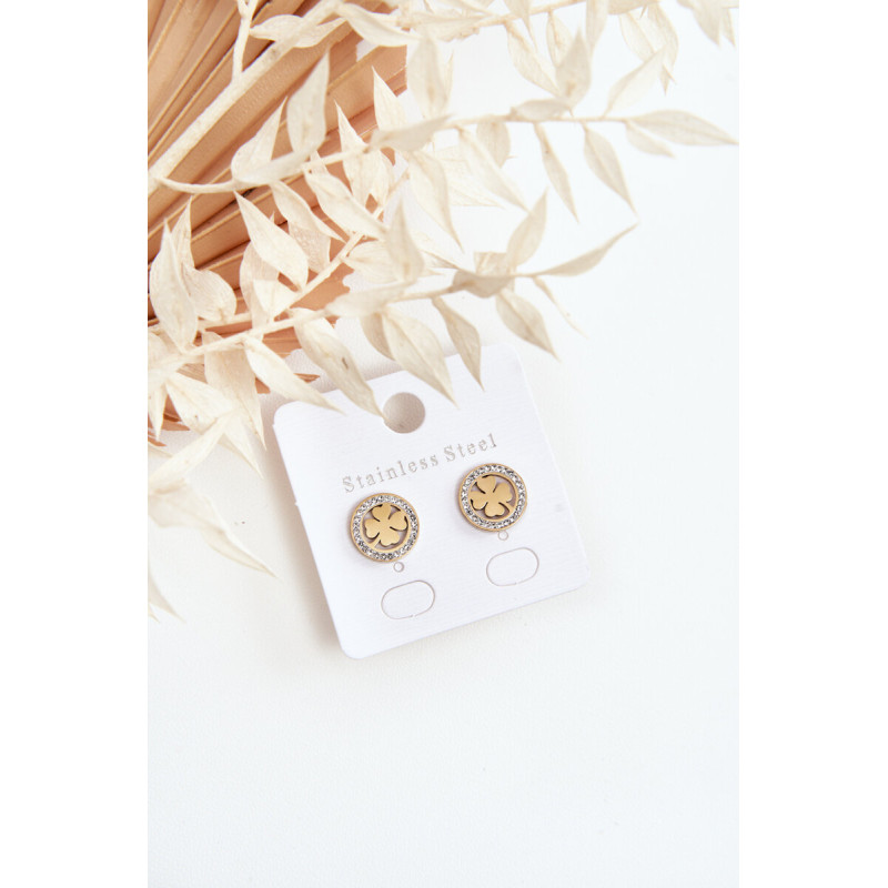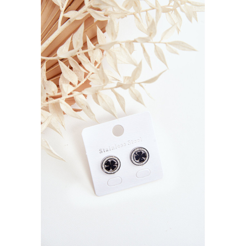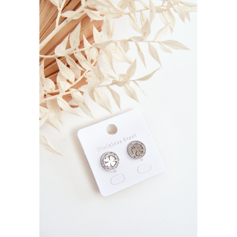 Kiekvienai aprangai reikia aksesuarų, o net patys mažiausi yra labai svarbūs. Subtilūs auskarai, kurie puikiai pabrėžia Jūsų grožį! Jie tvirtinami pagaliuku. Šis modelis yra apvalus ir dekoruotas mažytėmis čiurkšlėmis, imituojančiomis cirkonį. Viduje yra dobilas.