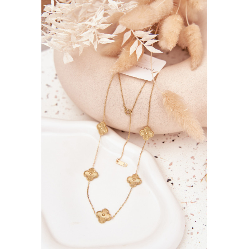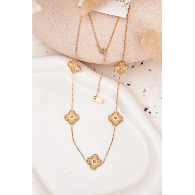 Moteriška kaklo papuošalas iš nerūdijančio plieno yra subtilus ir moteriškas aksesuaras, kuris suteikia žavesio kiekvienai stiliaus detalei. Pakabukai žiedais formos suteikia jam subtilumo. Dėl reguliuojamo ilgio jį galima puikiai pritaikyti prie iškirptės. Tvirtas medžiaga garantuoja atsparumą įbrėžimams ir ilgalaikį žvilgesį. Puikiai tinka kasdieniam naudojimui ir ypatingoms progoms.