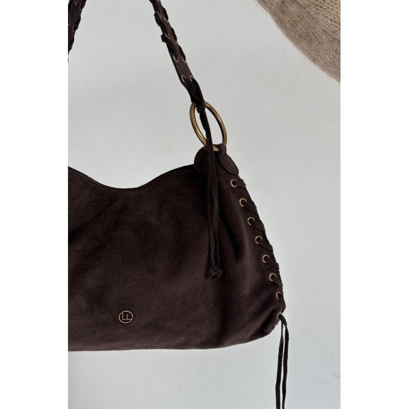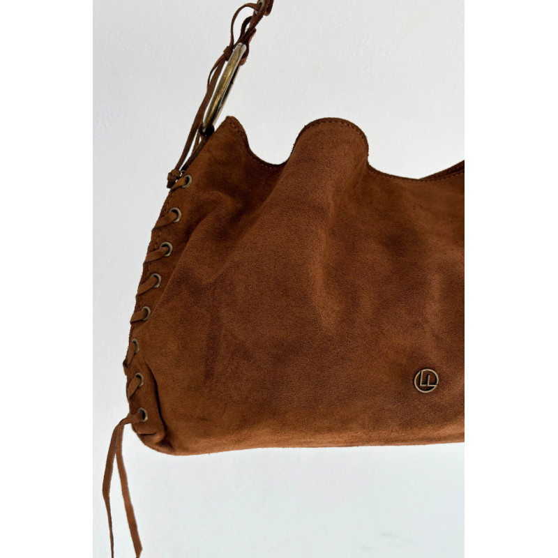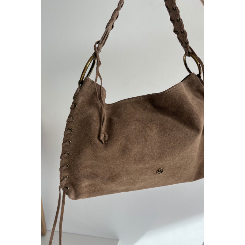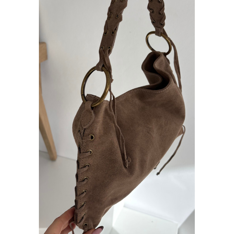 Moteriška rankinė iš natūralaus zomšos yra stilingas modelis su išskirtiniu charakteriu. Uždaro su magnetiniu spaude, jis sujungia eleganciją ir patogumą. Jos dekoratyviniai virvelės šonuose ir ant dirželio suteikia madingą, šiek tiek boho išvaizdą. Rankinė turi dvi skyriai, kurie palengvina erdvės organizavimą, ir dvi praktiškas vidines kišenes smulkiems daiktams. Funkcionalumo ir stiliaus derinys — idealiai tinka kasdieniam naudojimui ir labiau atsitiktiniam stiliui.