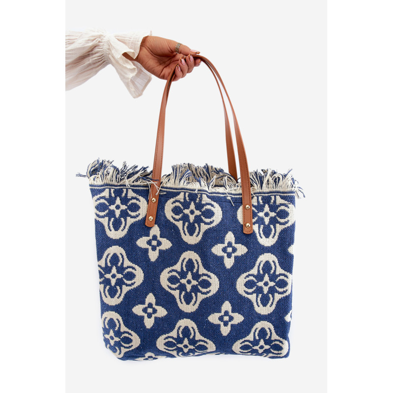 Didelis moteriškas krepšys, pagamintas iš austo dailaus rašto audinio. Vienas skyrius, užsegamas užtrauktuku. Dėl savo talpos tilps visi reikalingi daiktai! Puikiai tinka praleistoms dienoms paplūdimyje ir kaip priedas prie kasdienės vasaros aprangos!