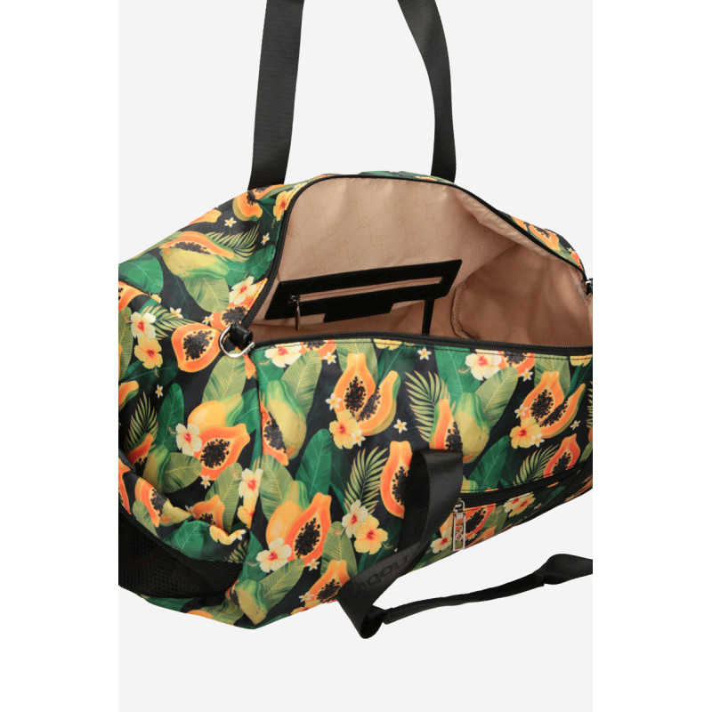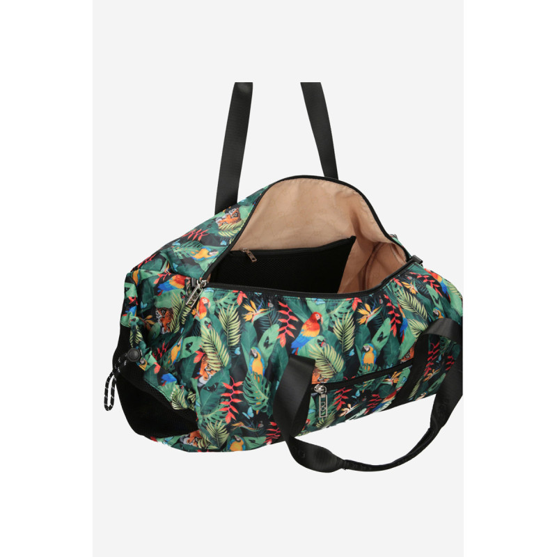 Krepšys pagamintas iš dėmėms atsparaus audinio su gražiu raštu. Turi nuimamą, reguliuojamą dirželį. Krepšys turi vieną užtrauktuku užsegamą skyrių, o viduje dvi kišenės taip pat užsegamos užtrauktuku ir dirželis su karabinu raktams užsegti. Krepšys turi praktiškas rankenas. Išorėje dvi kišenės užsegamos raišteliu su užtrauktuku ir dvi kišenės užsegamos užtrauktuku.