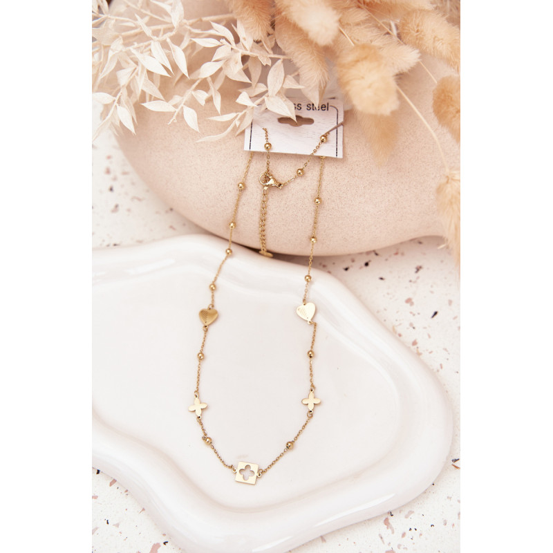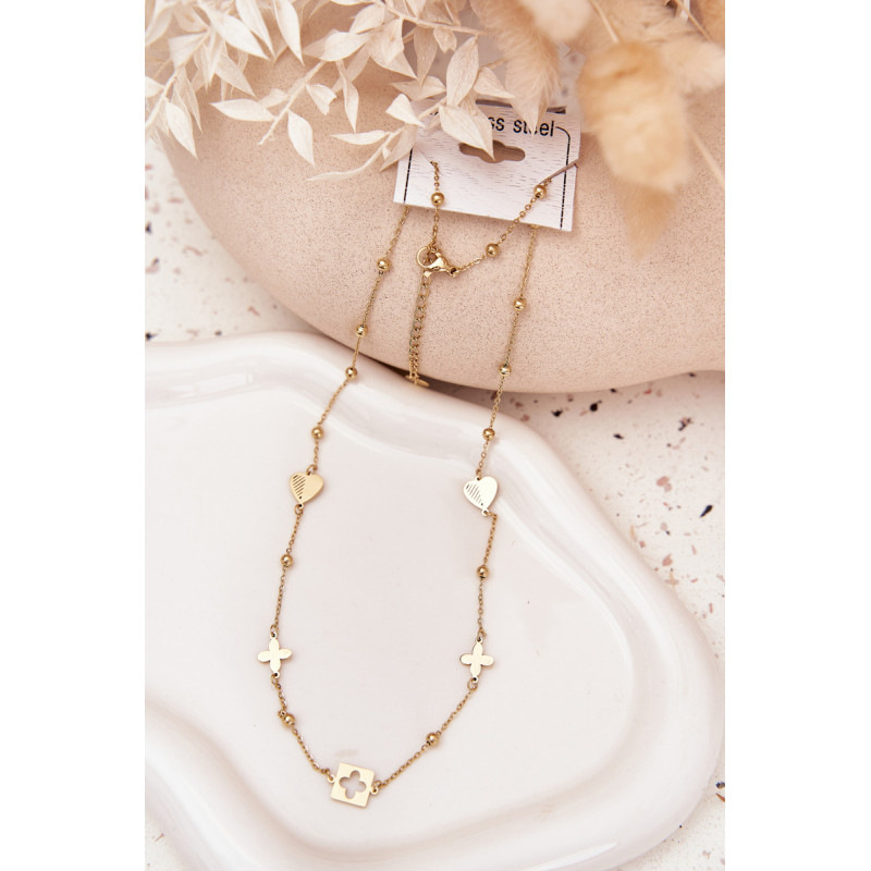 Moteriškas kaklo papuošalas, pagamintos iš chirurginio plieno, yra elegantiškas ir šiuolaikiškas aksesuaras, kuris pabrėžia moterišką stilių. Pakabukai suteikia jam subtilų žavesį ir lengvumą, sukurdami delikatų akcentą kiekvienoje aprangoje. Tvirtas medžiaga užtikrina atsparumą įbrėžimams ir ilgalaikį blizgesį. Puikus pasirinkimas tiek kasdieniams, tiek elegantiškesniems deriniams.