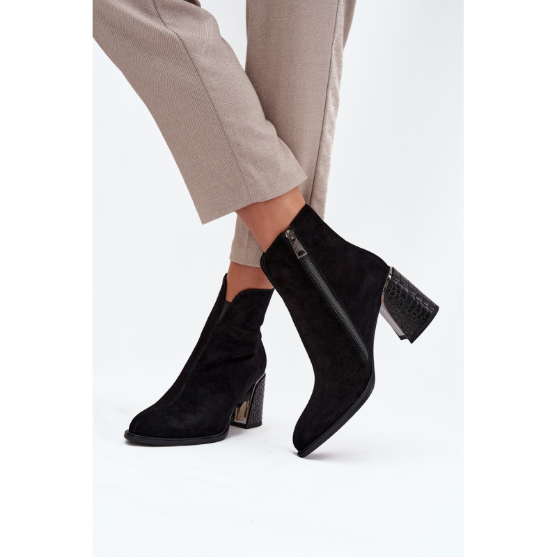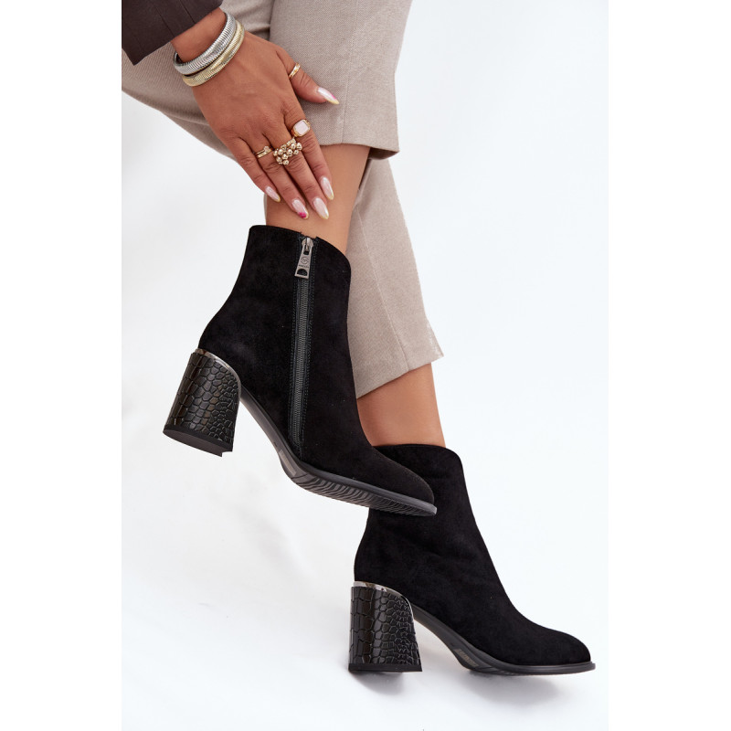 Moteriškos Vinceza apavas, pagamintas iš natūralaus zomšos, sujungia eleganciją ir šiuolaikinį stilių. Pastatyti ant kulno, kuris pasižymi subtiliu reljefu ir veidrodiniu elementu. Migdolo formos priekinės dalys pabrėžia moterišką išvaizdą, o užtrauktukas palengvina greitą užsidėjimą. Izoliuotas vidus užtikrina patogumą ir šilumą šaltomis dienomis, todėl yra ideali pasirinkimas rudenį ir žiemą. Rinkdamiesi dydį, vadovaukitės dydžių lentele. Renkantis dydį, vadovaukitės dydžių lentele.