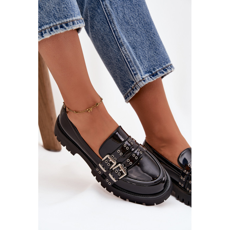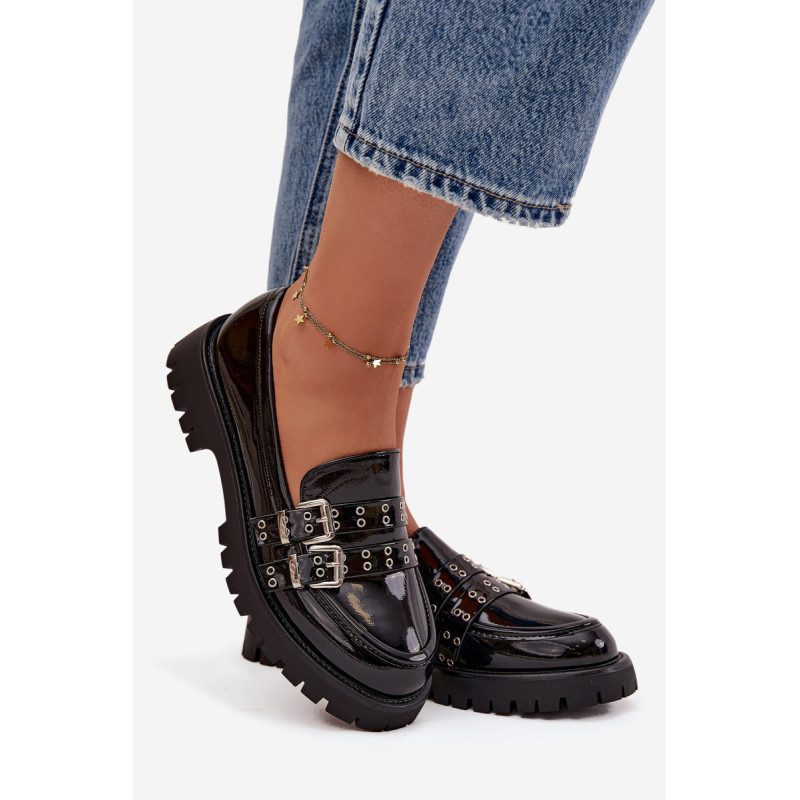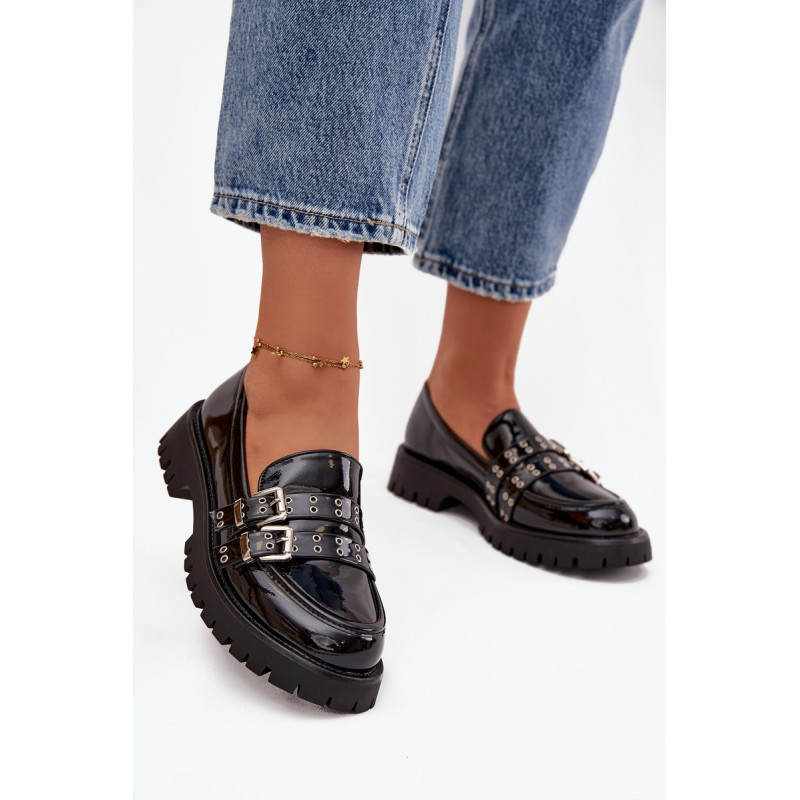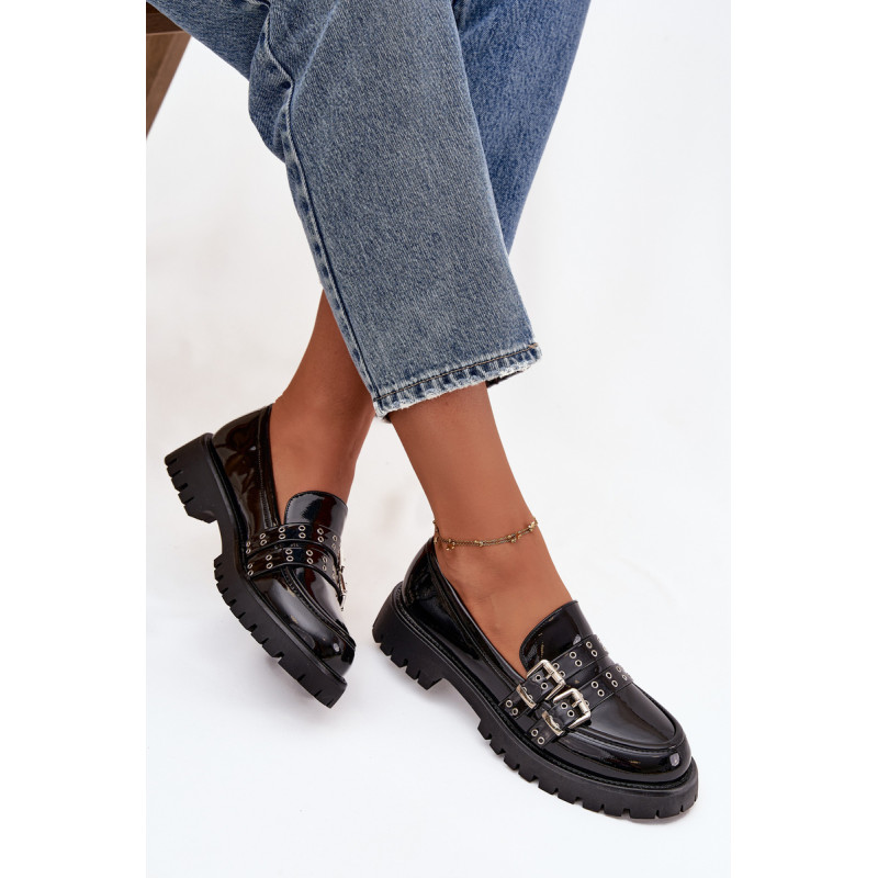 Moteriški mokasinai iš blizgios ekologiškos odos yra elegantiškas pasirinkimas moterims, vertinančioms klasiką su moderniu akcentu. Blizganti apdaila suteikia jiems stilingą išvaizdą, o priekyje esantys su sidabrinėmis sagtimis juostos sudaro stilingą, dekoratyvinį akcentą. Šis modelis sujungia laikui nepavaldų siluetą su madingu detalu, todėl puikiai tinka tiek kasdieniam dėvėjimui, tiek ir elegantiškesnėms stiliams — idealus darbui, susitikimams ar vakaro išvykoms. Renkantis dydį, prašome vadovautis dydžių lentele. Renkantis dydį, vadovaukitės dydžių lentele.