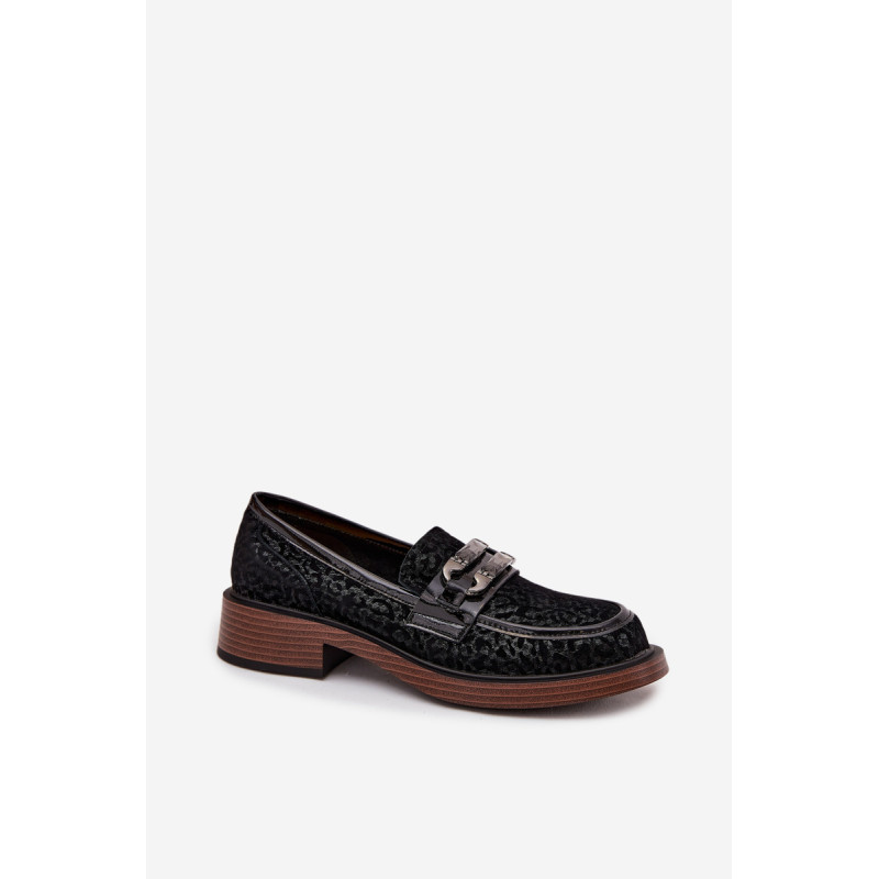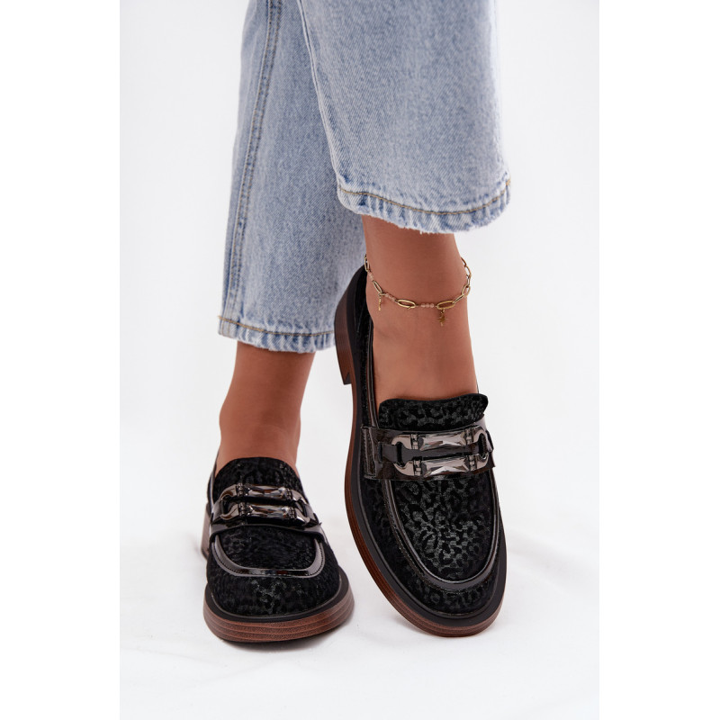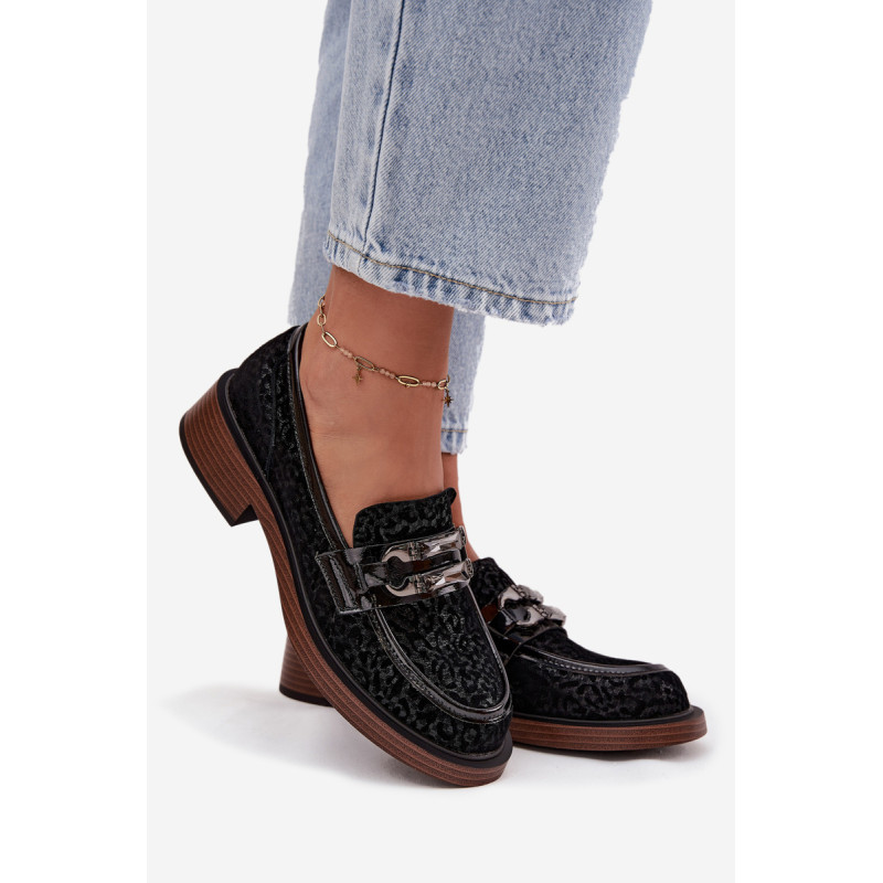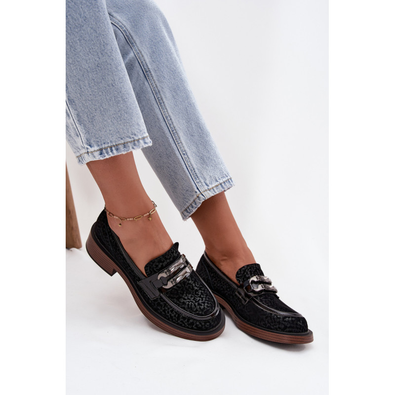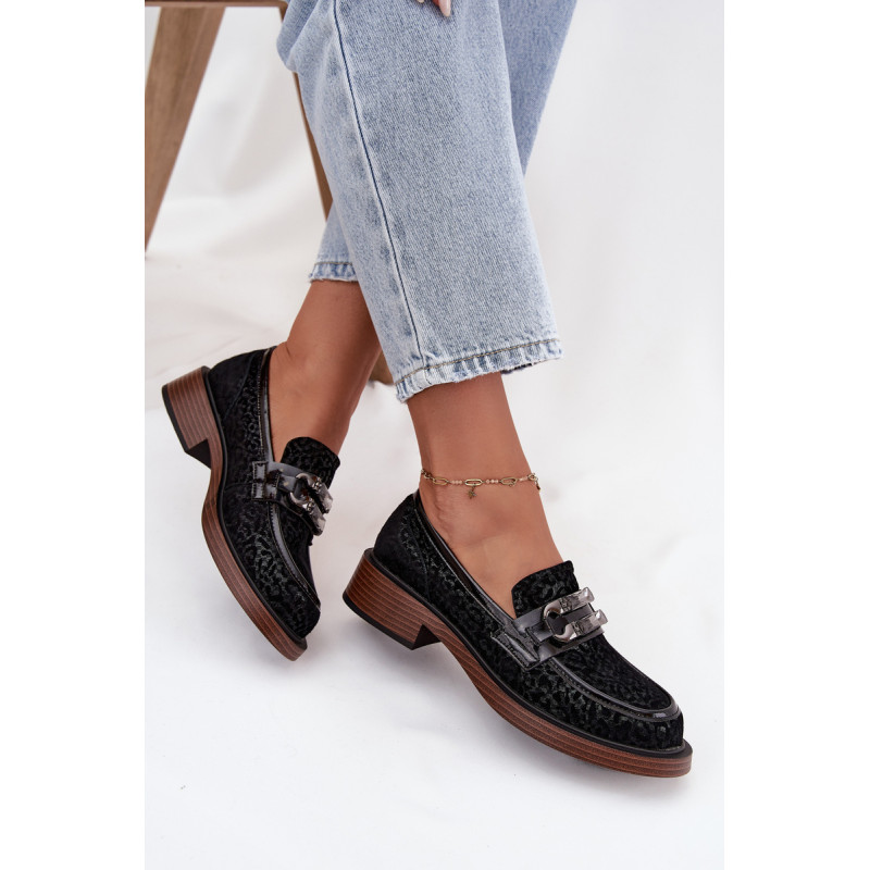 Eleganti moteriški mokasinai iš natūralaus zomšiaus. Minkšta liečiama oda užtikrina komfortą, o kruopšti apdaila pabrėžia jų laikui nepavaldų pobūdį. Pastatyti ant stabilios kubo formos kulno, jie užtikrina patogumą visą dieną ir subtiliai pabrėžia siluetą. Apvalios nosys. Priekyje įmontuotas dekoratyvinis elementas su kristalais, kuris jiems suteikia originalumo. Šis modelis puikiai tinka tiek kasdieniam stiliui, tiek išskirtinėms progoms, kaip stilingas moteriškos drabužių spintos papildymas. Renkantis dydį, vadovaukitės dydžių lentele.