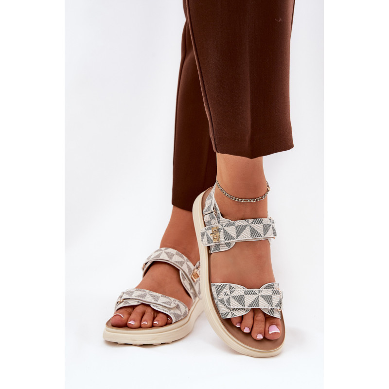 Patogūs moteriški sandalai, pagaminti iš tekstilės, kurie sujungia komfortą su subtiliu stiliumi. Uždaryti su lipnia juostele, kas leidžia lengvai ir greitai pritaikyti. Mažas auksinis elementas prideda elegancijos ir išskirtinio charakterio. Dėl minkštos pado jie užtikrina komfortą kiekviename žingsnyje. Puikiai tinka šiltoms dienoms, puikiai dera su vasaros suknelėmis, sijonais ir kelnėmis. Renkantis dydį, vadovaukitės dydžių lentele.