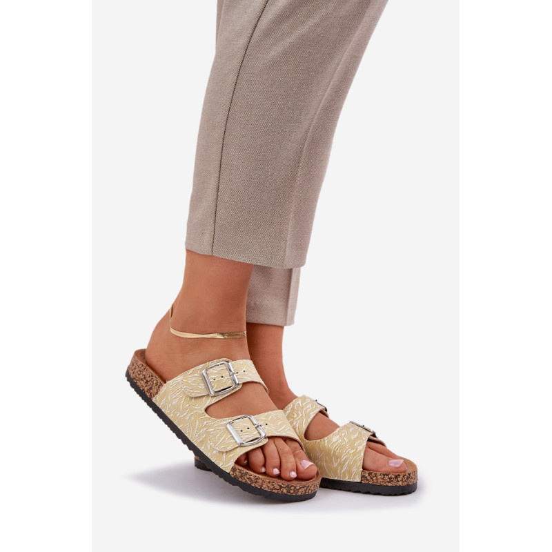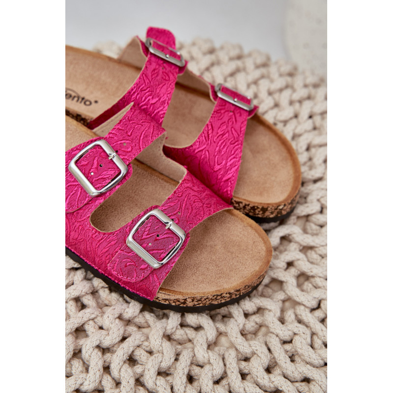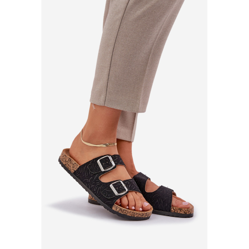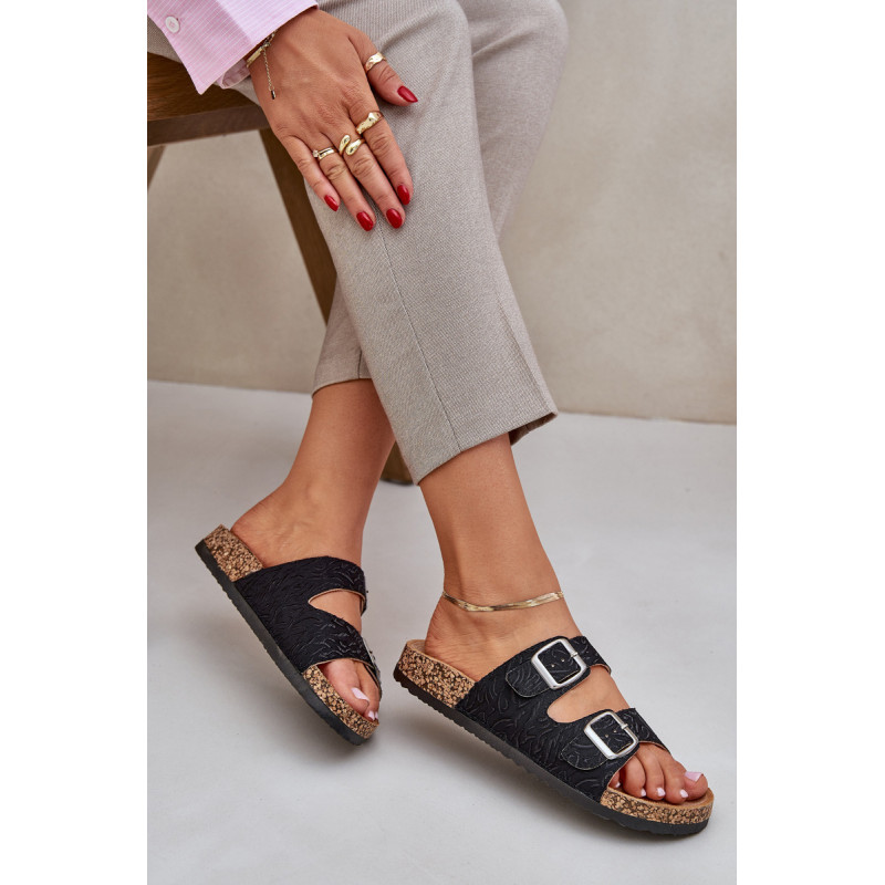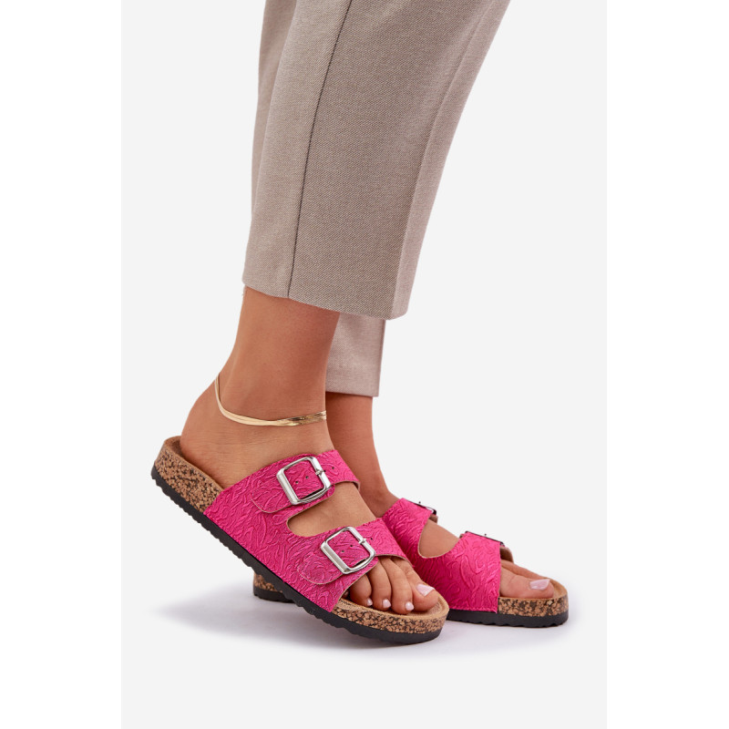 Moteriški šlepetės, pagamintos iš tekstilinės medžiagos, yra puikus pasirinkimas šiltoms dienoms. Du dirželiai su sagtimis užtikrina lengvą pritaikymą prie pėdos, o kamštinė padas suteikia lengvumo ir madingo charakterio. Profilinė vidpadis garantuoja komfortą visą dieną, todėl šios šlepetės yra ideali pasirinkimo galimybė pasivaikščiojimams ar vasaros kelionėms. Komfortas ir stilius viename! Renkantis dydį, vadovaukitės dydžių lentele.