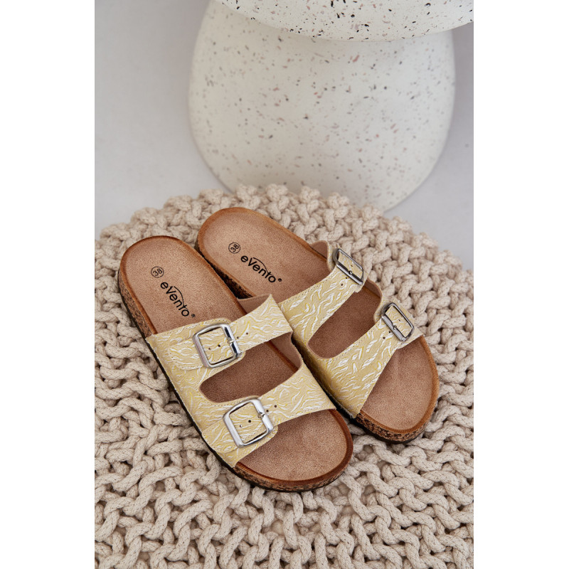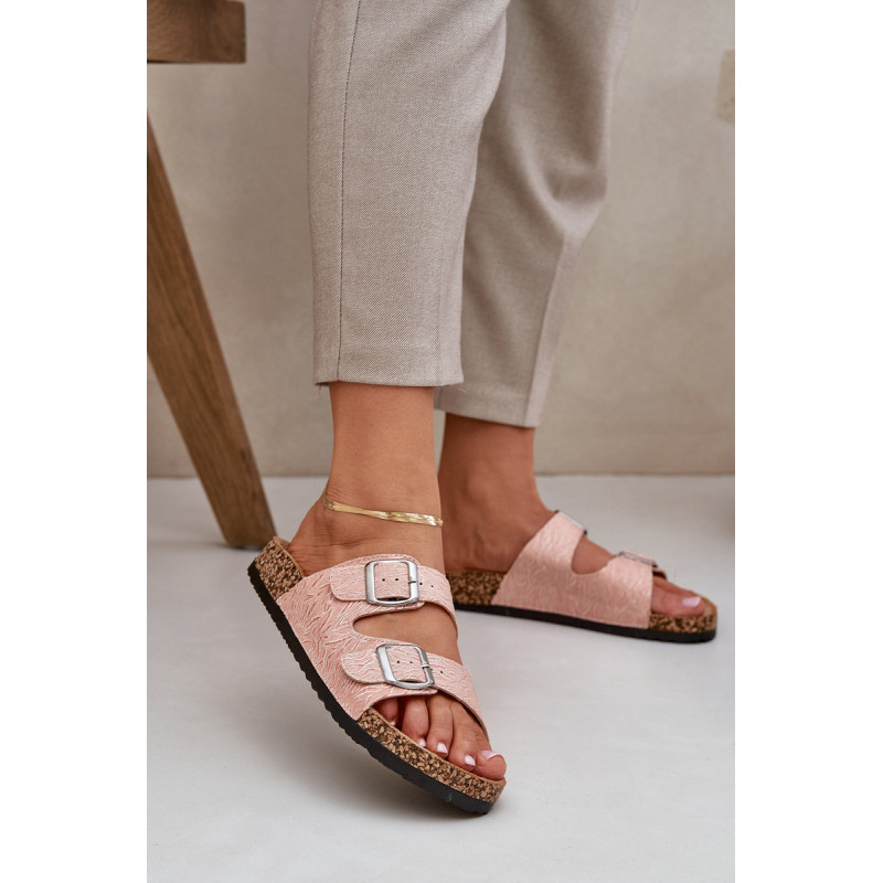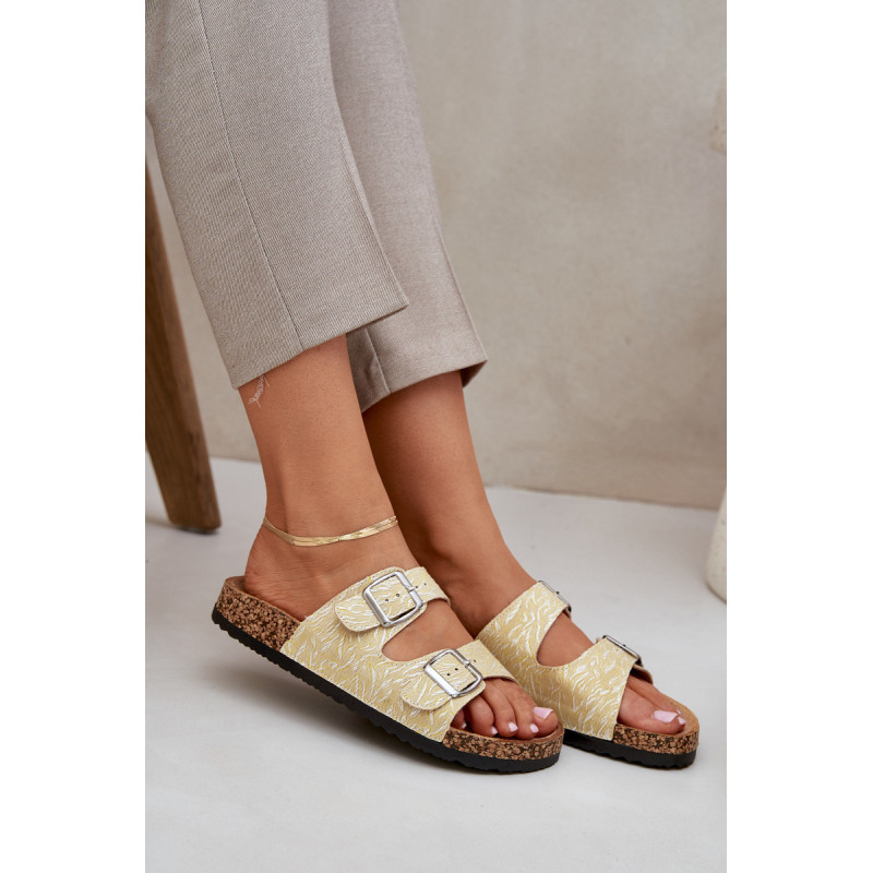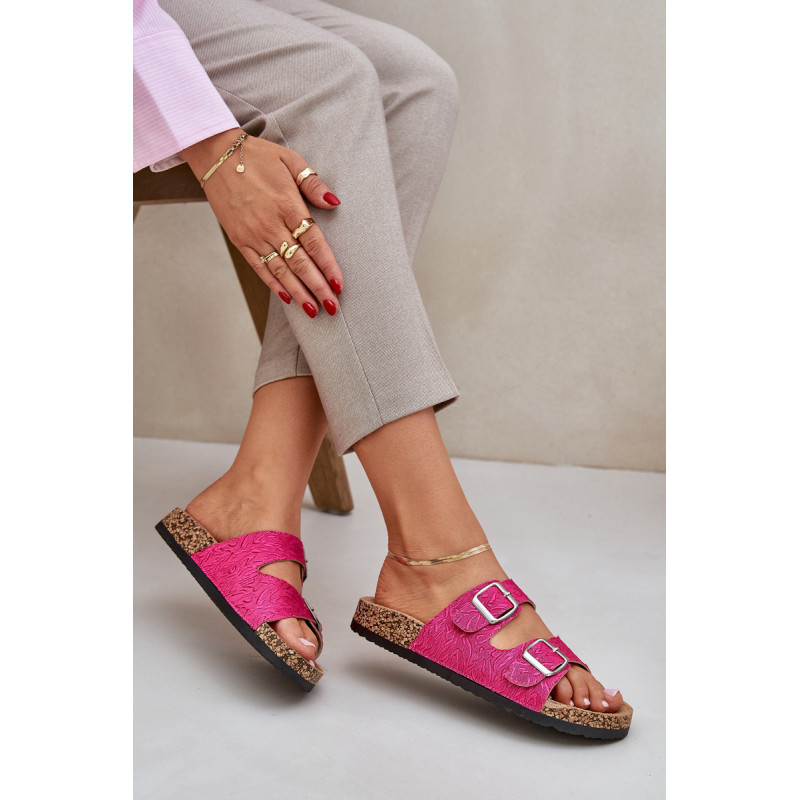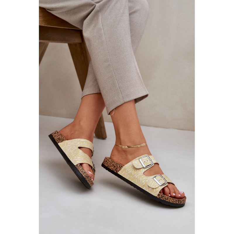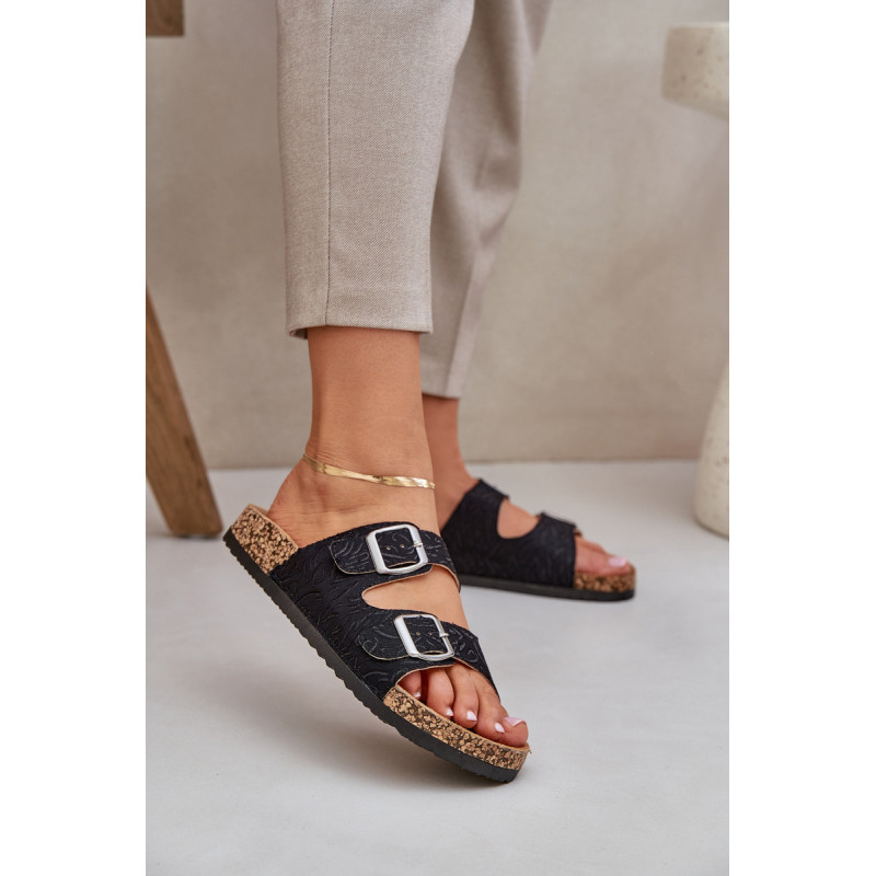 Moteriški šlepetės, pagamintos iš tekstilinės medžiagos, yra puikus pasirinkimas šiltoms dienoms. Du dirželiai su sagtimis užtikrina lengvą pritaikymą prie pėdos, o kamštinė padas suteikia lengvumo ir madingo charakterio. Profilinė vidpadis garantuoja komfortą visą dieną, todėl šios šlepetės yra ideali pasirinkimo galimybė pasivaikščiojimams ar vasaros kelionėms. Komfortas ir stilius viename! Renkantis dydį, vadovaukitės dydžių lentele.