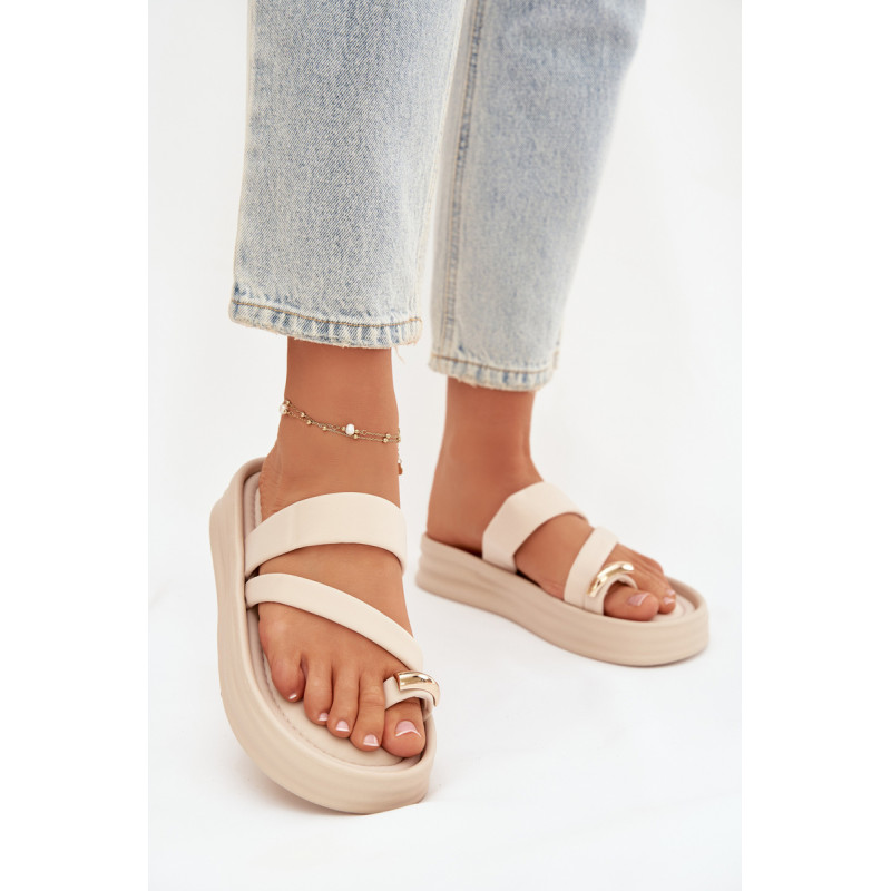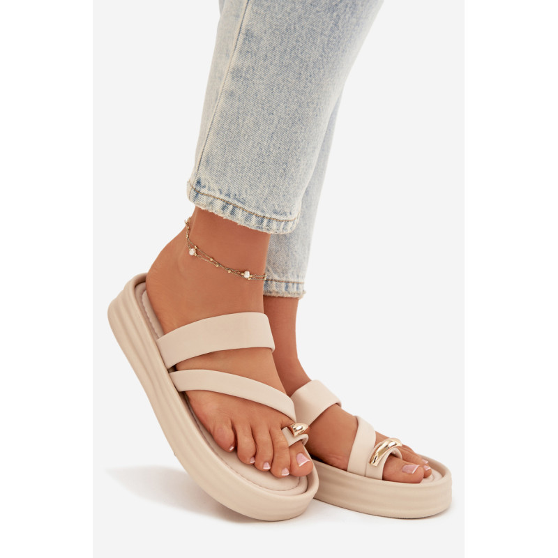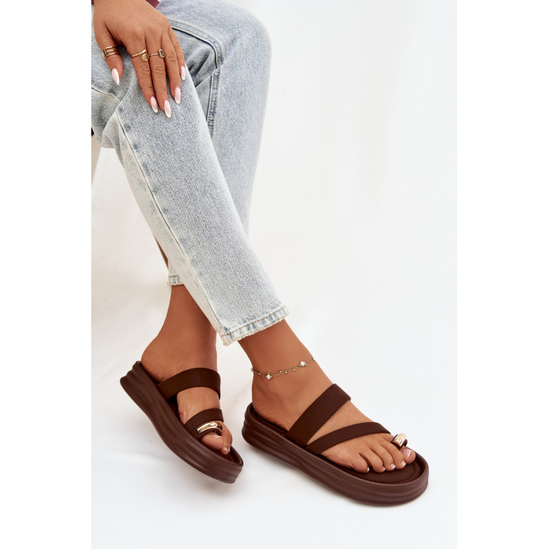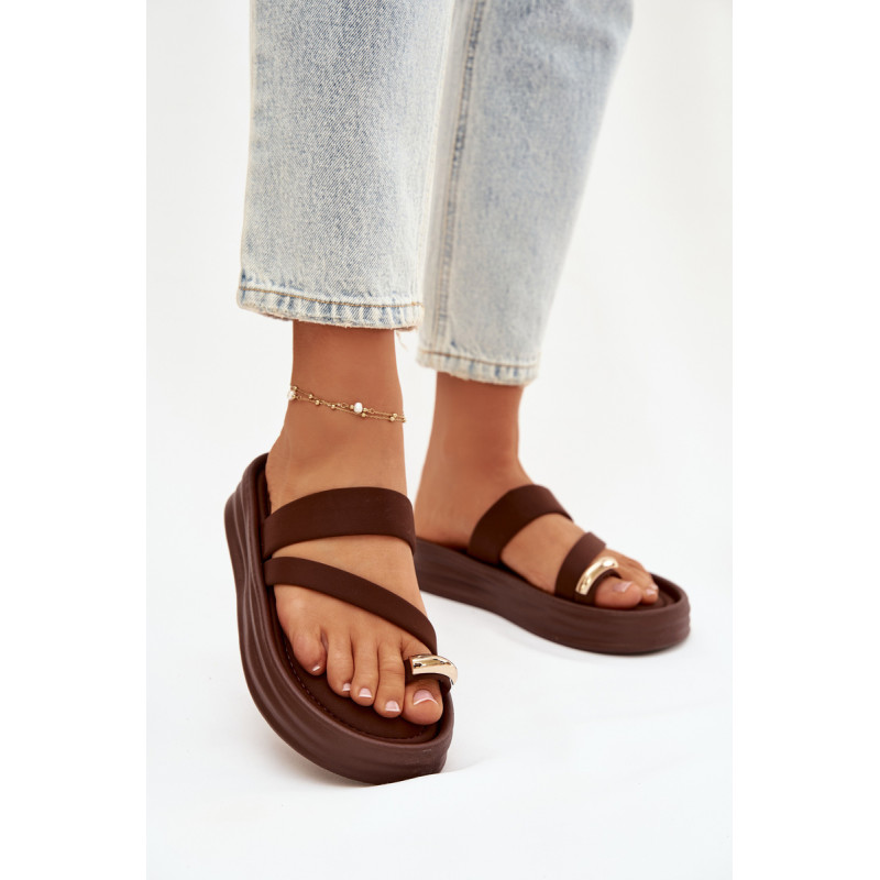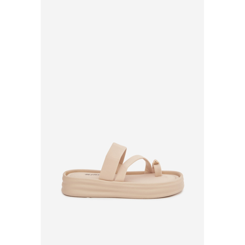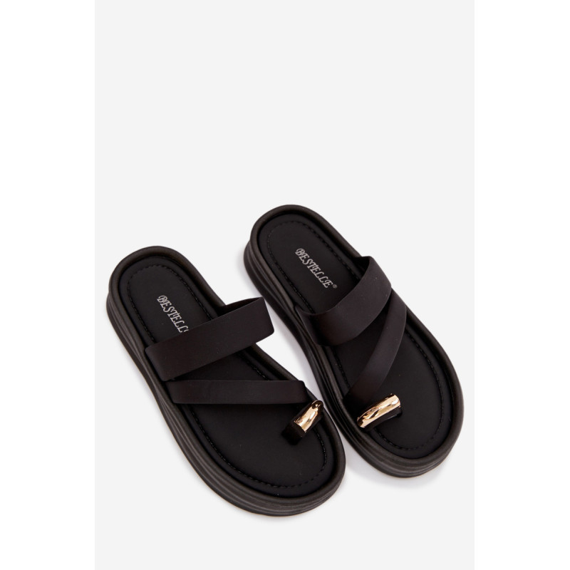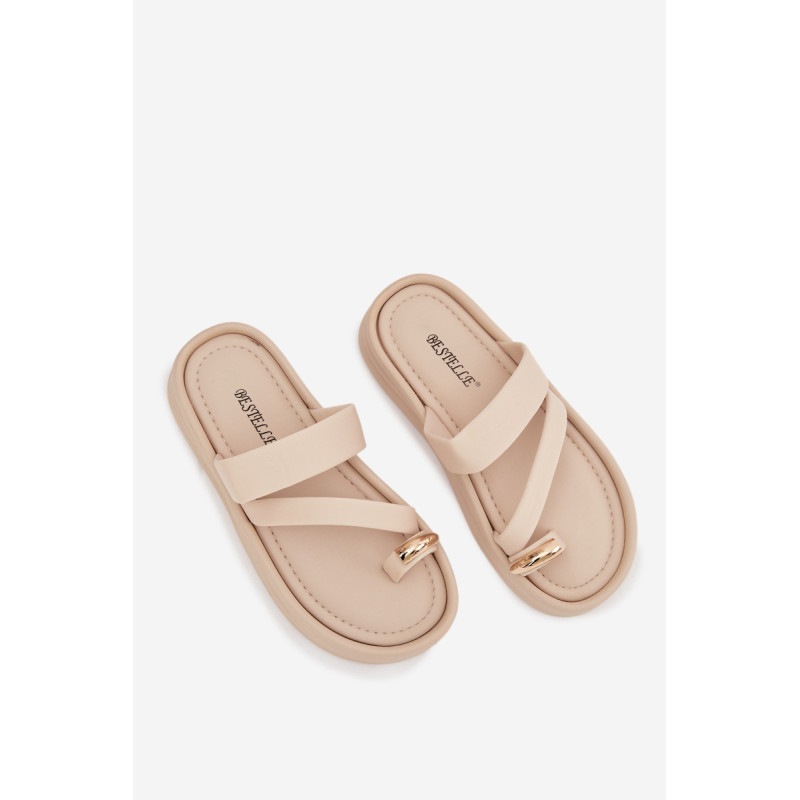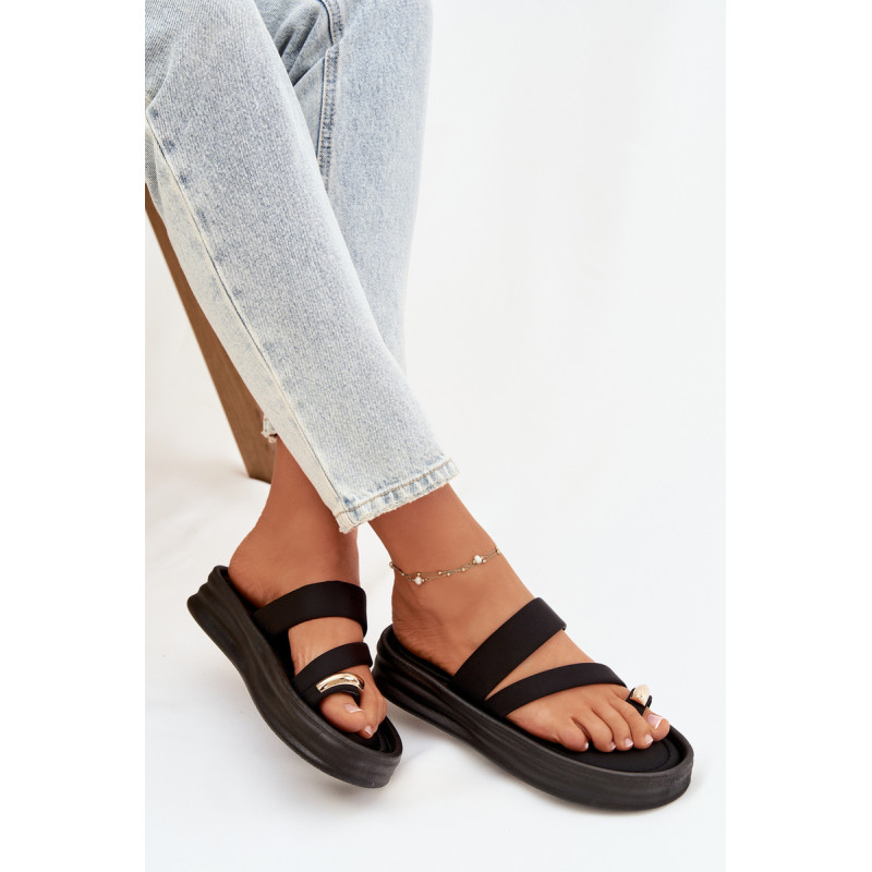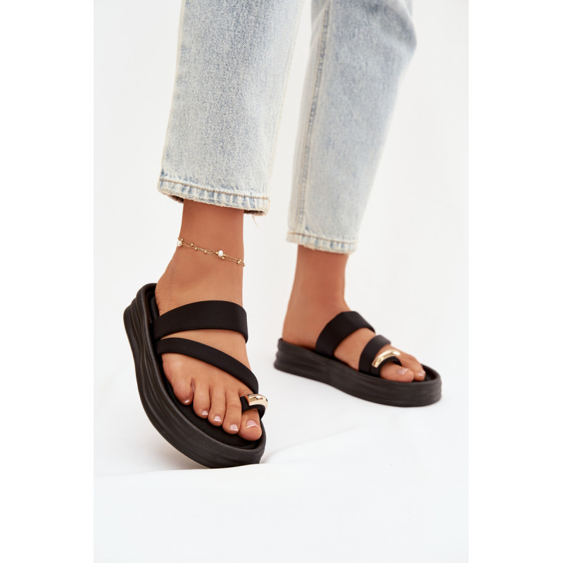 Moteriškos šlepetės, pagamintos iš tekstilės medžiagos, yra stilinga ir patogi pasirinkimas šiltomis dienomis. Pastatytos ant platformos, jos užtikrina komfortą ir šiek tiek pakelia siluetą. Priekiniai dirželiai stabiliai laiko koją, o auksinis detalė ant piršto suteikia elegancijos ir madingo akcento. Modelis puikiai tinka kasdieniams vasaros įvaizdžiams – tiek su suknelėmis, tiek su kasdieniais deriniais. Renkantis dydį, vadovaukitės dydžių lentele.
