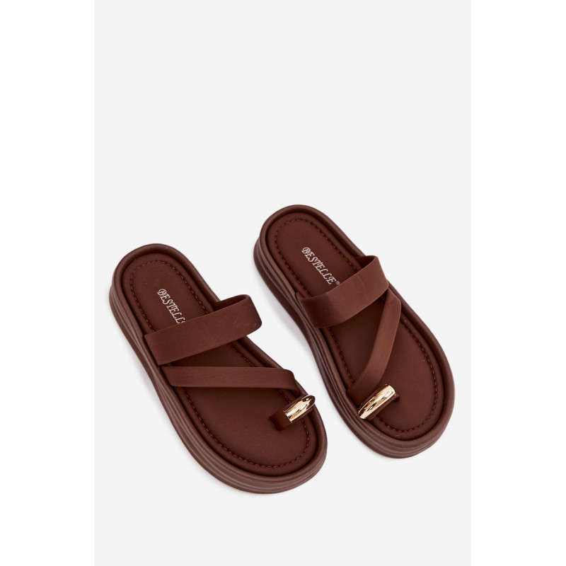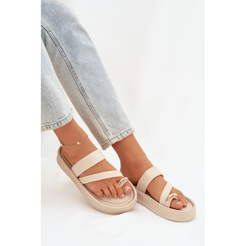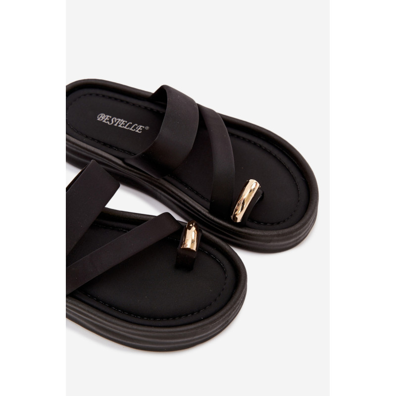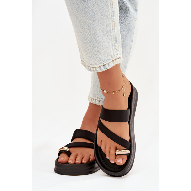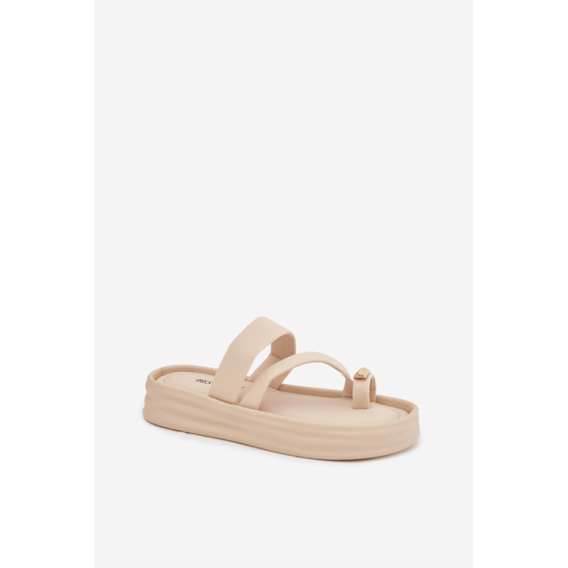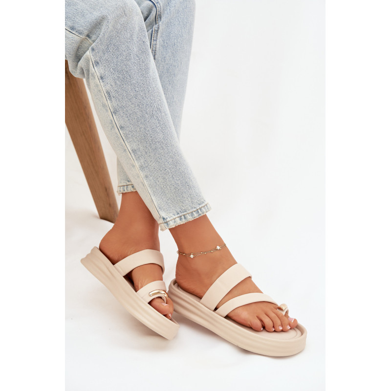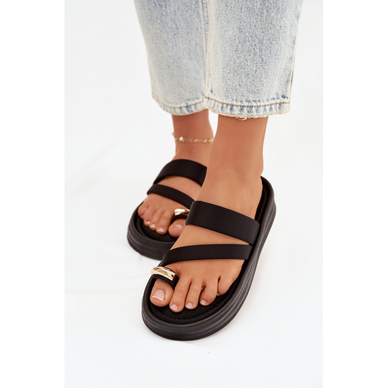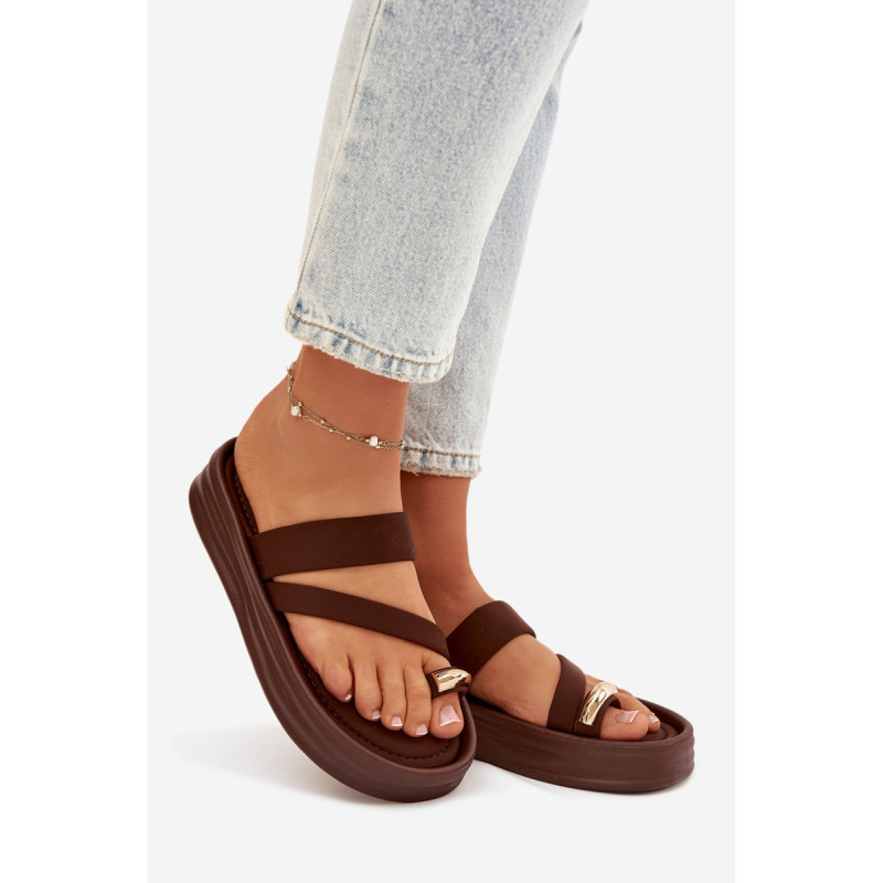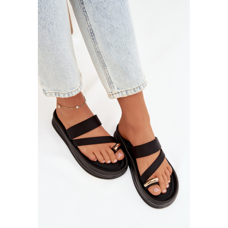 Moteriškos šlepetės, pagamintos iš tekstilės medžiagos, yra stilinga ir patogi pasirinkimas šiltomis dienomis. Pastatytos ant platformos, jos užtikrina komfortą ir šiek tiek pakelia siluetą. Priekiniai dirželiai stabiliai laiko koją, o auksinis detalė ant piršto suteikia elegancijos ir madingo akcento. Modelis puikiai tinka kasdieniams vasaros įvaizdžiams – tiek su suknelėmis, tiek su kasdieniais deriniais. Renkantis dydį, vadovaukitės dydžių lentele.