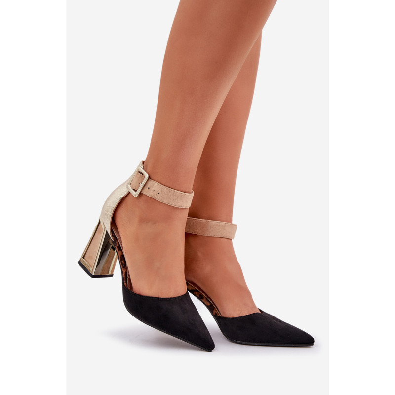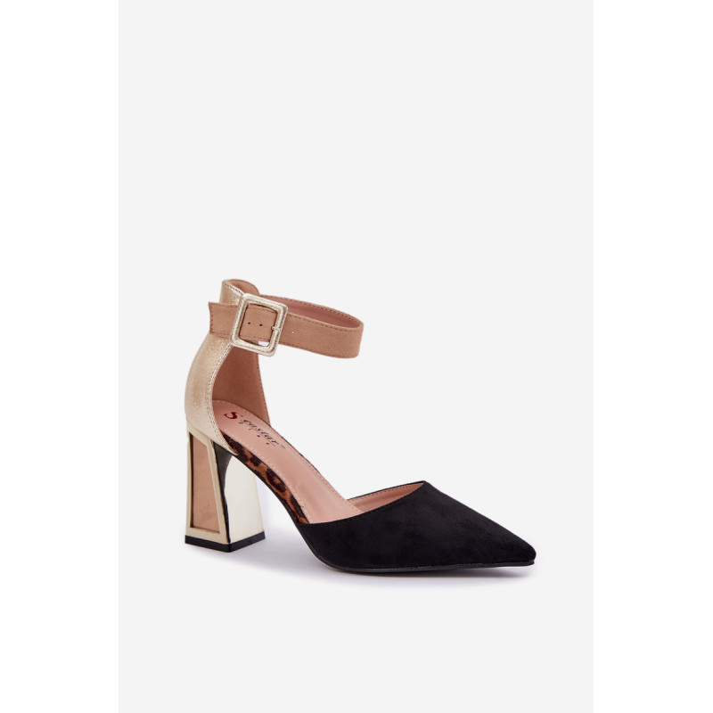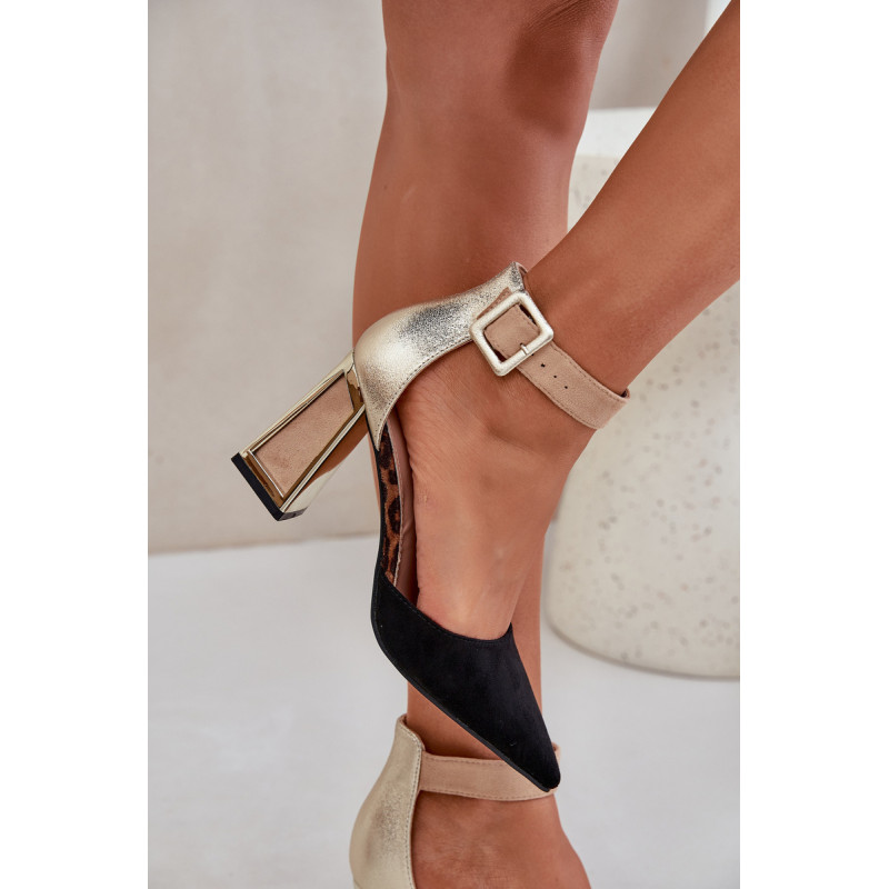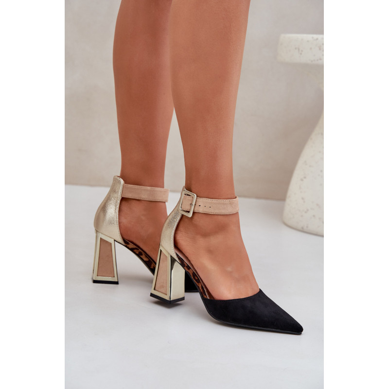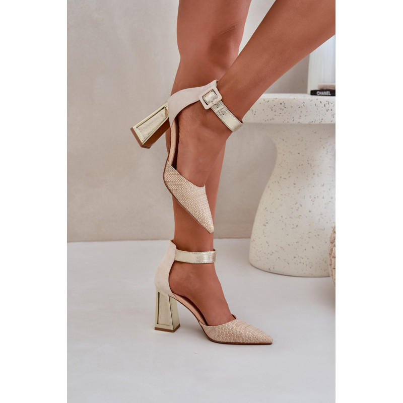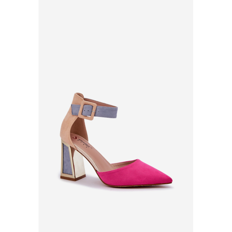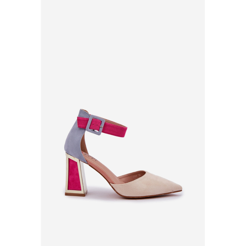 Spalvingi sandalai iš eko zomšos yra drąsus ir stilingas pasiūlymas moterims, kurios mėgsta išsiskirti minioje. Jie yra ant blokinio kulno su auksiniu, veidrodiniu elementu, kuris suteikia jiems šiuolaikinį žvilgesį. Smailūs pirštai suteikia jiems elegantišką charakterį, o uždara kulno dalis ir reguliuojama juosta su sagtimi užtikrina komfortą ir stabilumą. Šie sandalai bus puikus pasirinkimas vakarėliams, šventėms ar elegantiškiems susitikimams, derinant unikalų dizainą su funkcionalumu. Renkantis dydį, vadovaukitės dydžių lentele.