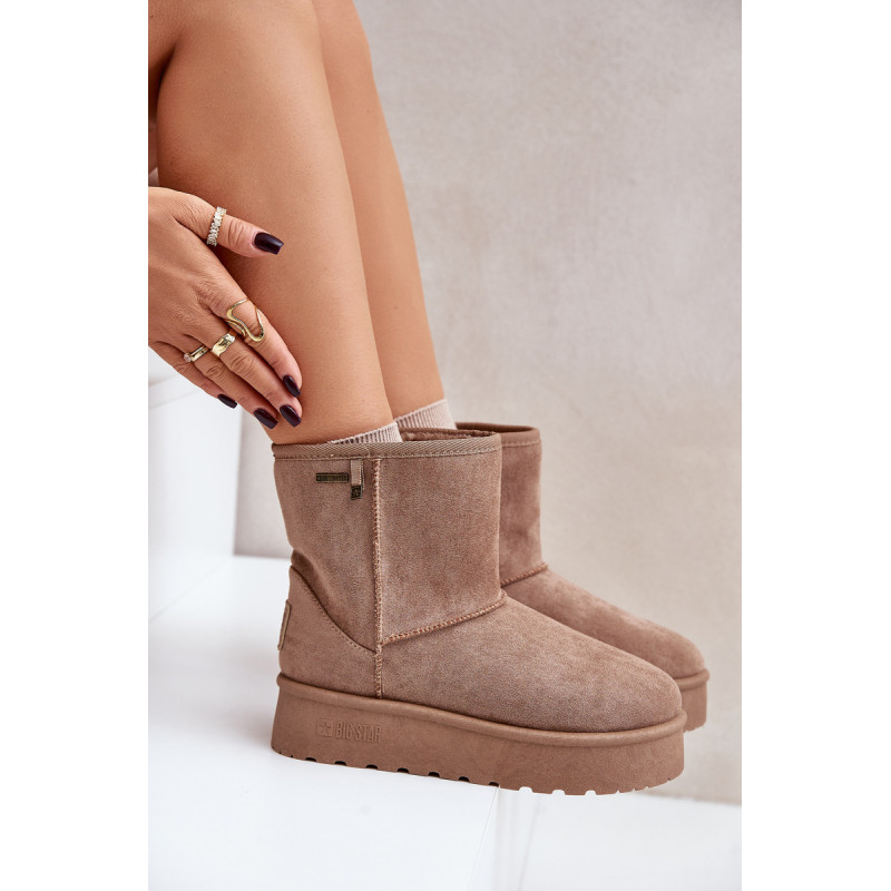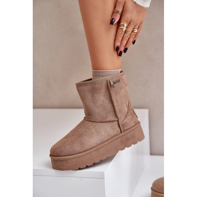 Big Star sniego batai, pagaminti iš ekologiškos zomšos, yra puikus pasirinkimas žiemos dienomis. Ant platformos jie suteikia komfortą ir madingą išvaizdą, o vandeniui atspari membrana apsaugo nuo drėgmės. Minkštu kailiu pamuštas vidus užtikrina šilumą ir komfortą net šalčiausiomis dienomis. Idealus stiliaus ir funkcionalumo derinys. Rinkdamiesi dydį, žiūrėkite dydžių lentelę.