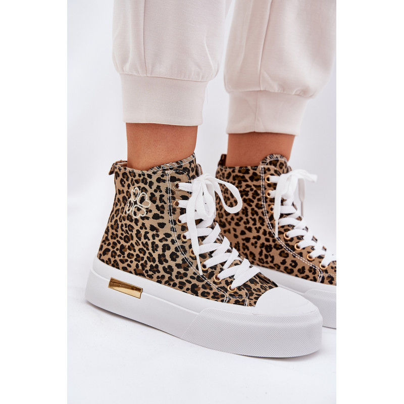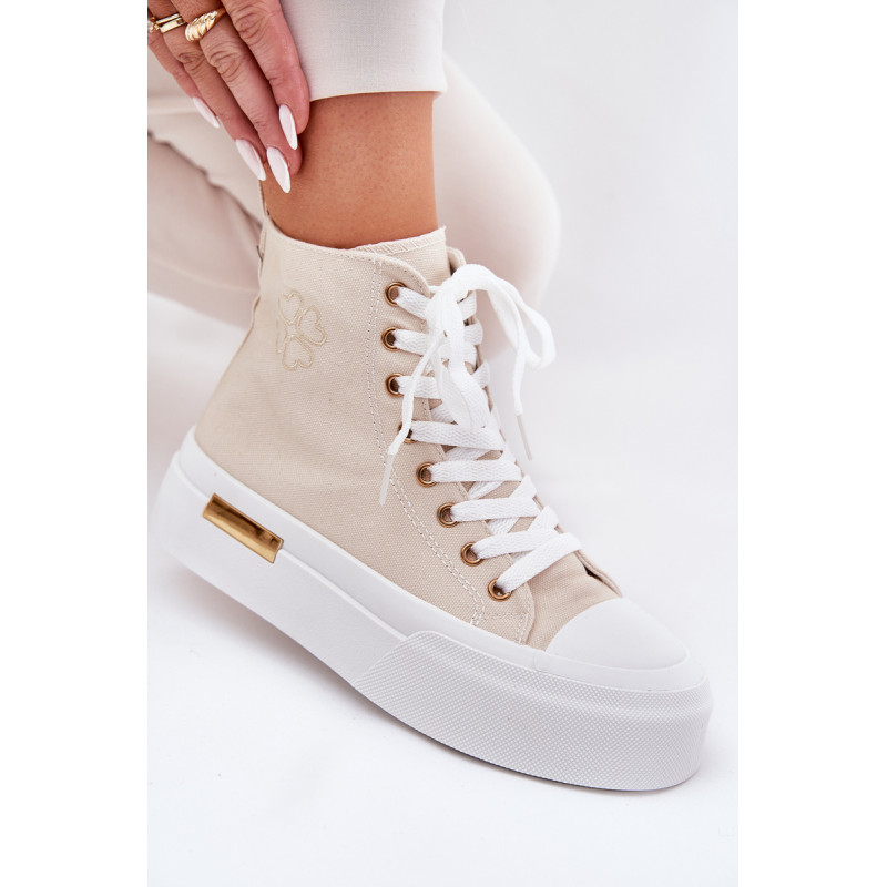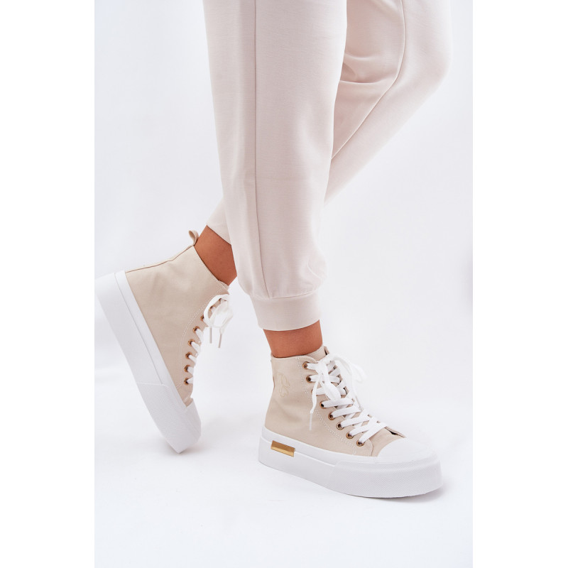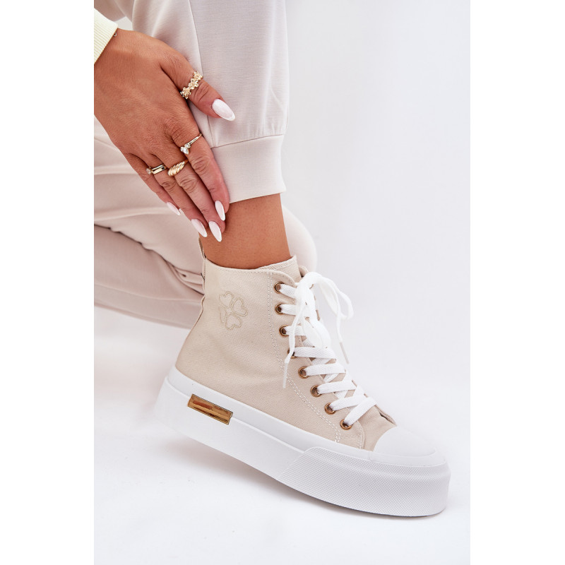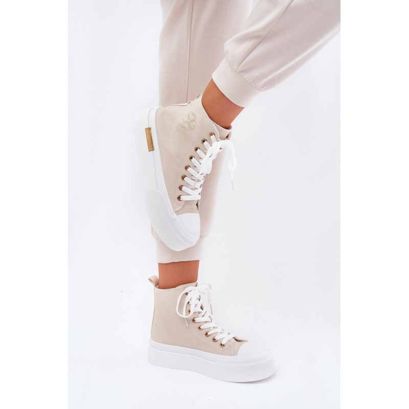 Aukšti moteriški sportbačiai, pagaminti iš tekstilės medžiagos. Įrengti ant gumos platformos, kuri užtikrina komfortą ir modernų vaizdą. Suapvalinti nosiai suteikia lengvumo, o platforma užtikrina patogumą visą dieną. Šie sportbačiai puikiai dera prie įvairių stilių, idealiai tinka tiek kasdieniam, tiek sportiškesniam deriniui, derinant funkcionalumą su mados akcentu. Renkantis dydį, vadovaukitės dydžių lentele.