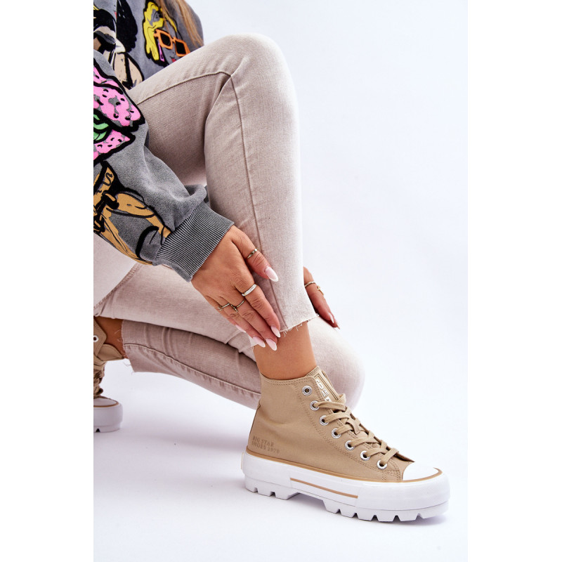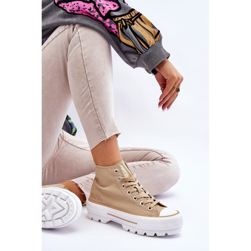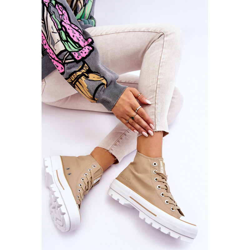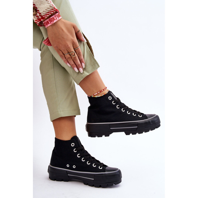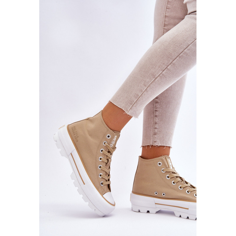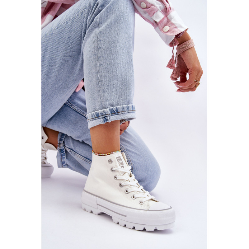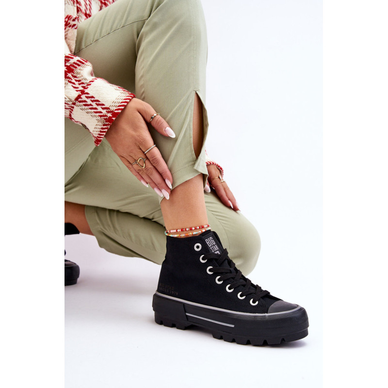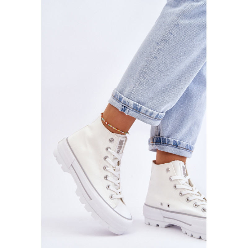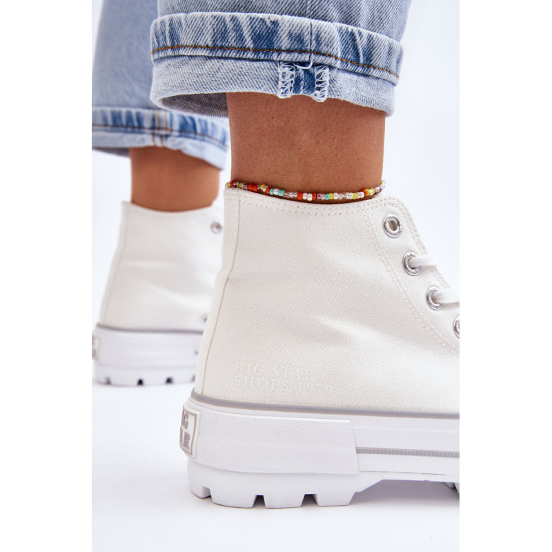 Madingi, aukšti moteriški sportbačiai iš prekės ženklo Big Star! Padas su aukštu protektoriumi ir viršutine dalis iš tekstilinės medžiagos kulkšnies. Šie sportbačiai taip pat turi šiek tiek standesnį kulno skaitiklį. Platforma ir padas pagaminti iš guminės medžiagos. Rinkdamiesi dydį žiūrėkite dydžių lentelę.