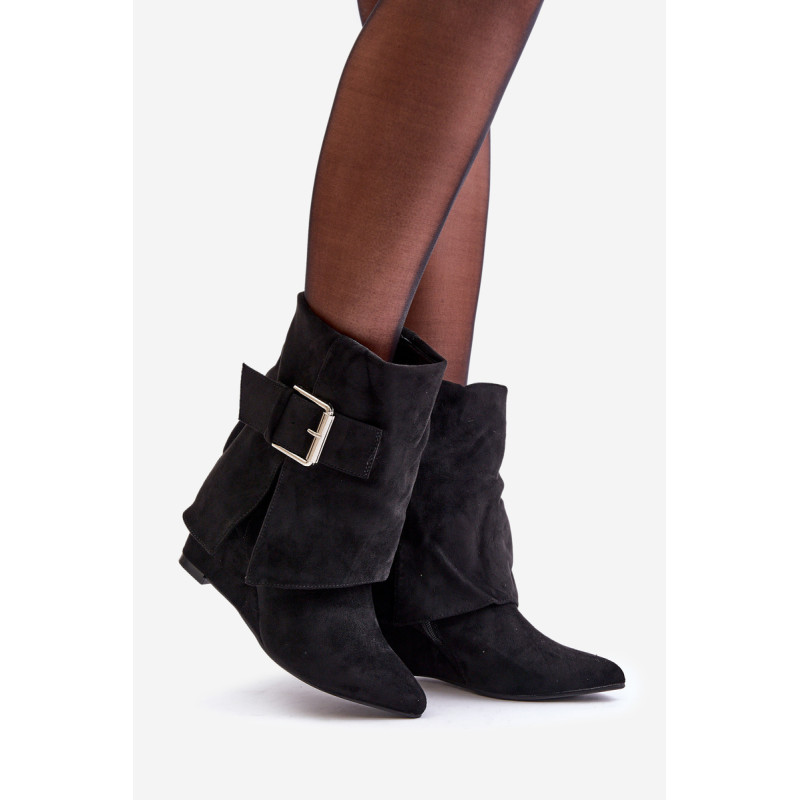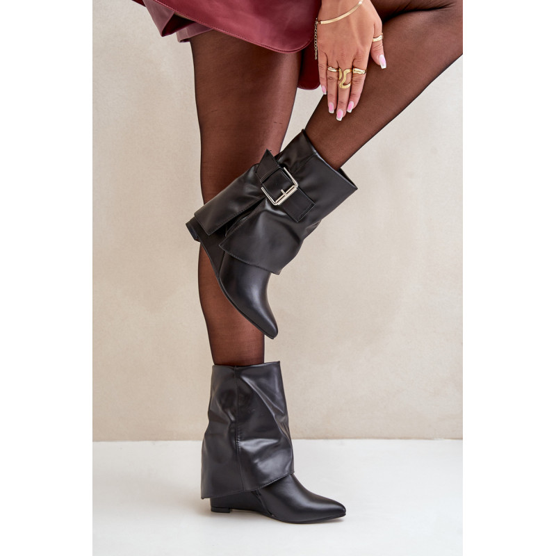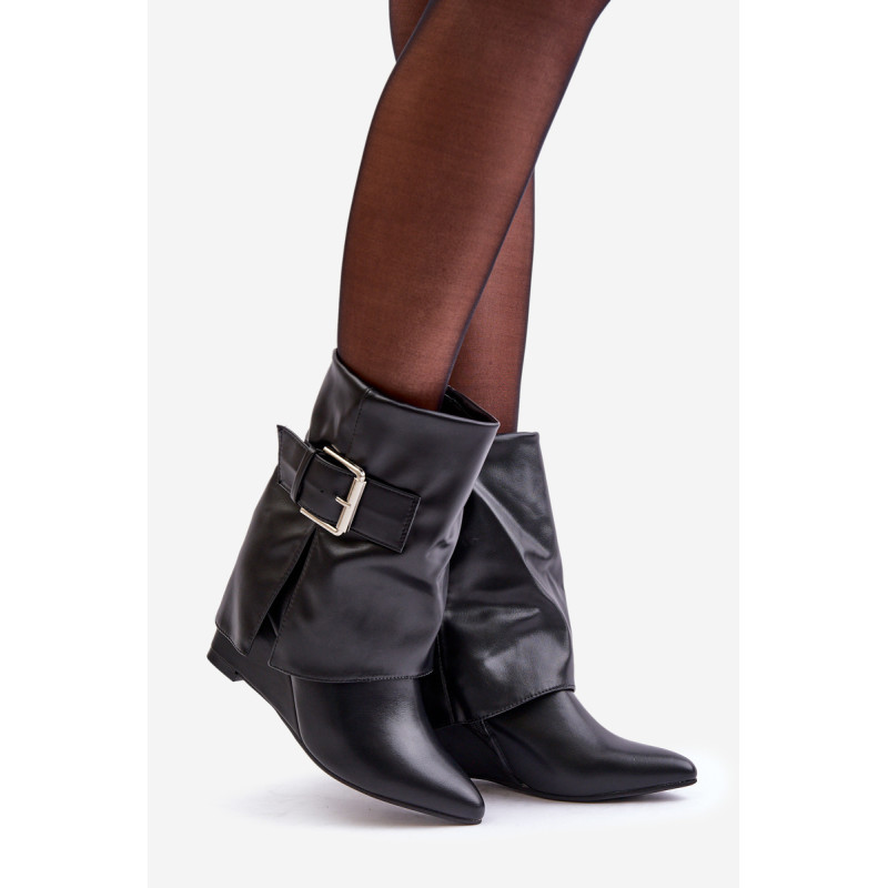 Ekologinės odos auliniai batai yra originalus ir stilingas pasirinkimas kasdieniam dėvėjimui ir ypatingoms progoms. Modelis turi sulankstytą viršų, kuris efektyviai uždengia platformos kulną, suteikdamas modernų įvaizdį. Slip-on auliniai batai su papildomu užtrauktuku užtikrina lengvą užsidėjimą ir tobulą prigludimą. Smailūs pirštai prideda elegancijos, o didelė sagtis ant viršaus yra ryškus akcentas, pabrėžiantis unikalų dizainą. Šie auliniai batai puikiai tinka madingiems rudens ir žiemos stiliams, derinant komfortą su ryškiu stiliumi. Renkantis dydį, vadovaukitės dydžių lentele.