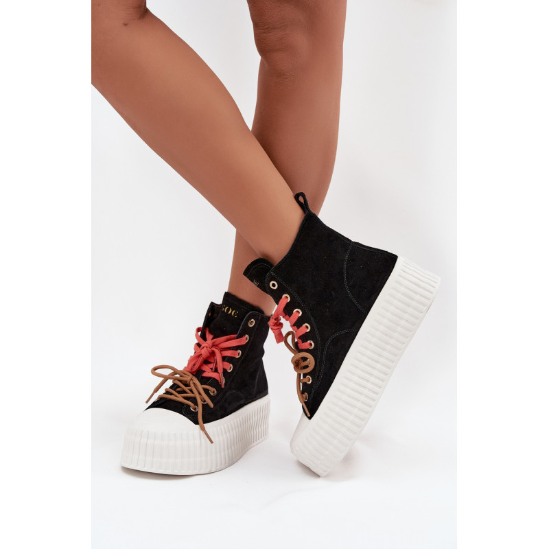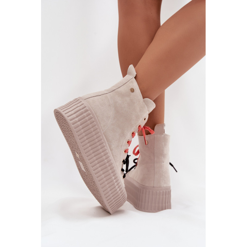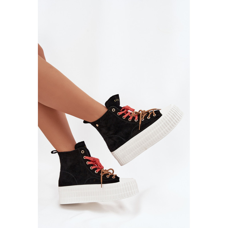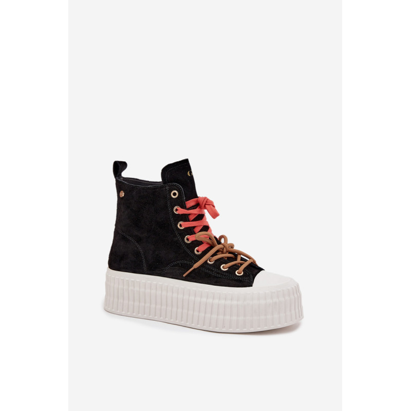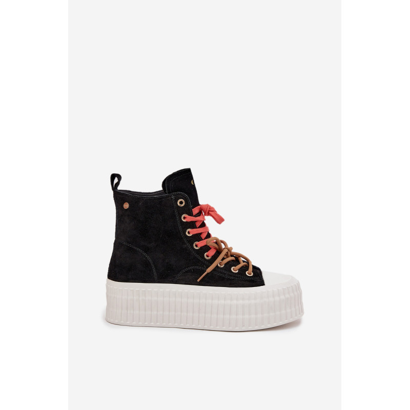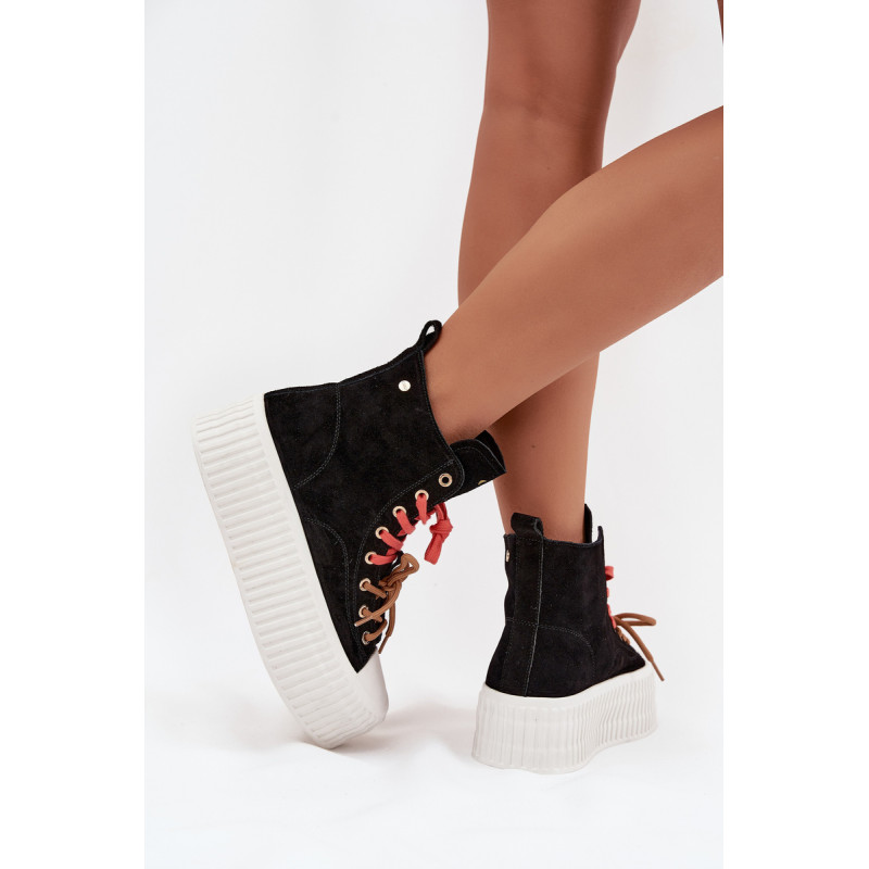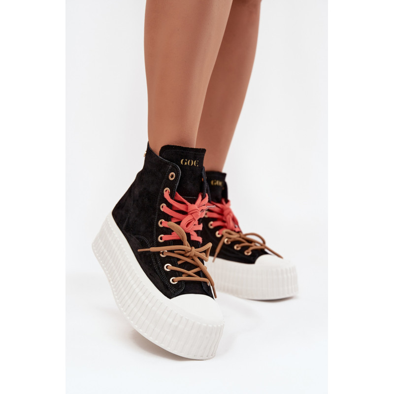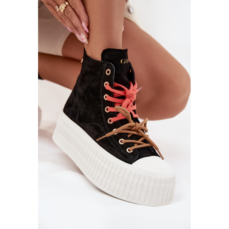Šildyti moteriški GOE sportiniai bateliai yra stilinga avalynė, puikiai tinkanti šaltesnėmis dienomis. Pagaminti iš aukštos kokybės natūralaus zomšos, atrodo madingai ir elegantiškai, tuo pačiu užtikrindami ilgaamžiškumą ir patogumą. Juos sustiprina masyvi platforma, kuri suteikia aukščio ir pabrėžia modernų batų charakterį. Išskirtinis jų vaizdas yra dvigubas, dviaukštis raištelis, kuris sudaro originalų akcentą ir patraukia dėmesį. Šis modelis yra idealus moterims, vertinančioms patogumą, miesto stilių ir madingus akcentus kasdienėje aprangoje. Renkantis dydį, vadovaukitės dydžių lentele.