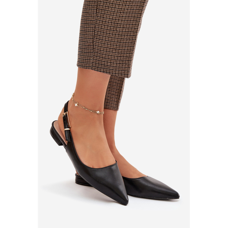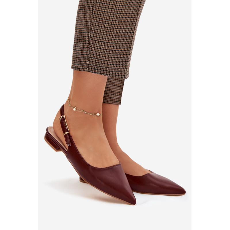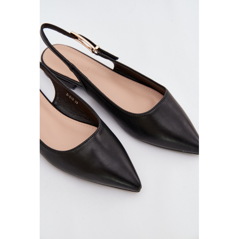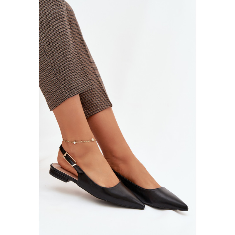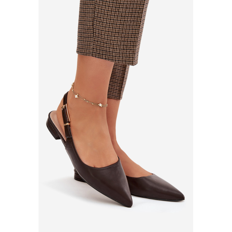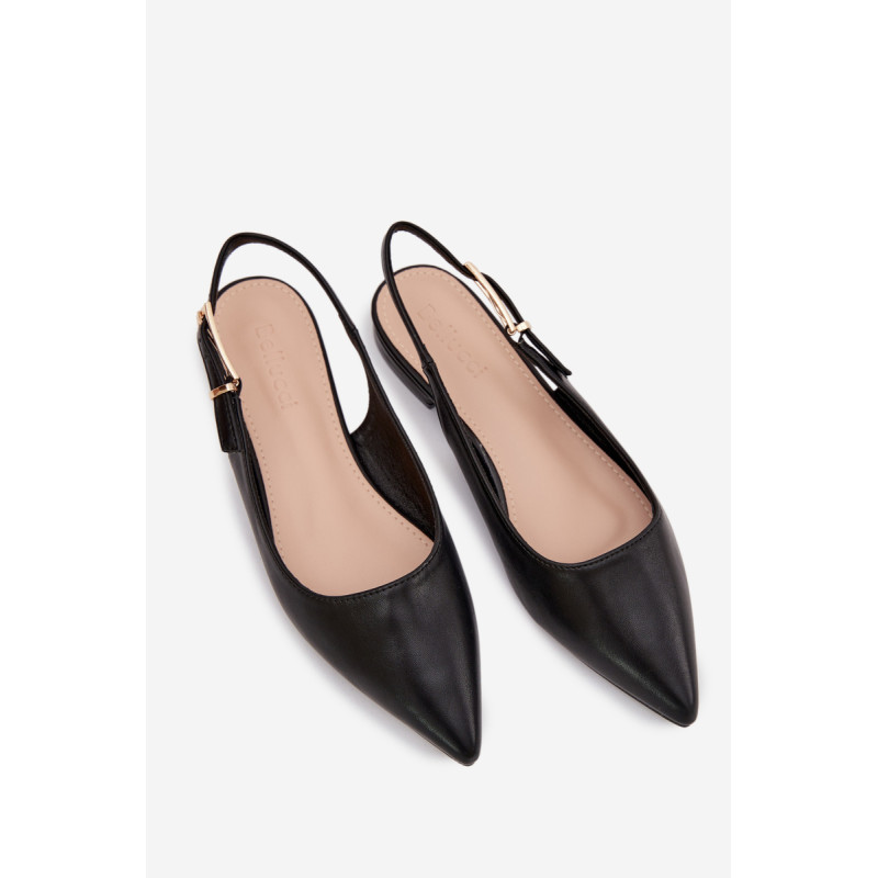 Eleganti moteriški balerinos iš ekologiškos odos yra stilingas pasirinkimas bet kokiai progai. Aštrios nosys gražiai pabrėžia pėdos liniją. Reguliuojama juostelė su auksine sagtimi leidžia puikiai pritaikyti batą prie pėdos ir tuo pačiu sukuria įspūdingą detalę. Žemas kulnas užtikrina patogumą visą dieną, todėl šios balerinos puikiai tinka kasdieniam dėvėjimui, darbui ar susitikimams. Renkantis dydį, vadovaukitės dydžių lentele.