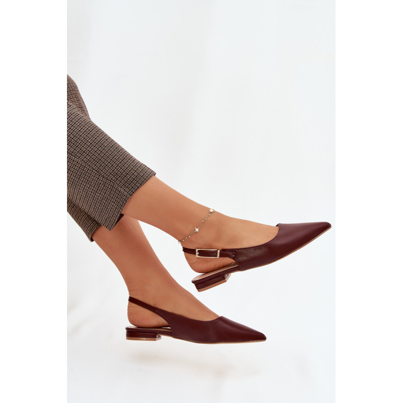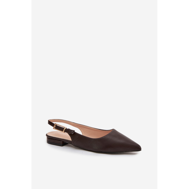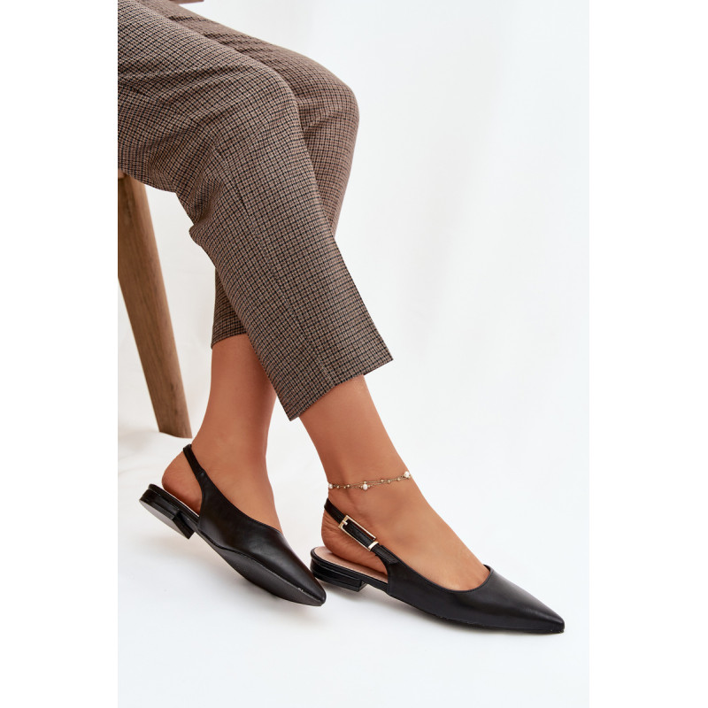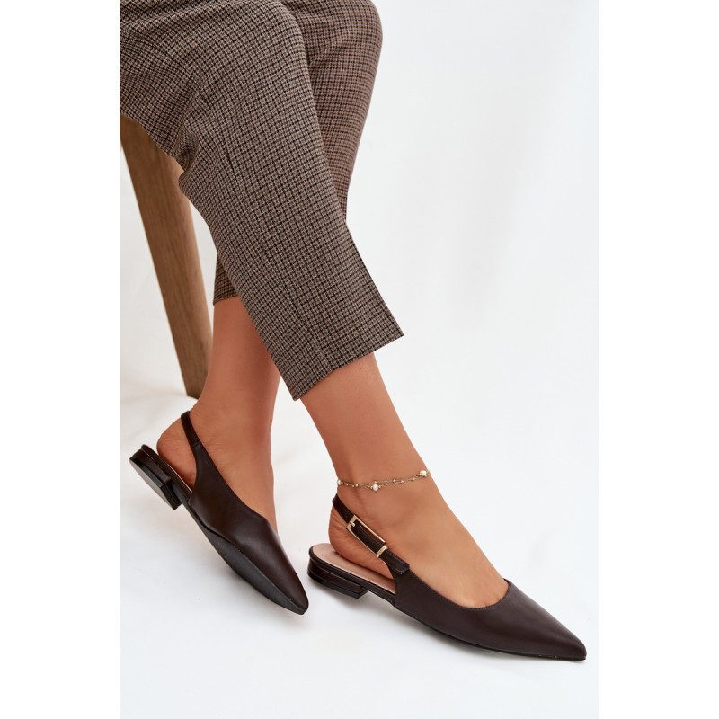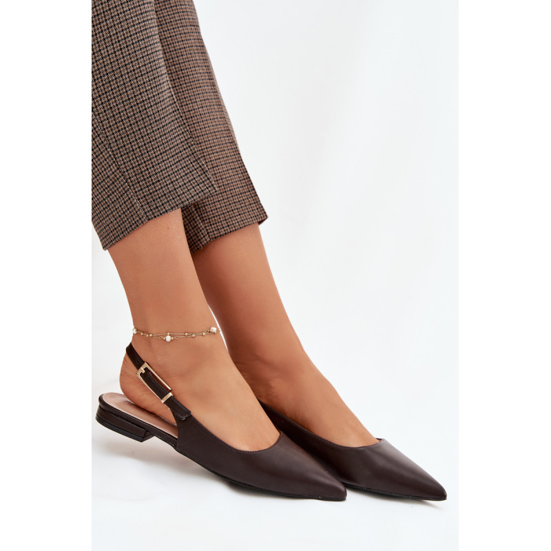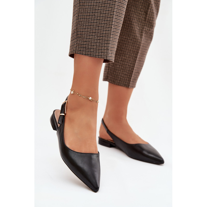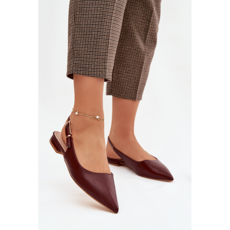 Eleganti moteriški balerinos iš ekologiškos odos yra stilingas pasirinkimas bet kokiai progai. Aštrios nosys gražiai pabrėžia pėdos liniją. Reguliuojama juostelė su auksine sagtimi leidžia puikiai pritaikyti batą prie pėdos ir tuo pačiu sukuria įspūdingą detalę. Žemas kulnas užtikrina patogumą visą dieną, todėl šios balerinos puikiai tinka kasdieniam dėvėjimui, darbui ar susitikimams. Renkantis dydį, vadovaukitės dydžių lentele.