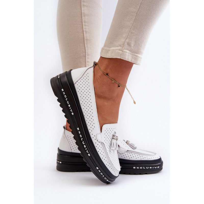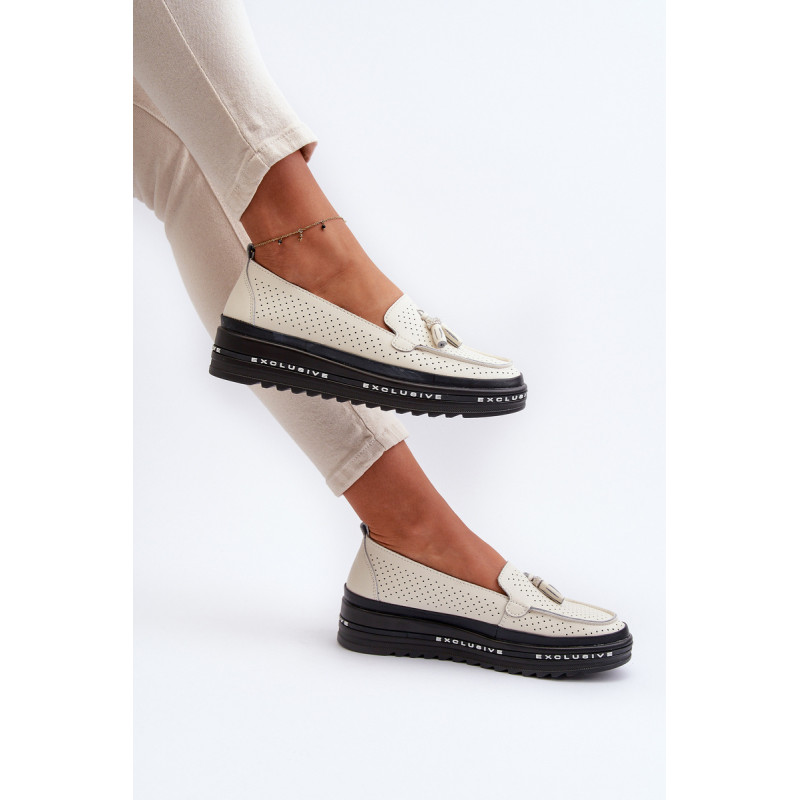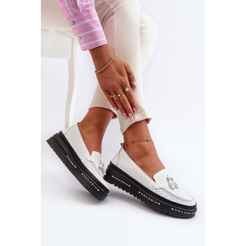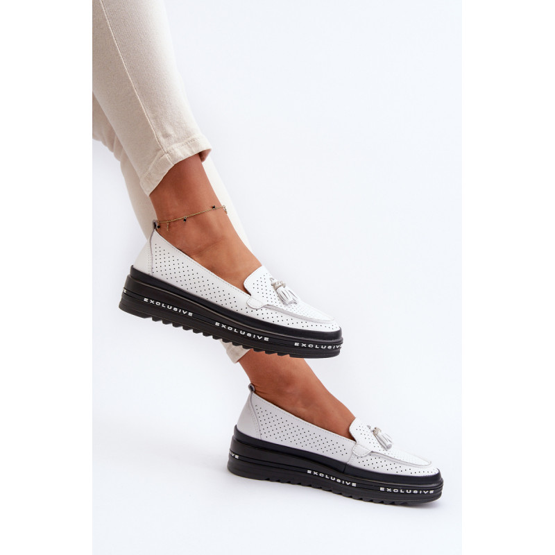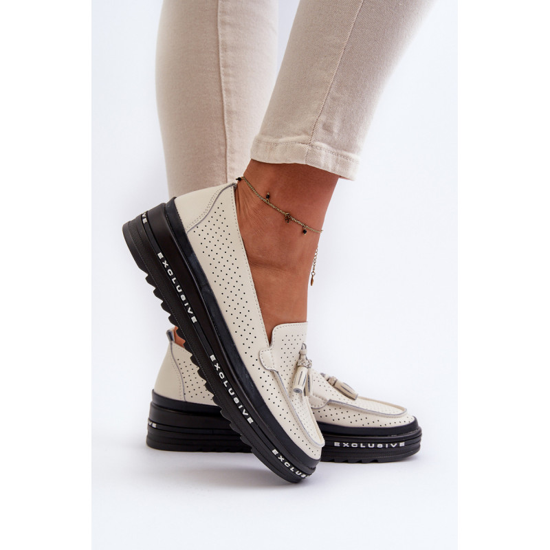 Odiniai mokasinai su platforma yra elegancijos ir komforto derinys. Perforuota viršutinė dalis suteikia joms lengvumo ir subtilumo, kartu pabrėžia jų modernų stilių. Šis modelis puikiai papildys daugelį stilių, pridėdamas madingą akcentą! Rinkdamiesi dydį, žiūrėkite dydžių lentelę.