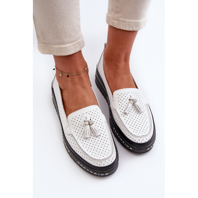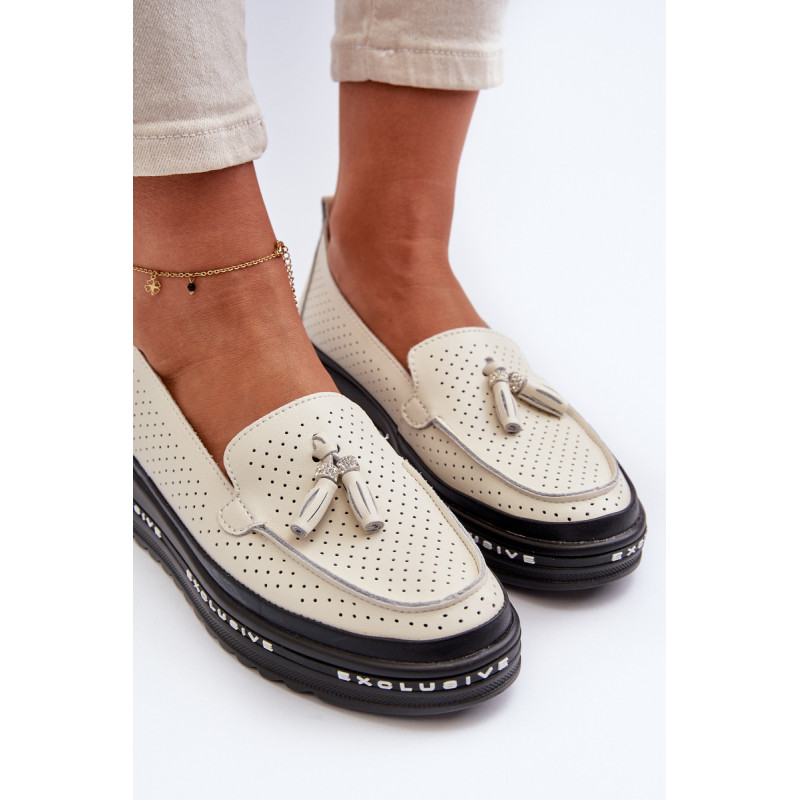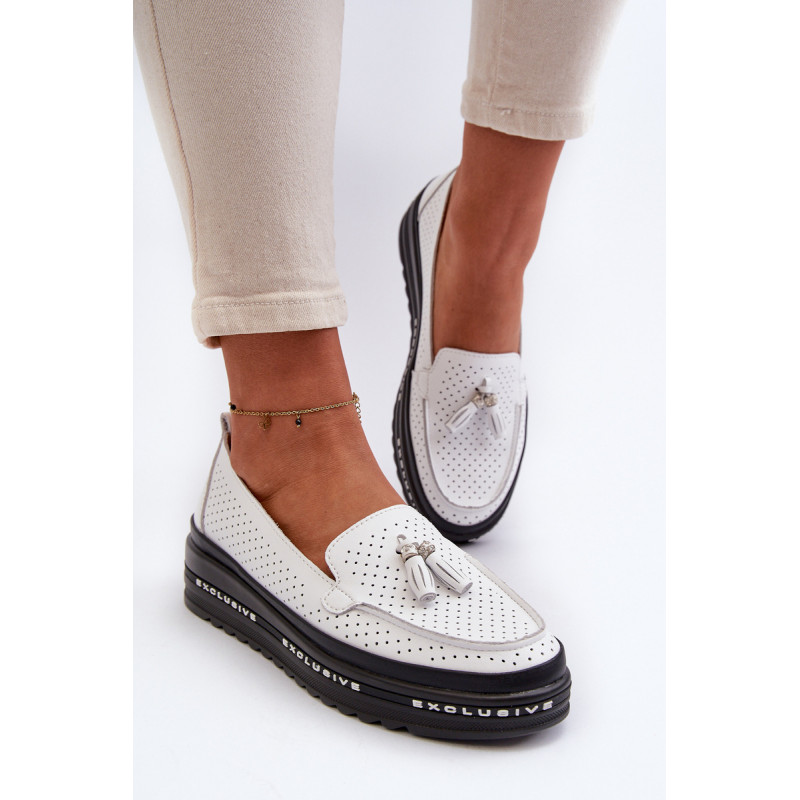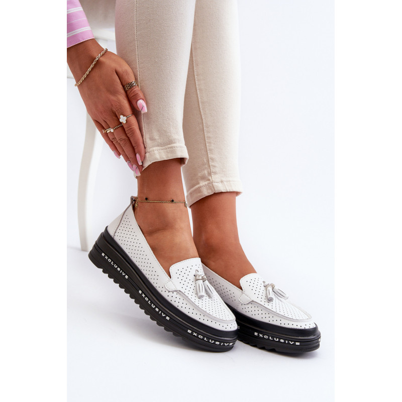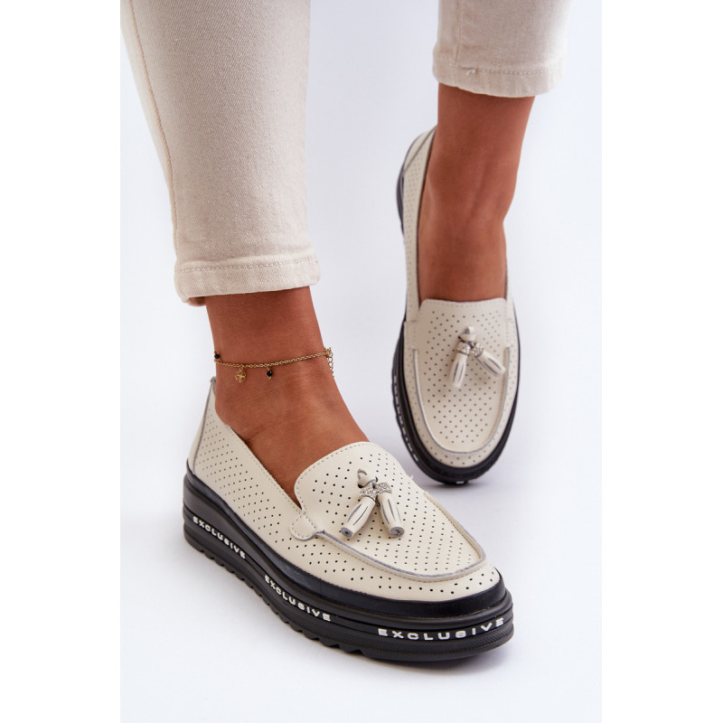 Odiniai mokasinai su platforma yra elegancijos ir komforto derinys. Perforuota viršutinė dalis suteikia joms lengvumo ir subtilumo, kartu pabrėžia jų modernų stilių. Šis modelis puikiai papildys daugelį stilių, pridėdamas madingą akcentą! Rinkdamiesi dydį, žiūrėkite dydžių lentelę.