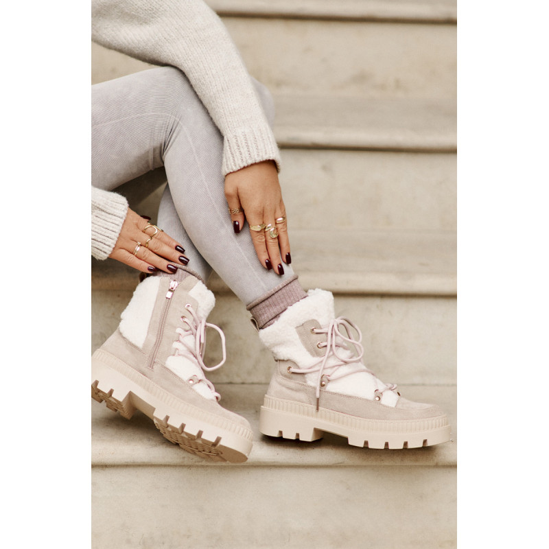 Ženske škornje z jagnječjo dlako so stilna in topla izbira za hladnejše dni. Narejene na ravni peti, zagotavljajo udobje pri vsakodnevnem nošenju. Zapenjanje z zadrgo olajša hitro obuvanje in sezuvanje, notranjost pa, obložena z obutveno flisom, zagotavlja toplotno udobje tudi v ledenih dneh. Pri izbiri velikosti si oglejte tabelo velikosti.