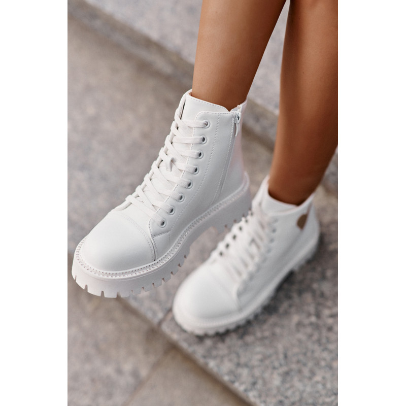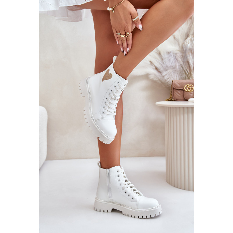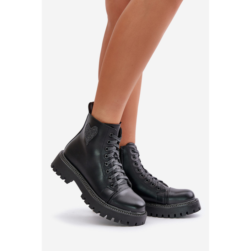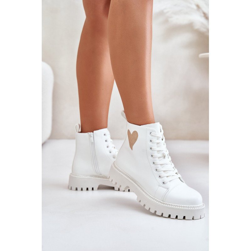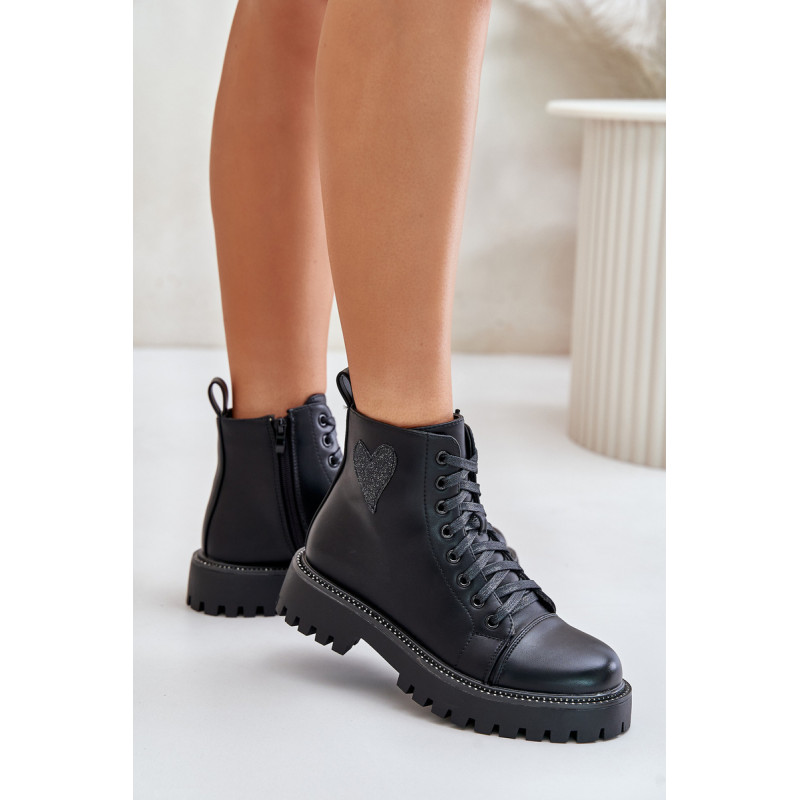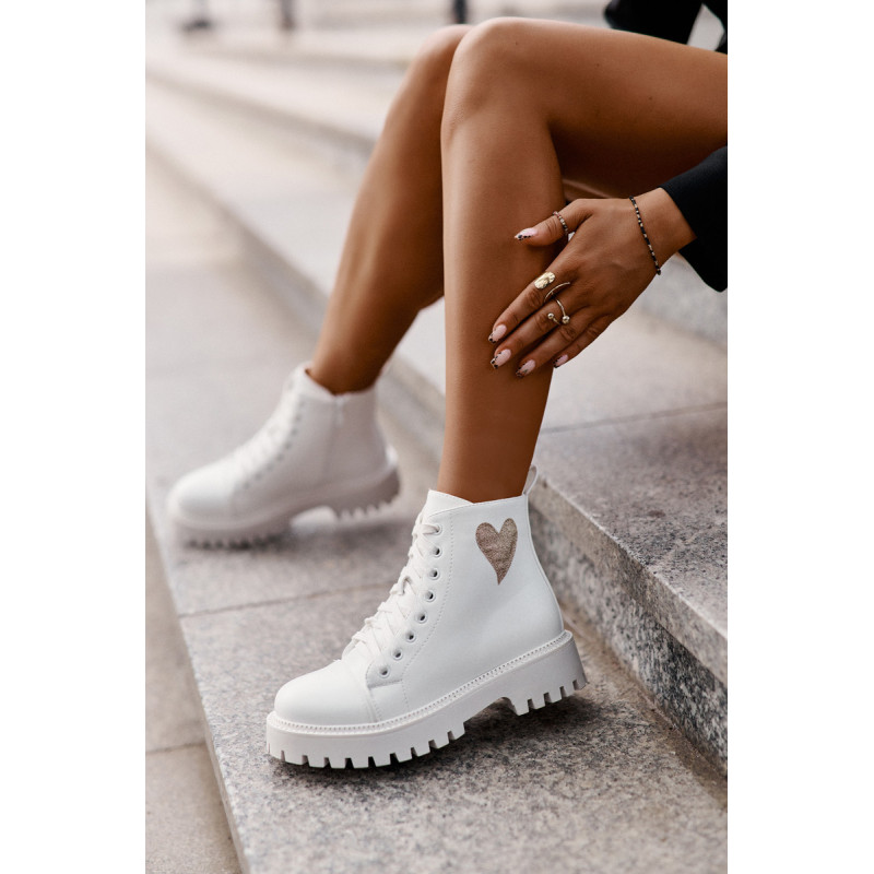 Stilingi auliniai batai žema viršutine dalimi, užsegami užtrauktuku. Blizgančia širdele papuošta viršutinė dalis suteikia jiems žavesio. Suapvalinti kojų pirštai. Cirkonio oksidą imituojančios smeigės išilgai pado pabrėžia stilingą išvaizdą. Puikiai tinka kasdieniam dėvėjimui! Rinkdamiesi dydį, žiūrėkite dydžių lentelę.