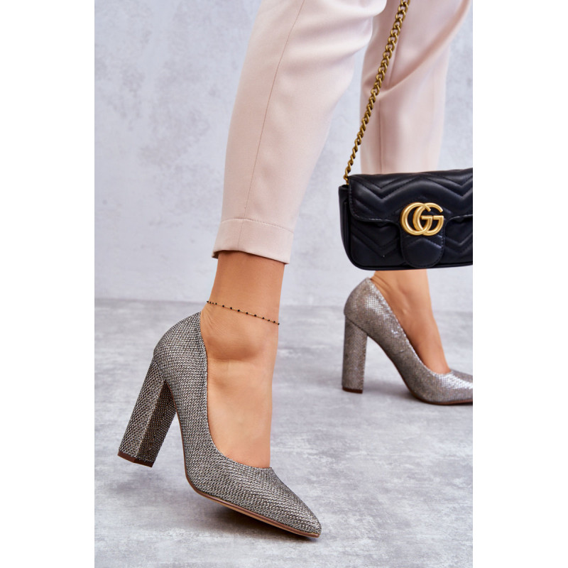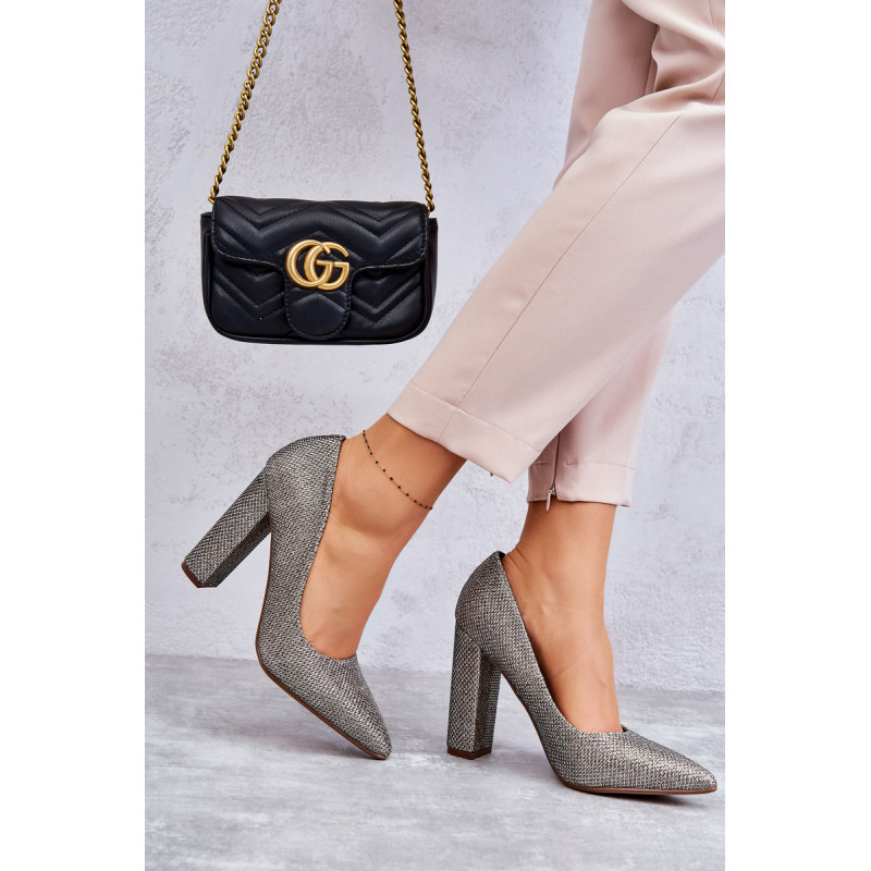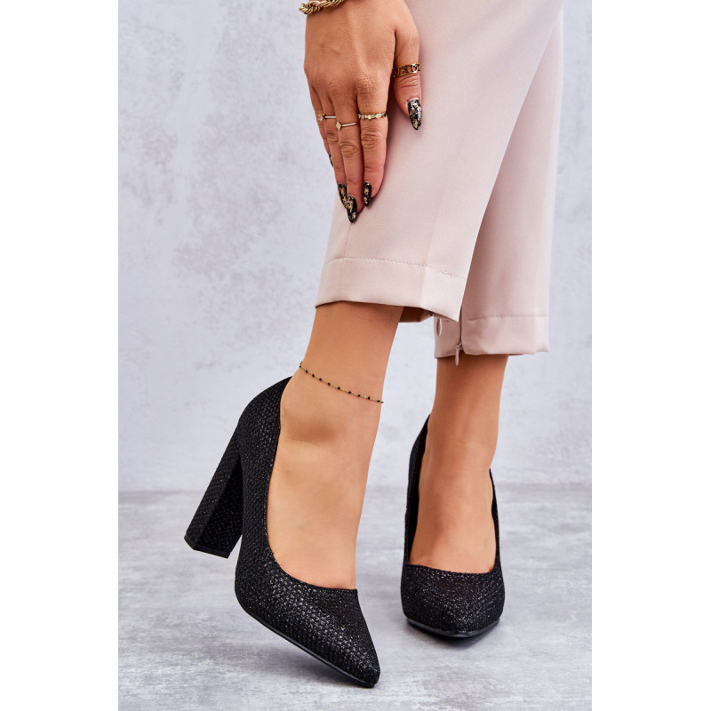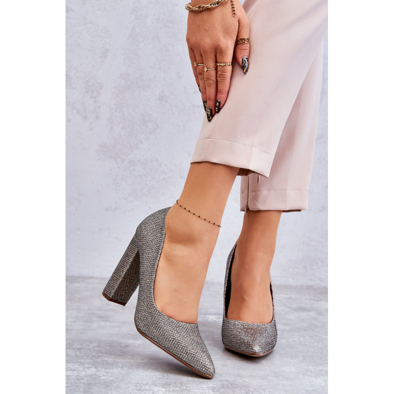 Klasikiniai siurbliai pagaminti iš blizgios medžiagos su įdomiu pynimu. Puikus modelis įvairiems renginiams ar proginiams susitikimams. Smailus pirštas ir stulpelio formos kulnas optiškai plonina kojas. Vidpadis pagamintas iš minkštos eko odos, kuri padidina avalynės naudojimo patogumą. Renkantis dydį, vadovaukitės dydžių lentele.