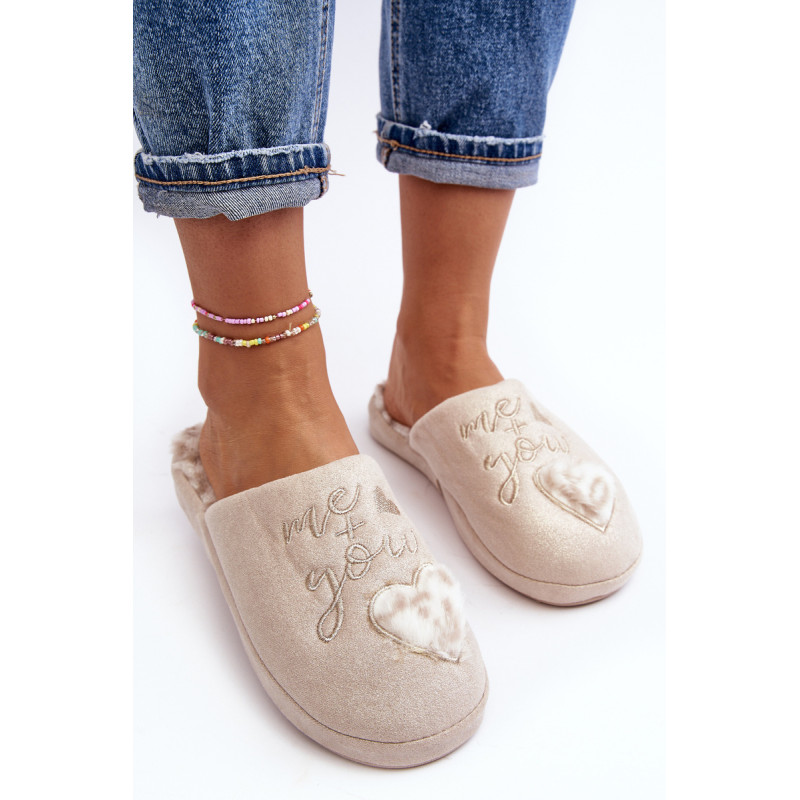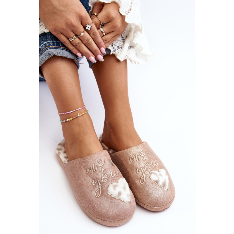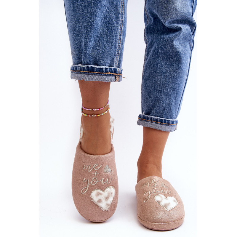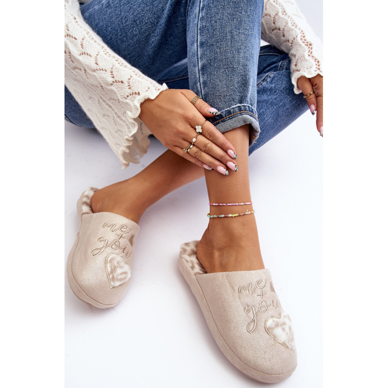 Blizgios moteriškos šlepetės, puoštos užrašu ir širdele. Užsegamas modelis su uždengtu pirštu. Nustatykite ant storo pado. Įdėklas izoliuotas kailiu. Rinkdamiesi dydį, žiūrėkite dydžių lentelę.