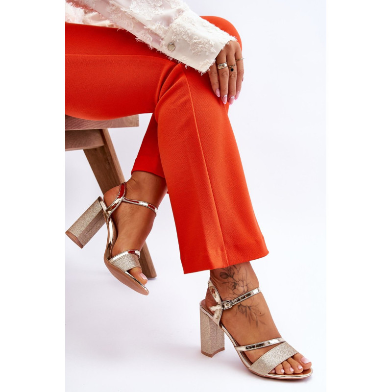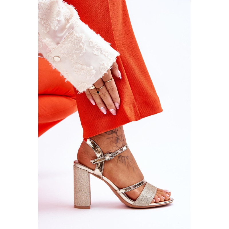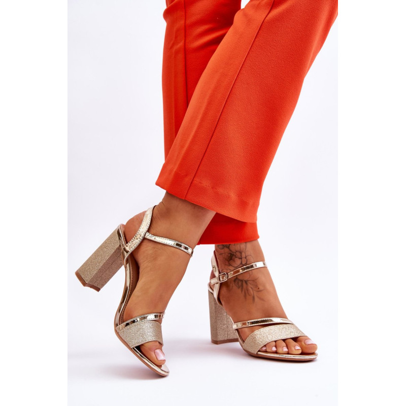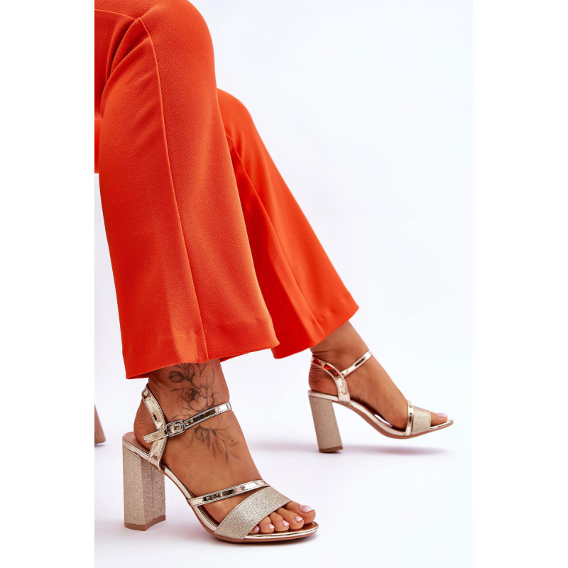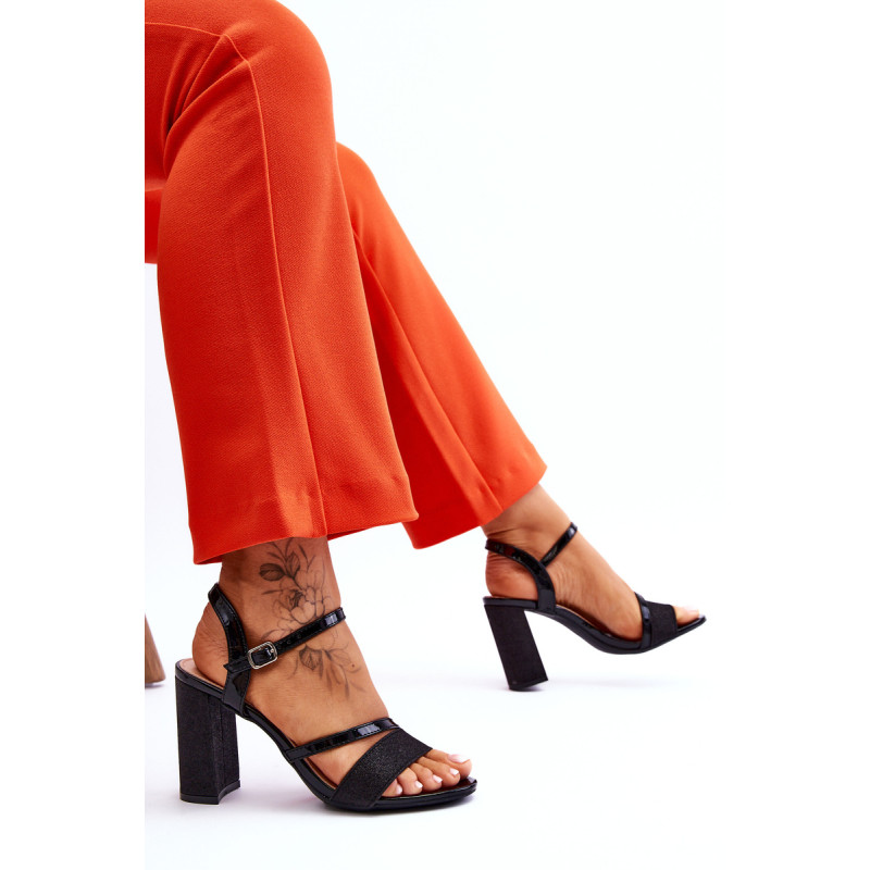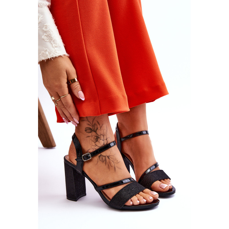 Gražūs stulpelio formos sandalai su kulnais. Šie batai yra pagaminti iš eko odos. Be to, juostelė priekyje ir kulnas blizga, todėl batai atrodo tikrai elegantiškai. Minkštas eko odos vidpadis užtikrins komfortą naudojimo metu. Batai turi reguliuojamą dirželį su sagtimi aplink kulkšnį. Šį modelį naudosite per daugybę šeimos švenčių, vakarėlių su draugais ar verslo susitikimų. Rinkdamiesi dydį, žiūrėkite dydžių lentelę.