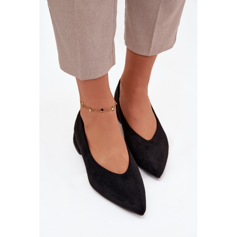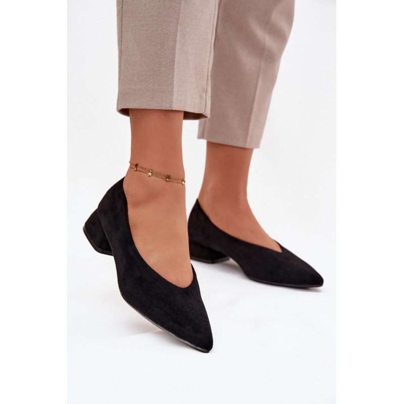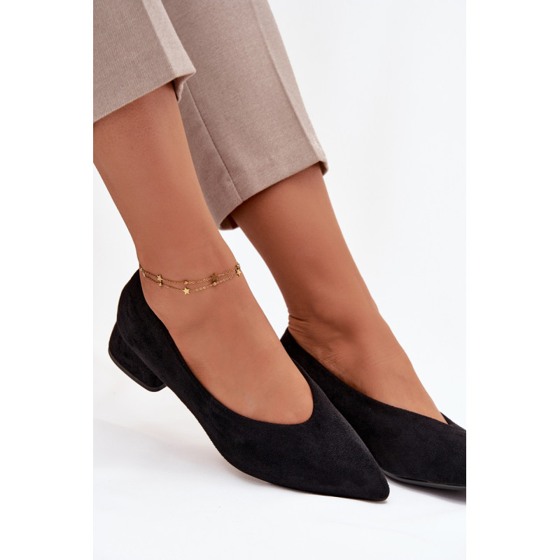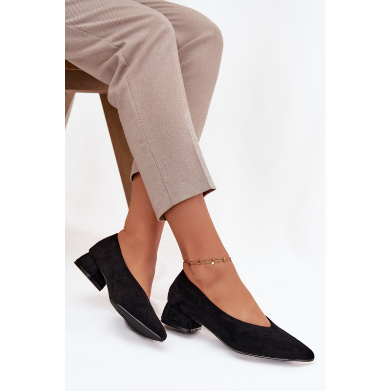 Moteriškos aukštakulnius iš minkšto ekologinio zomšiaus yra ideali pasirinkimas moterims, vertinančioms eleganciją ir komfortą. Modelis su žemu, stabiliu kubo formos kulnu užtikrina patogumą net ir ilgą dieną, o aštrus priekis suteikia batams klasės ir vizualiai lieknina kojas. Šie universalūs aukštakulniai puikiai tinka tiek ypatingoms progoms, tiek darbui ar vakaro išvykoms. Jie puikiai dera su sijonais, suknelėmis ir elegantiškais kelnais, kuriant stilingą ir moterišką įvaizdį. Renkantis dydį, prašome vadovautis dydžių lentele. Renkantis dydį, vadovaukitės dydžių lentele.