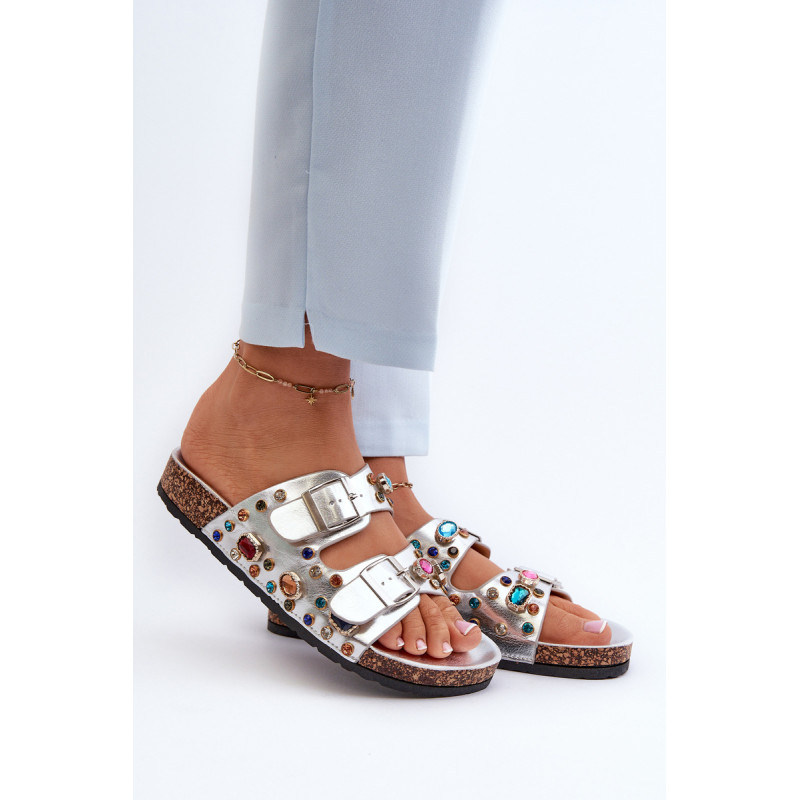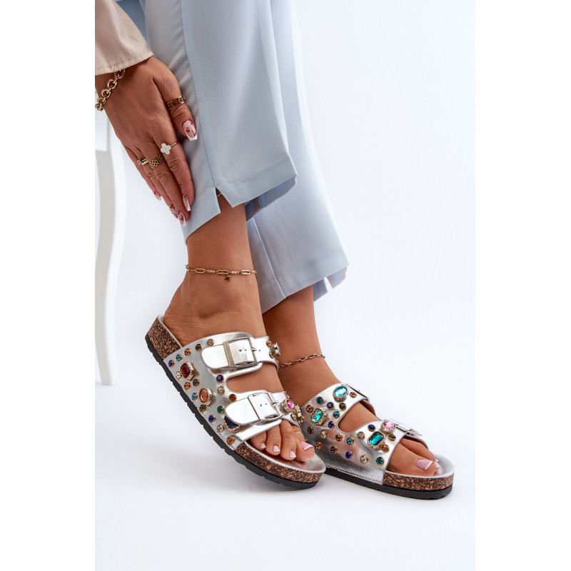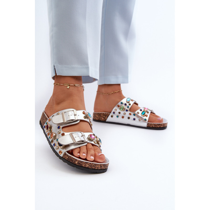 S.Barski prekės ženklo basutės, pagamintos iš ekologiškos odos. Puoštas putojančiais kristalais, suteikiančiais blizgesio kiekvienam drabužiui. Ant kamštinės platformos jie suteikia stabilumą ir madingą išvaizdą. Priekyje du reguliuojami dirželiai su sagtimis garantuoja puikų prigludimą prie pėdos. Ši avalynė ne tik patraukia dėmesį savo unikaliu dizainu, bet ir užtikrina patogumą dėvint. Rinkdamiesi dydį, žiūrėkite dydžių lentelę.