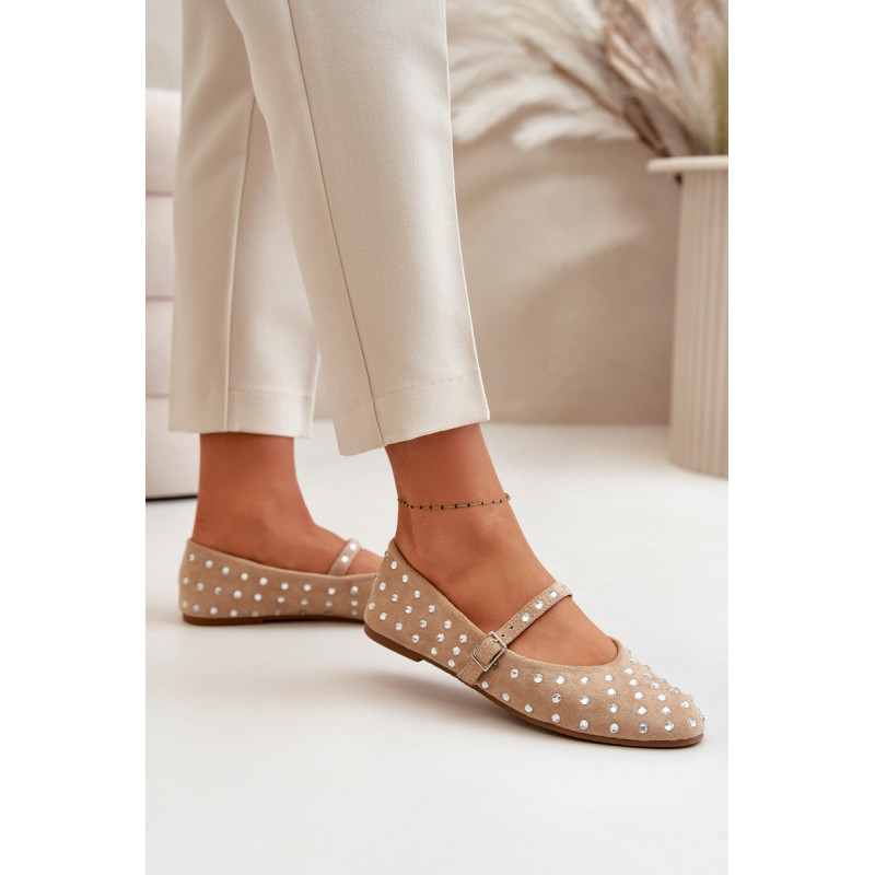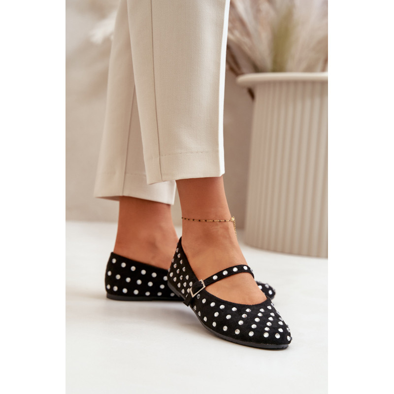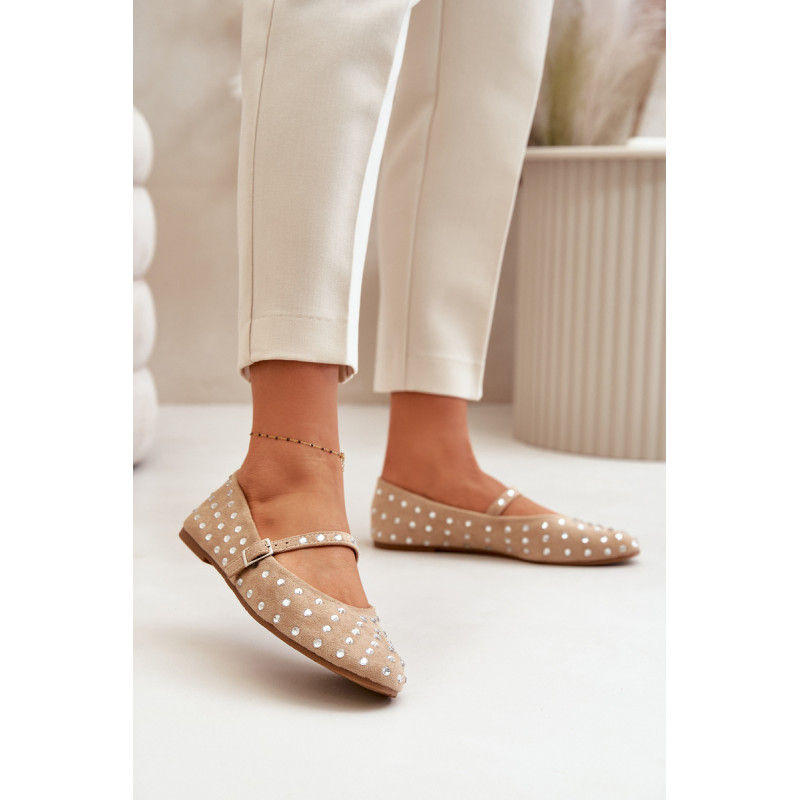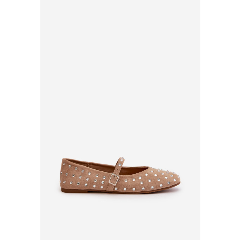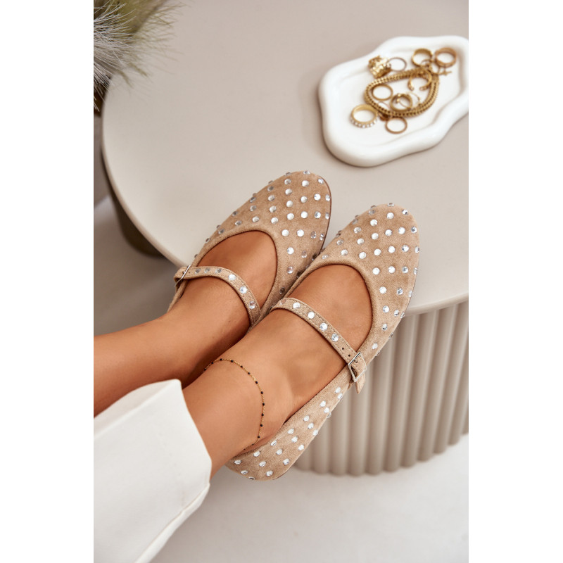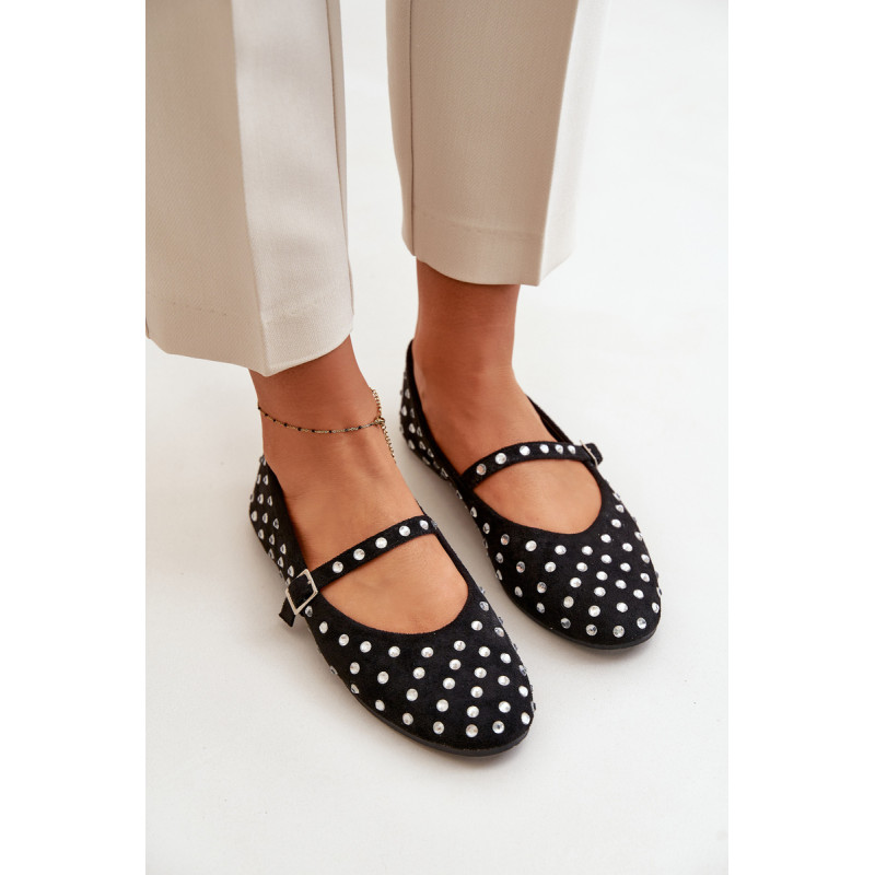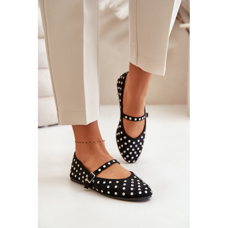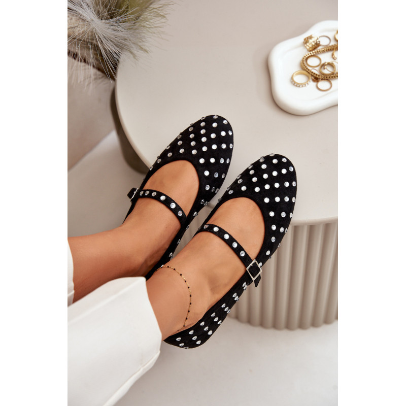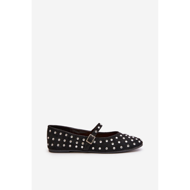 Iš ekologiškos zomšos baleto buteliai. Dekoruota daugybe smeigių, panašių į cirkonį. Užsegamas reguliuojamu dirželiu, kuris suteikia stabilumo ir patogumo dėvint. Šie baleto butai yra puikus pasirinkimas bet kokiai progai. Jie tikrai pritrauks dėmesį! Rinkdamiesi dydį, žiūrėkite dydžių lentelę.