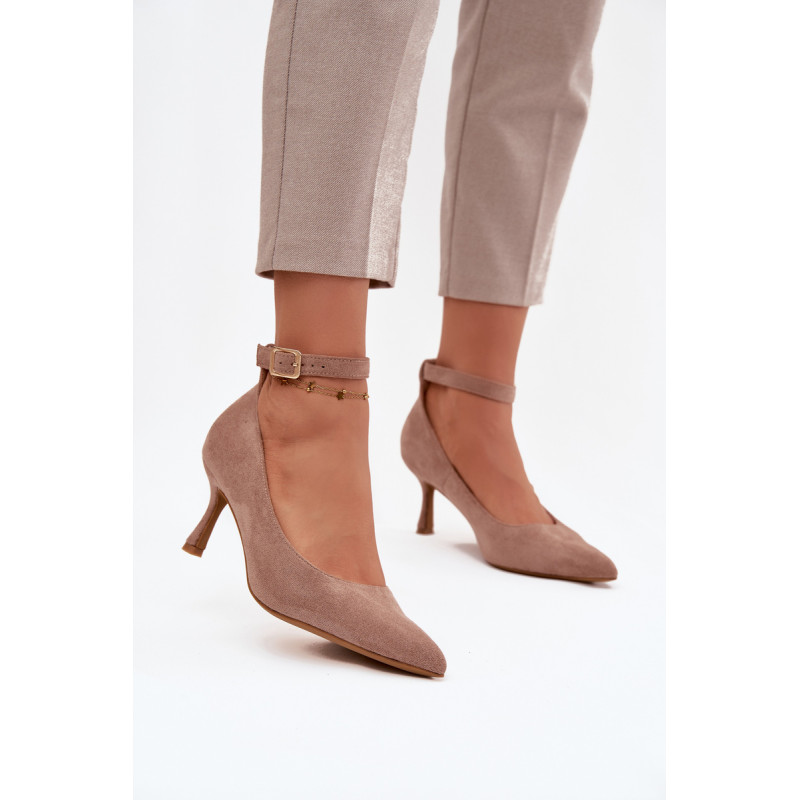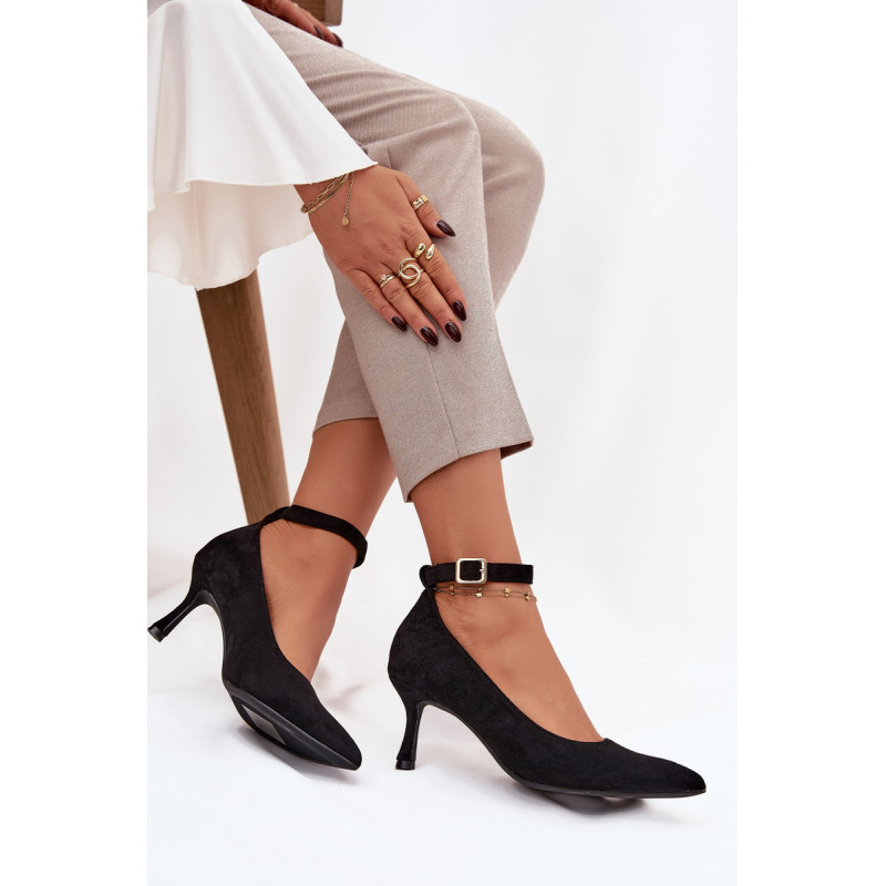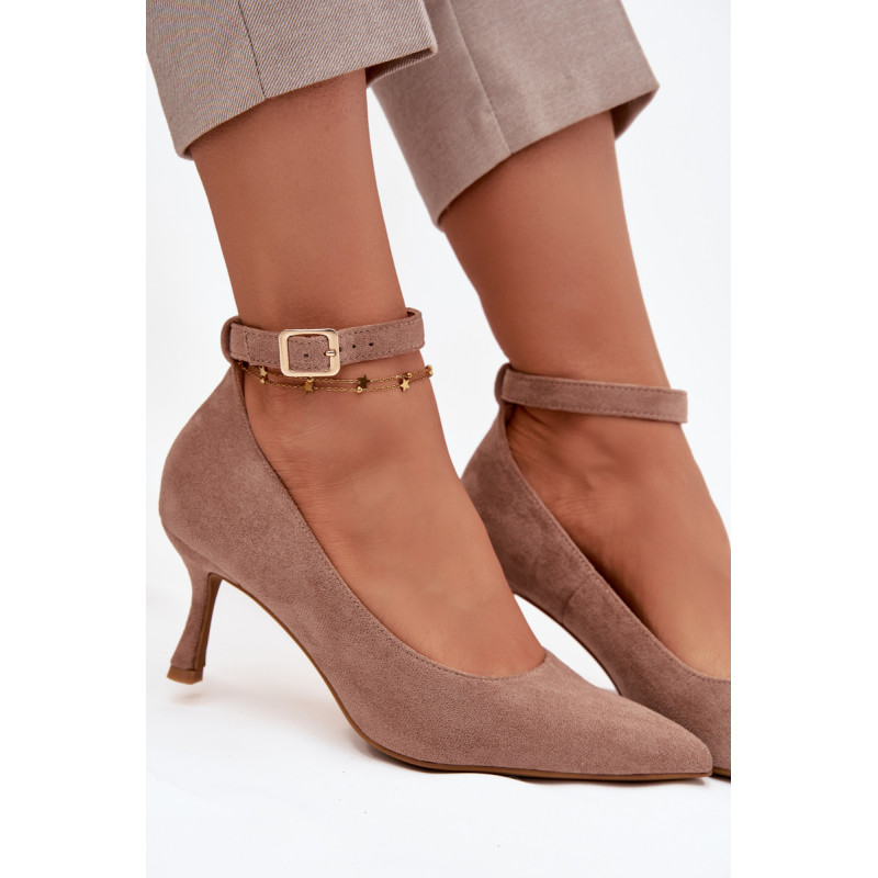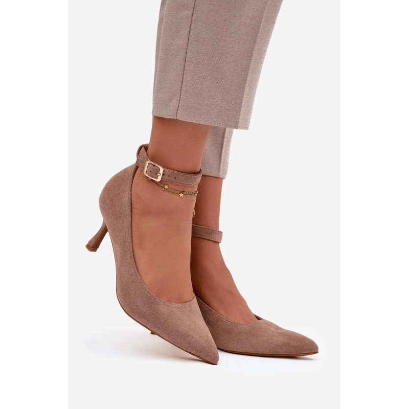 Auliniai batai – moteriški auliniai batai iš minkštos ekoskornos. Modelis žavi klasikiniu siluetu ir siauru nosimi, kuris optiškai lieknina kojas ir suteikia siluetui lengvumo. Batai užsegami aplink čiurną reguliuojamu dirželiu su sagtimi, kuris gražiai pabrėžia pėdą, tuo pačiu užtikrindamas stabilumą ir komfortą dėvint. Šie auliniai batai puikiai tiks tiek vakarinėms išvaizdoms, tiek kasdieniams elegantiškiems deriniams.