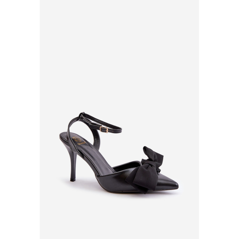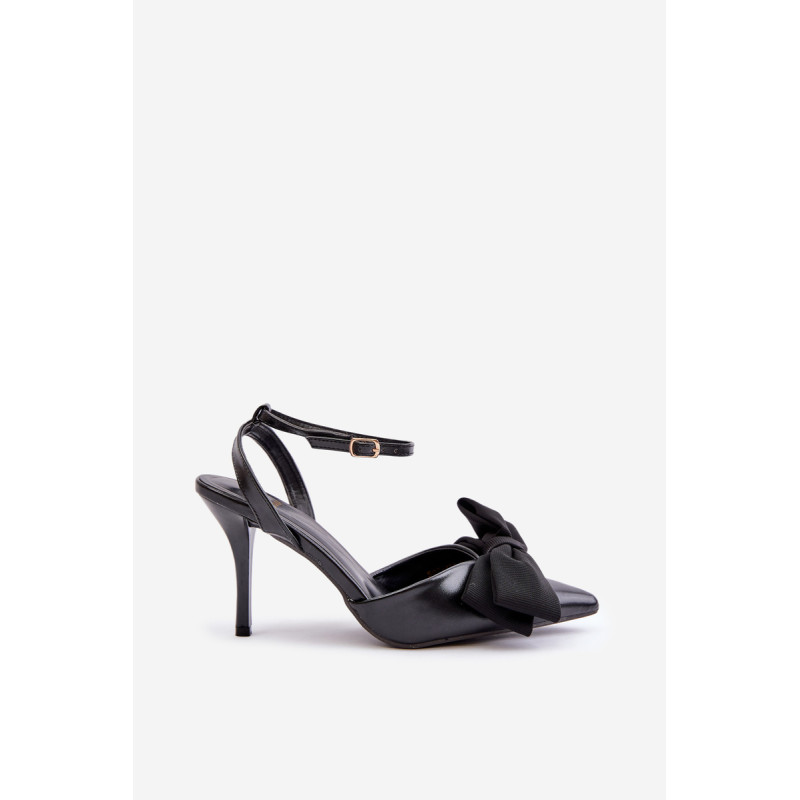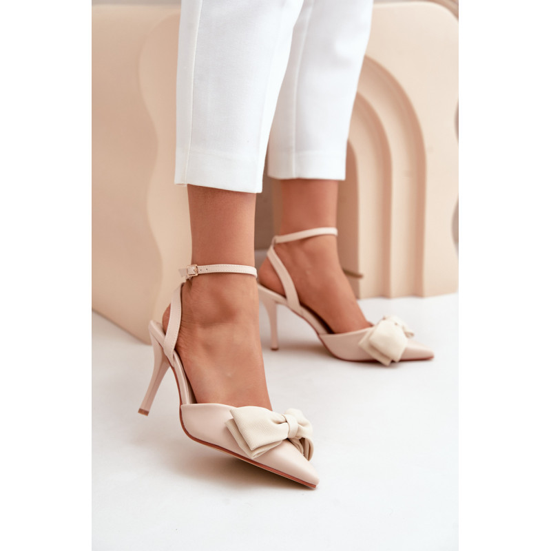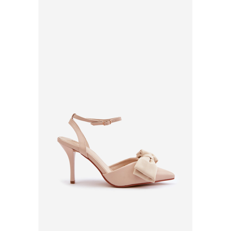 Moteriški aukštakulniai bateliai, pagaminti iš ekologiškos odos. Modelis išsiskiria smailiais pirštais, kurie prideda elegancijos, ir reguliuojama juostele su sagtimi, kad būtų užtikrintas puikus prigludimas. Batų priekį puošia didelis, įspūdingas mazgas, kuris pabrėžia unikalias aukštakulnių savybes. Idealiai tinka vakariniams drabužiams! Renkantis dydį, vadovaukitės dydžių lentele.