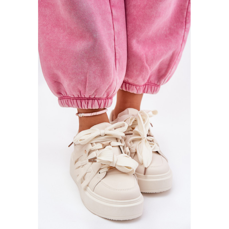 Moteriški sneakers batai pagaminti iš ekologiškos odos. Jie pasižymi tvirtu šniūromis, leidžiančiomis puikiai pritaikyti batus prie pėdos pločio. Šie batai yra ant platformos. Putų padas užtikrina komfortą ir patogumą dėvint. Šis modernus modelis puikiai papildys daugelį aprangų, suteikdamas joms sportišką charakterį! Renkantis dydį, vadovaukitės dydžių lentele.