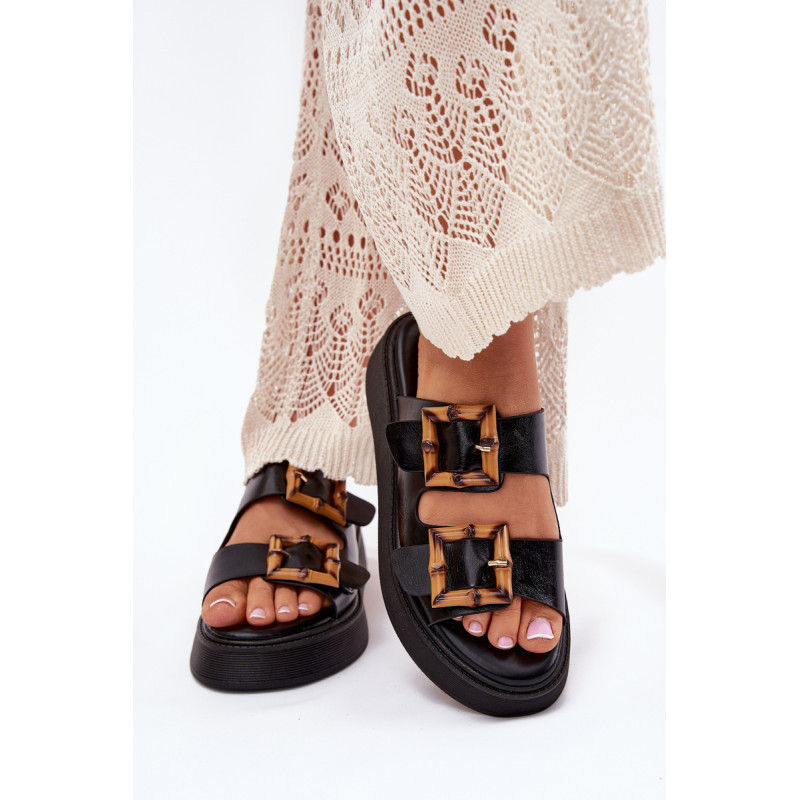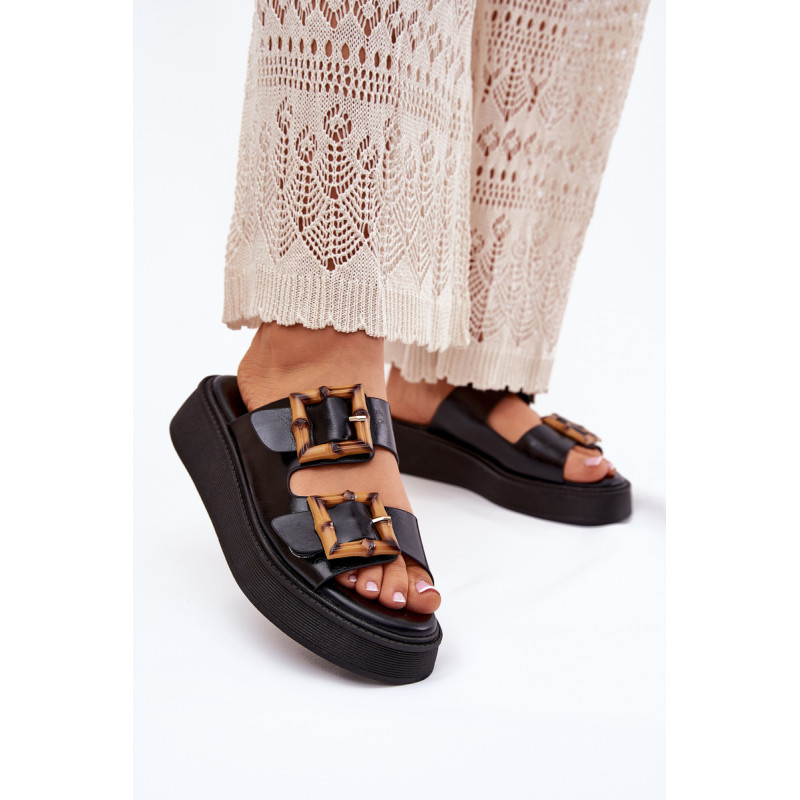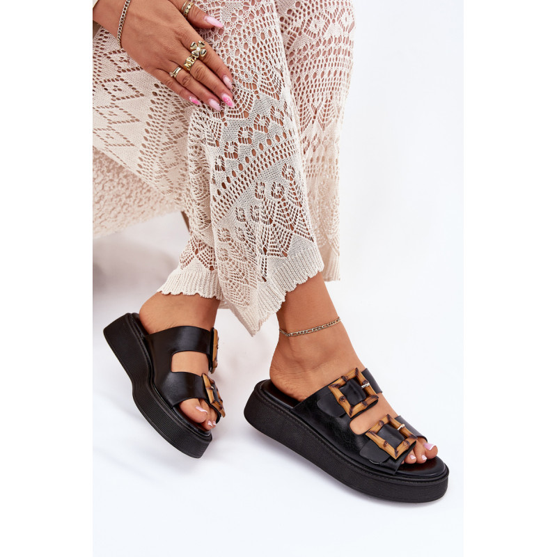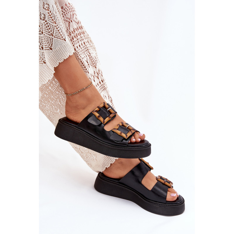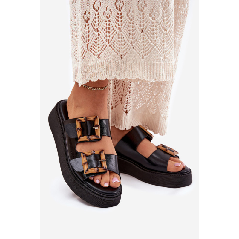 Moteriški sandalai iš ekologiškos odos ant platformos yra stilingas ir patogus pasirinkimas šiltoms dienoms. Dvi dekoratyvinės sagties suteikia jiems unikalų charakterį, derindamos eleganciją su moderniu stiliumi. Minkšta padas užtikrina komfortą visą dieną. Idealiai tinka kasdieniams įvaizdžiams, jie siūlo funkcionalumo ir madingo išvaizdos derinį. Renkantis dydį, vadovaukitės dydžių lentele.