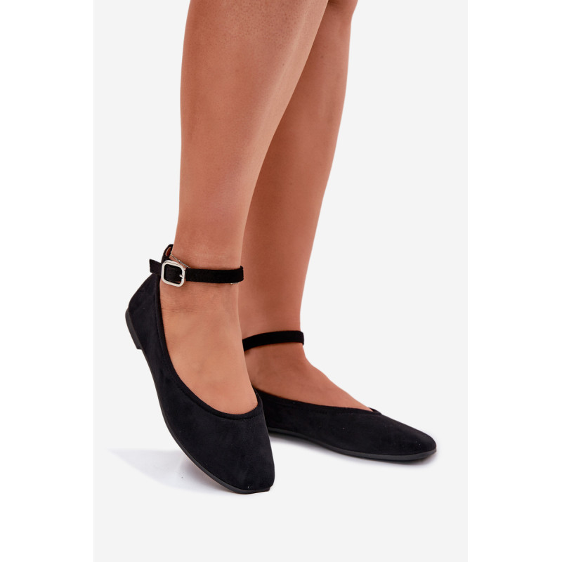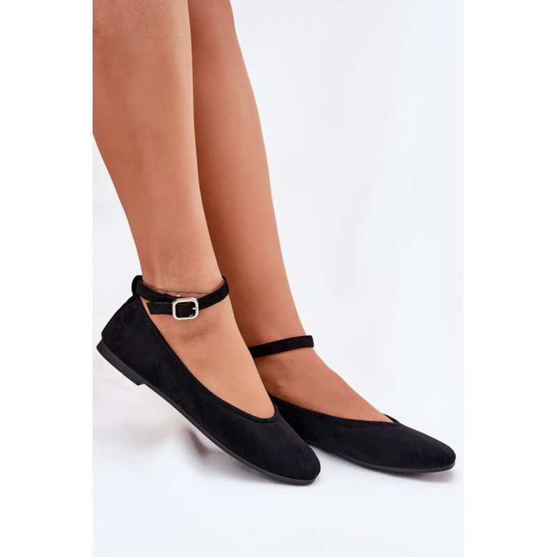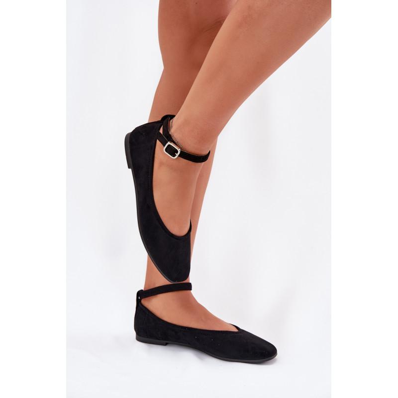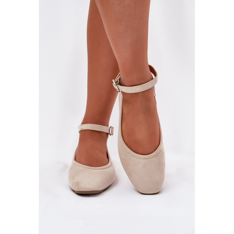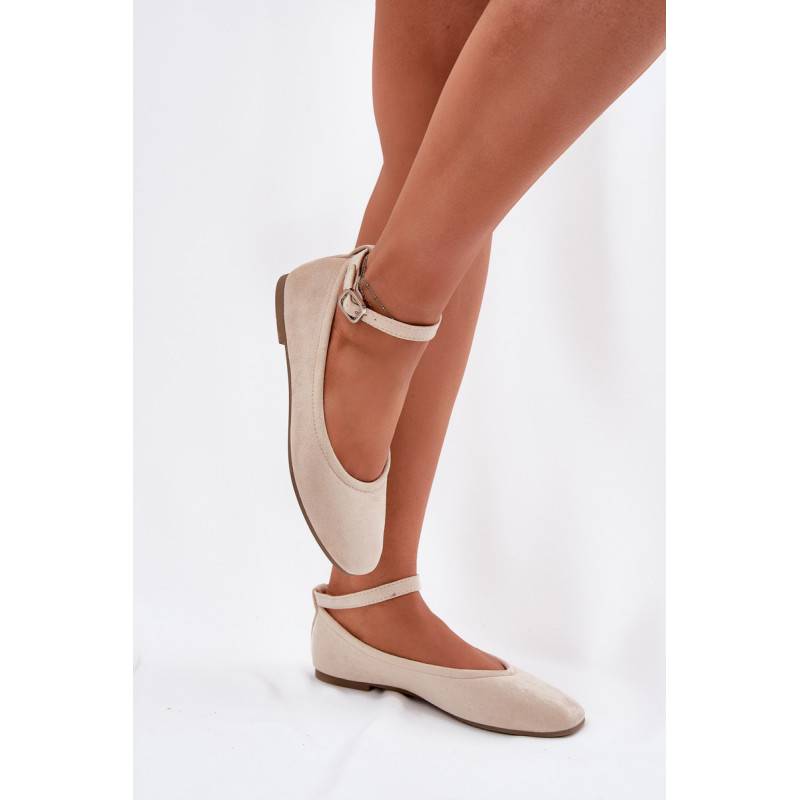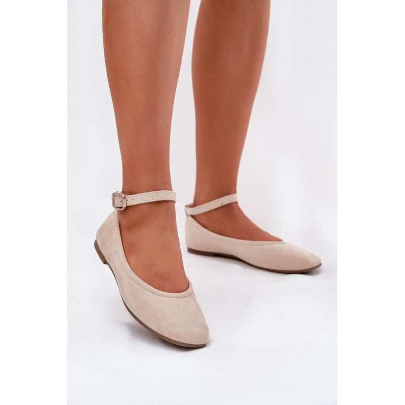 Balerinos, pagamintos iš švelnaus eko-zamšo, yra elegantiška ir patogi pasirinkimo galimybė daugeliui stilių. Pasodinti ant plokščio kulno, jie suteikia komfortą visą dieną, o apvalūs pirštai suteikia jiems subtilaus žavesio. Minkšta vidpadis didina nešiojimo komfortą, o dirželis su sagtimi, užsegamas aplink kulkšnį, leidžia idealiai pritaikyti. Be to, dirželį galima lengvai nuimti, pritaikant avalynę asmeniniams poreikiams. Renkantis dydį, vadovaukitės dydžių lentele.