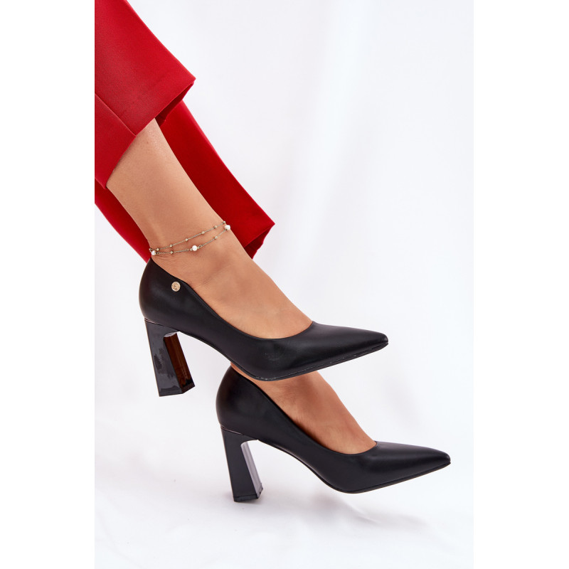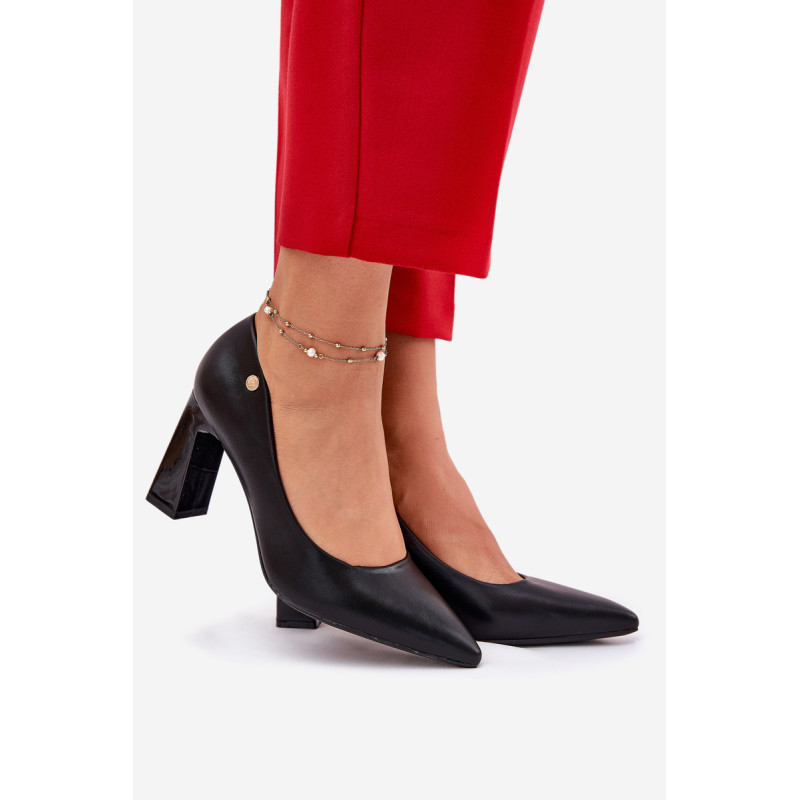 Elegantiškos aukštakulnės bateliai su bloko kulnu. Pagaminti iš eko odos. Jie turi minkštą natūralios odos vidpadį, kuris užtikrina komfortą net ilgai dėvint. Smailūs pirštai vizualiai pailgina kojas. Šis stilingas modelis tikrai papildys daugelį įvaizdžių! Renkantis dydį, vadovaukitės dydžių lentele.